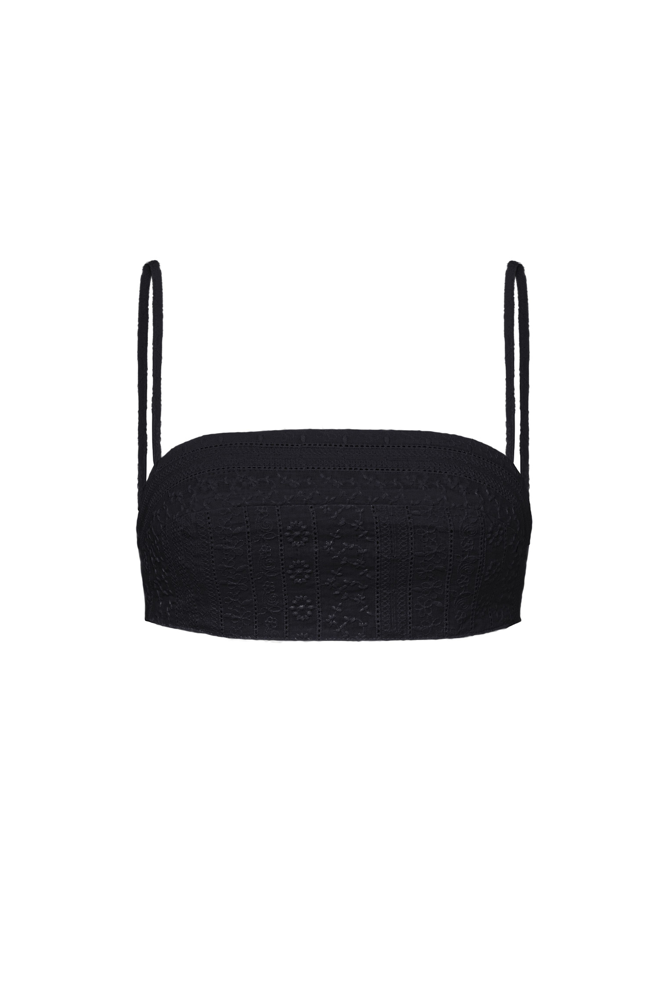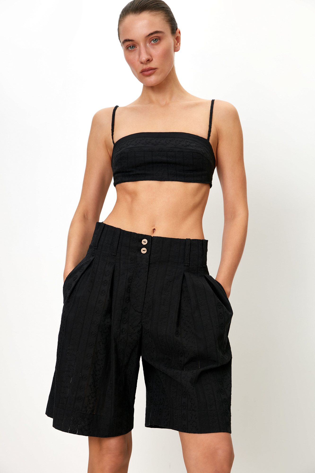 Укороченный топ из 100% хлопка на тонких бретелях. Дополнить образ можно рубашкой и шортами из такой же ткани.