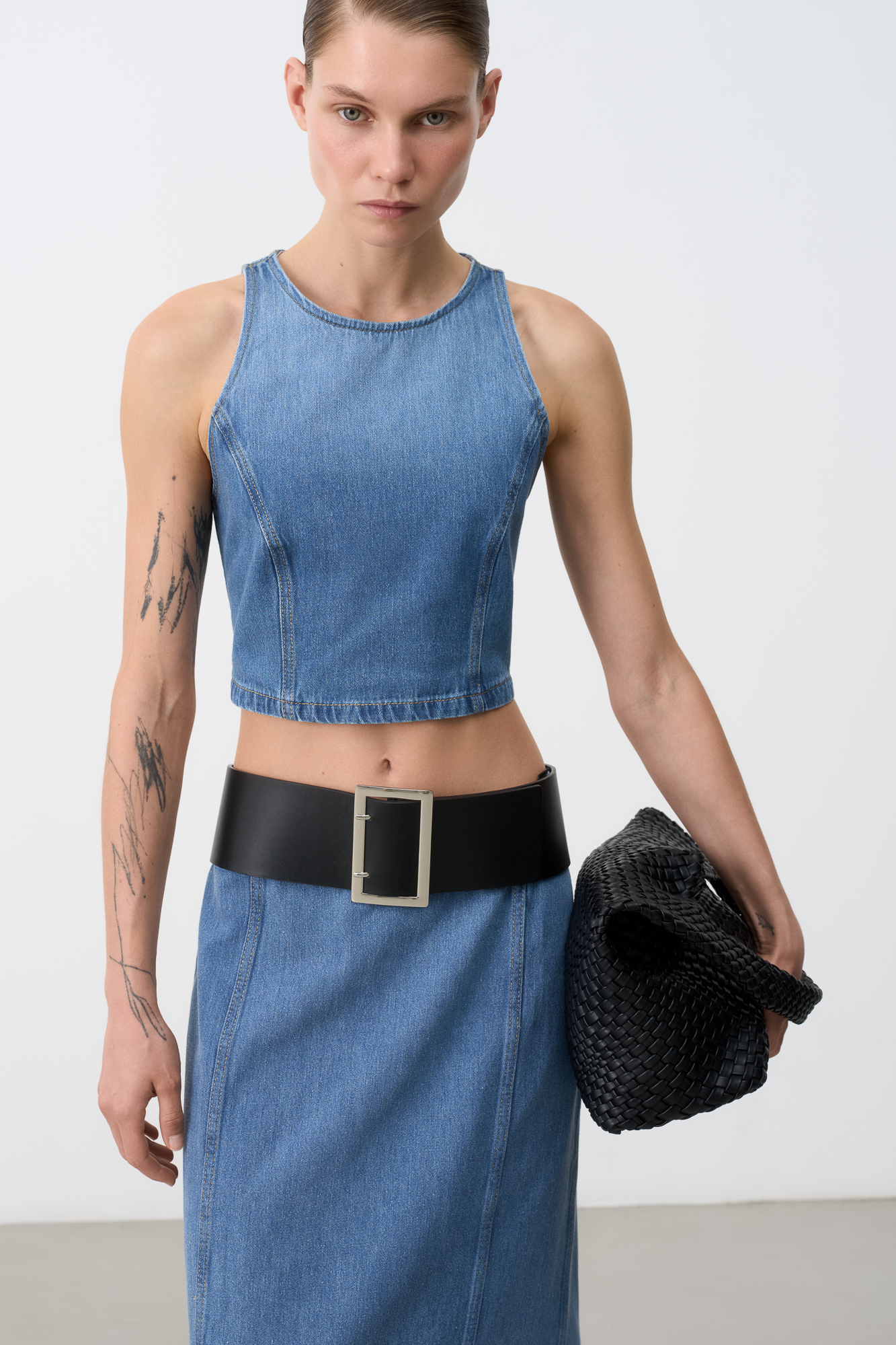 Укороченный джинсовый топ