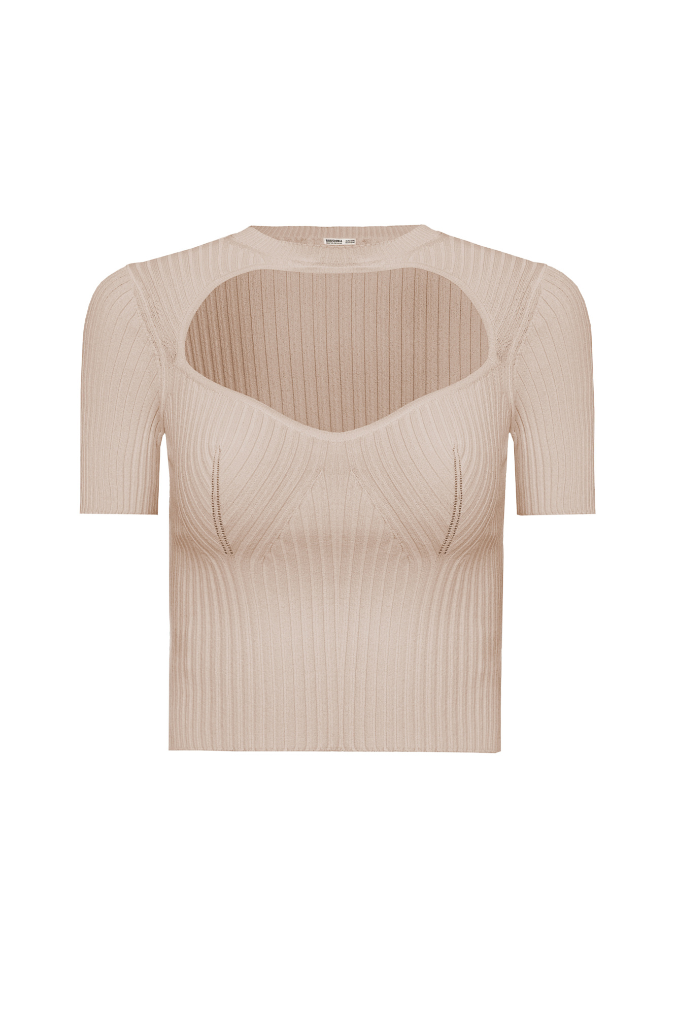 Трикотажный топ в рубчик с коротким рукавом и вырезом на груди.