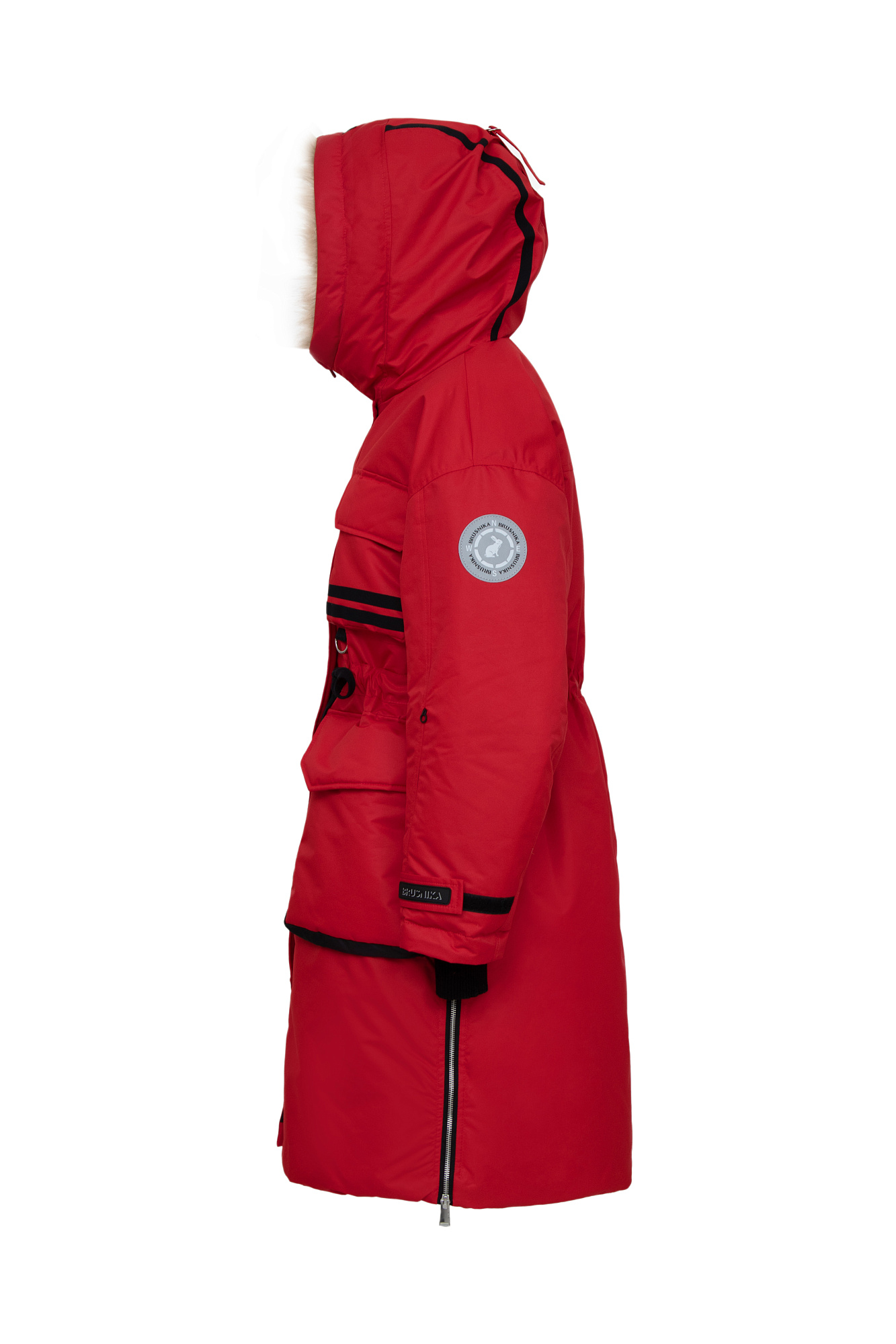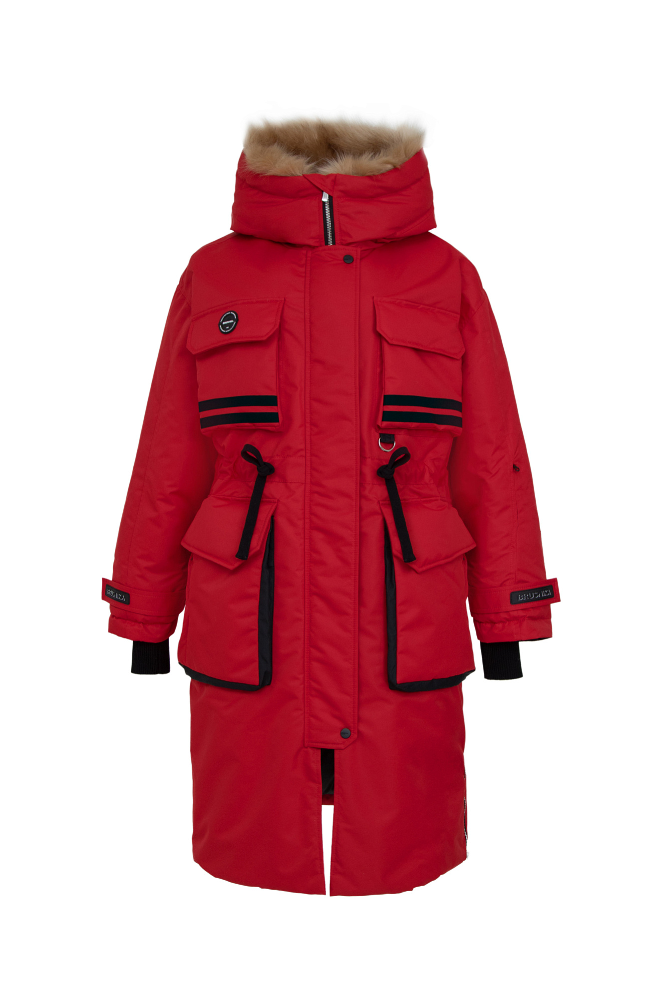 Удлиненная куртка на молнии с капюшоном из экомеха, наполнитель пух-перо, внутренняя кулиска на талии, накладные карманы спереди, фиксаторами на манжетах. Хороший показатель водонепроницаемости, выдержит слабый дождь и мокрый снег.