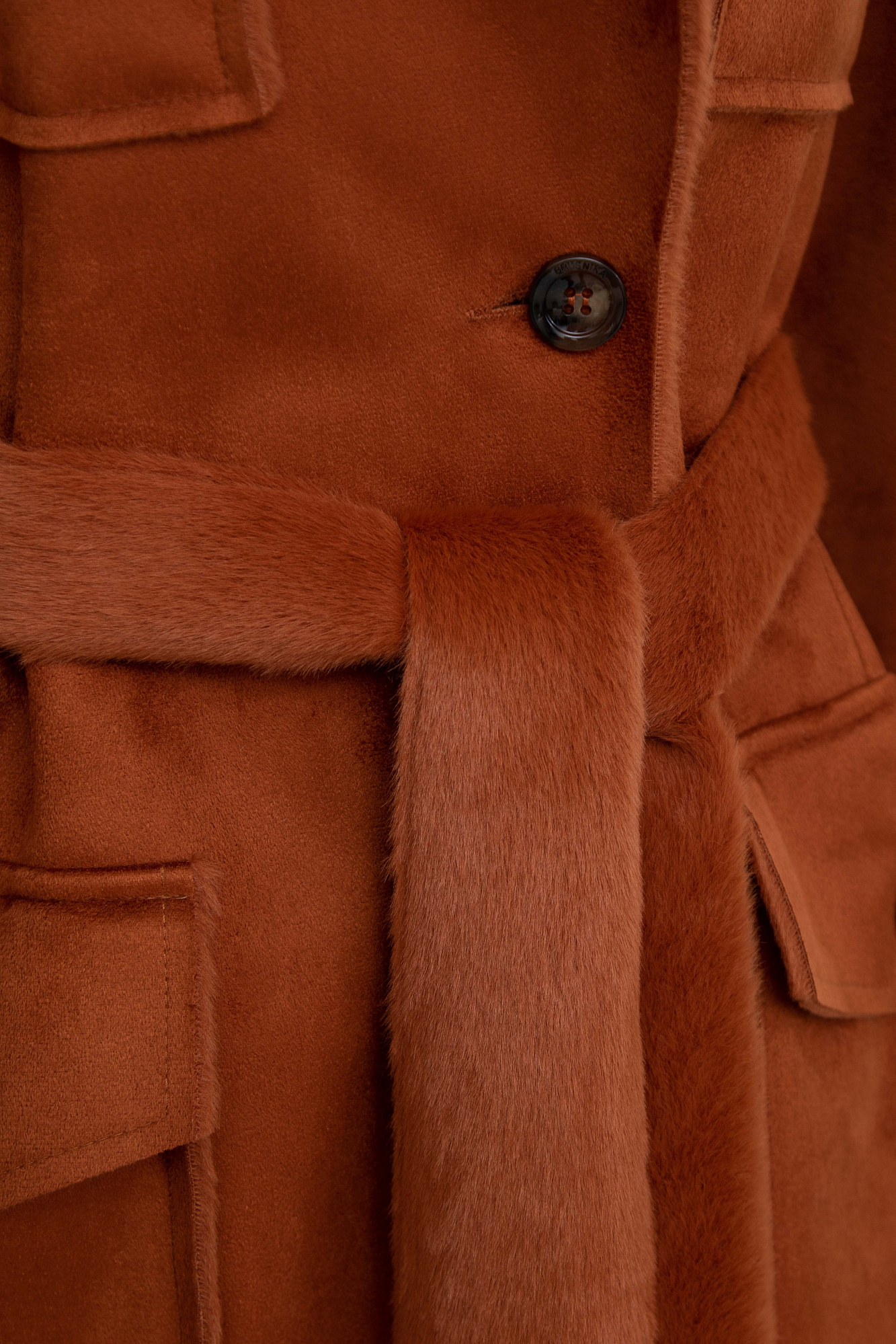 Дубленка из экомеха с поясом