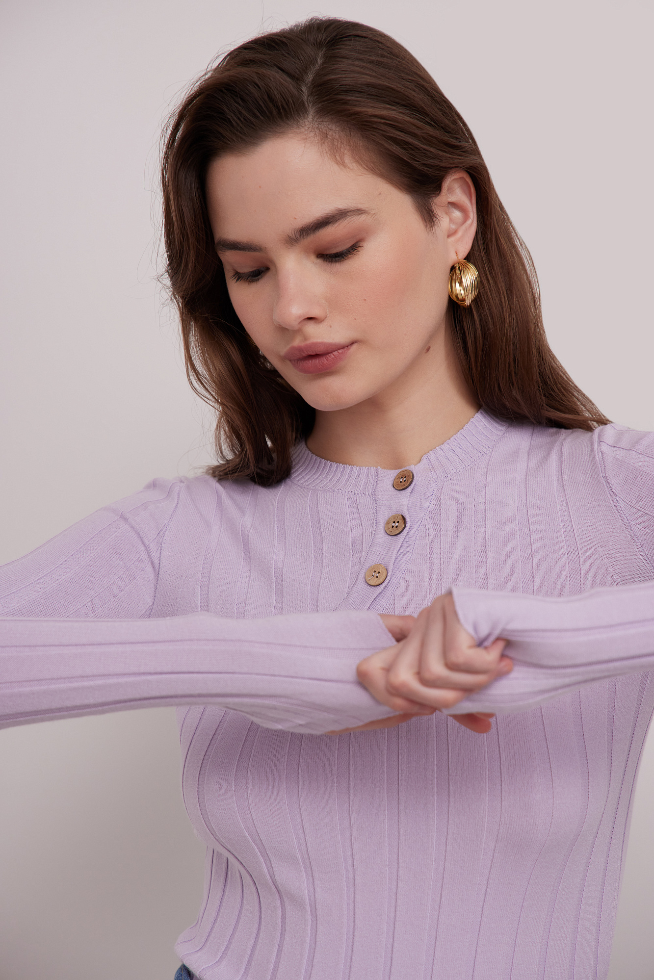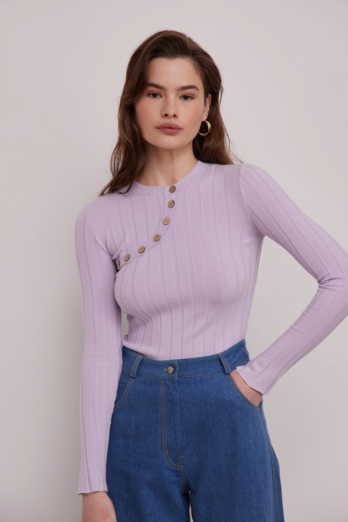 Водолазка из вискозы. Модель с асимметричной застежкой на пуговицы и длинными рукавами.