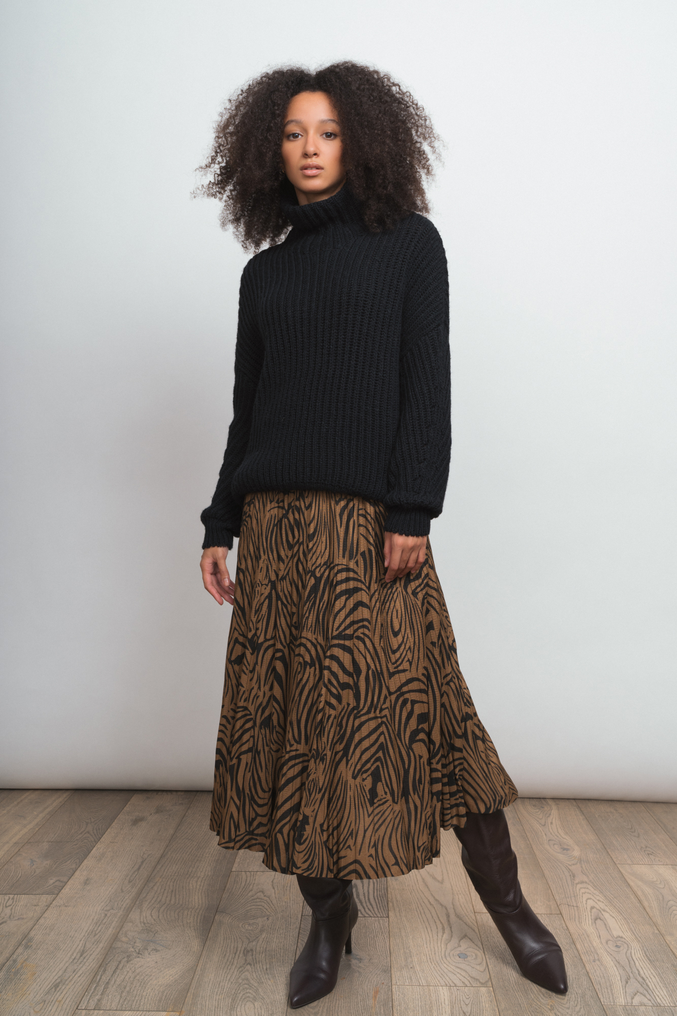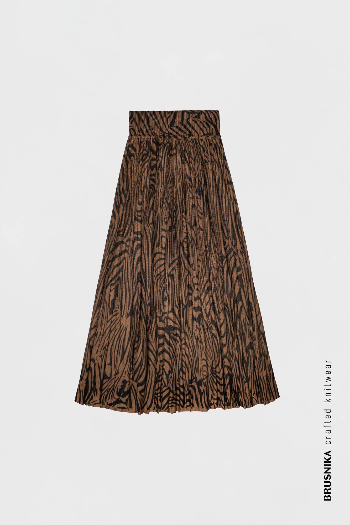 Плиссированная юбка из 100% вискозы свободного кроя, длина миди, принт зебра, широкий пояс на талии.