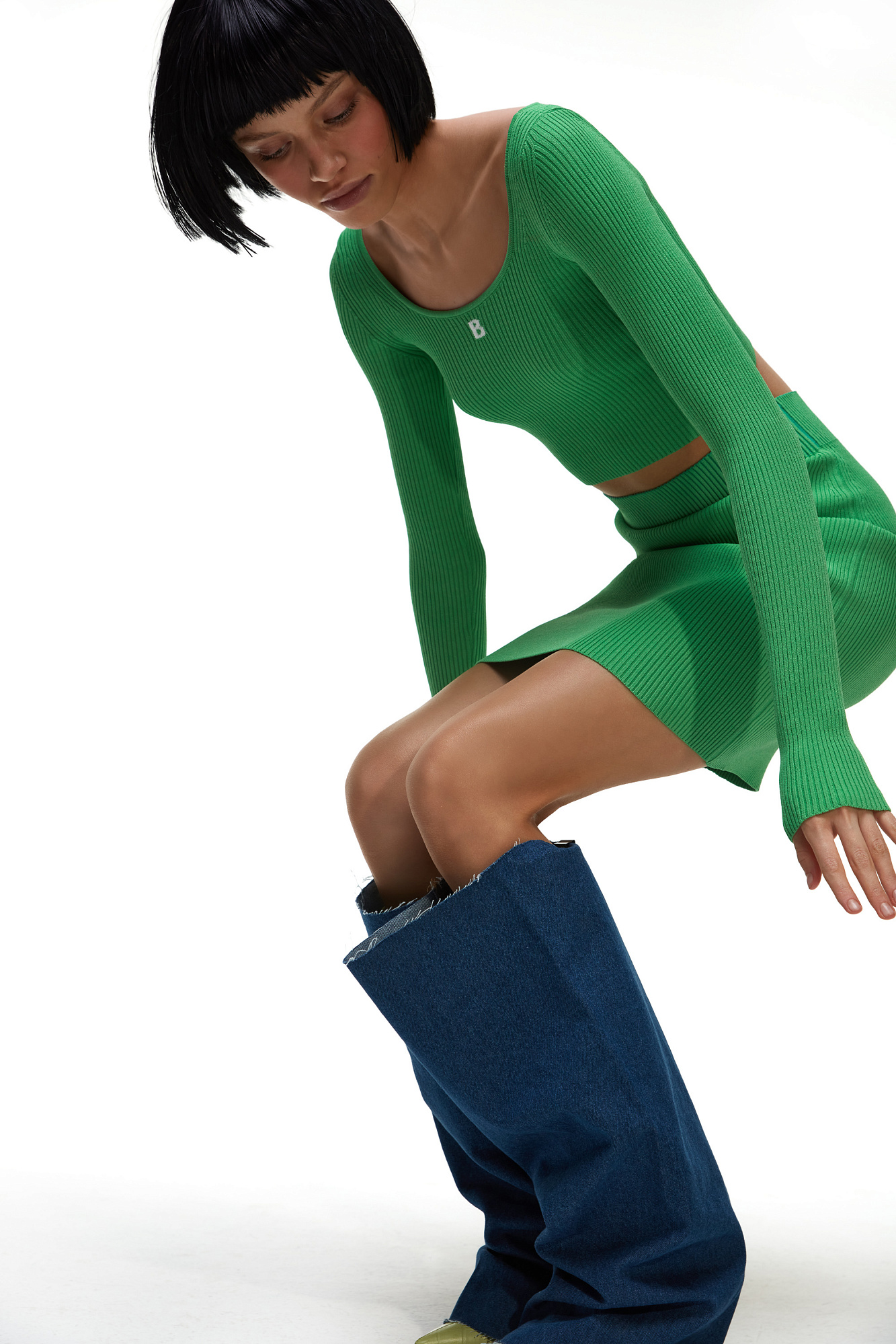 Трикотажная юбка длины мини из вискозы. Модель приталенного силуэта с эластичным поясом на резинке.