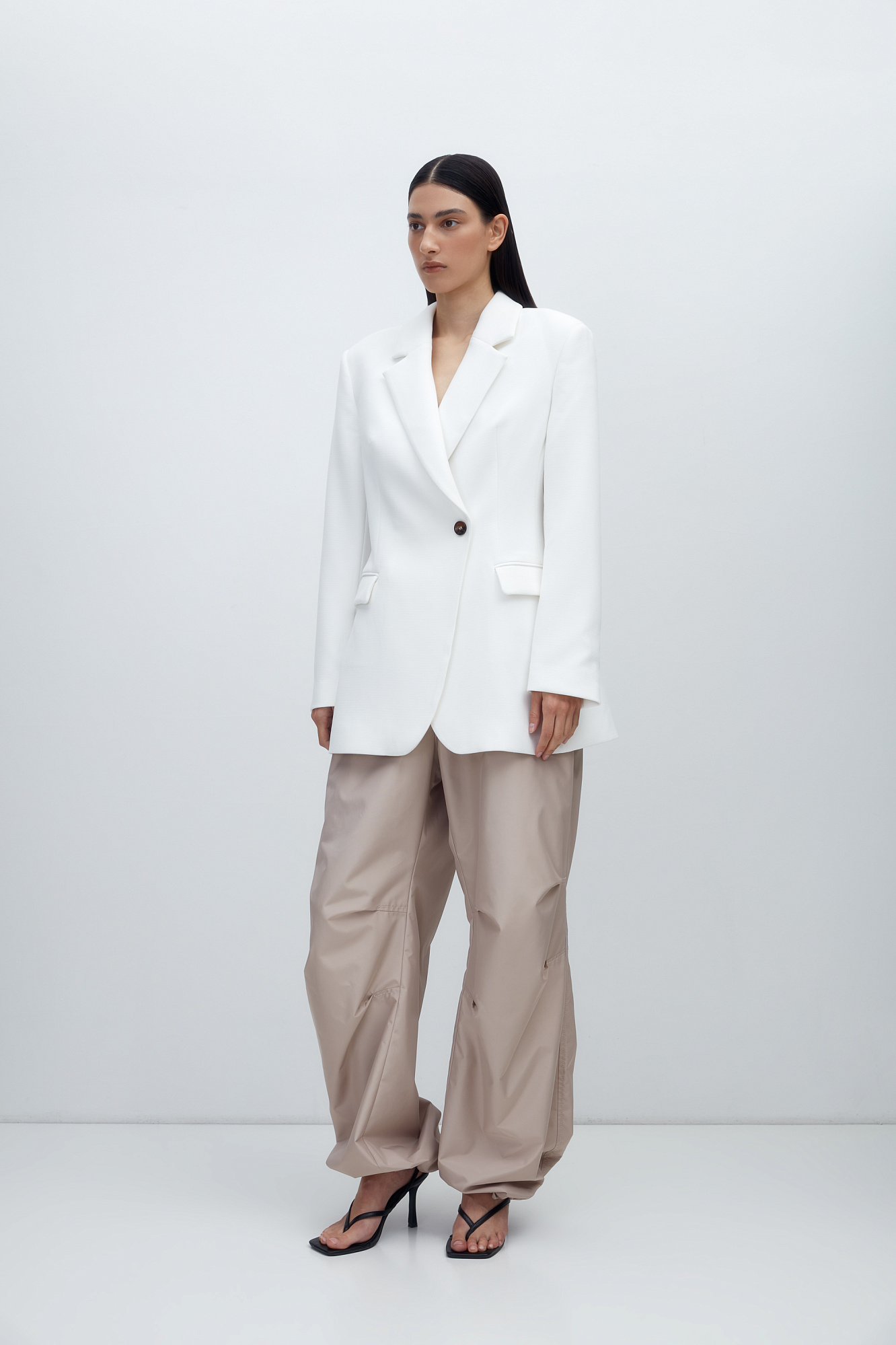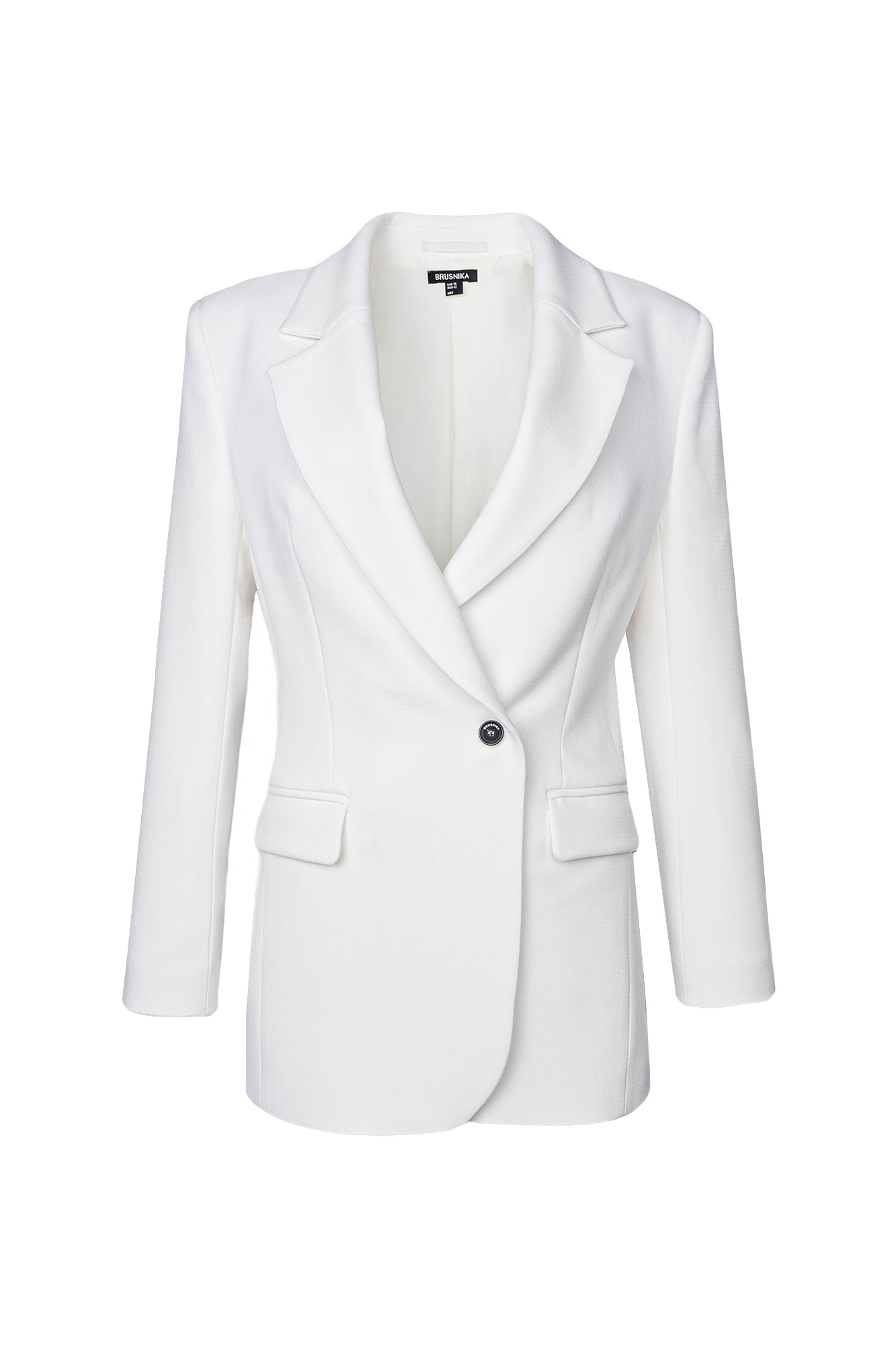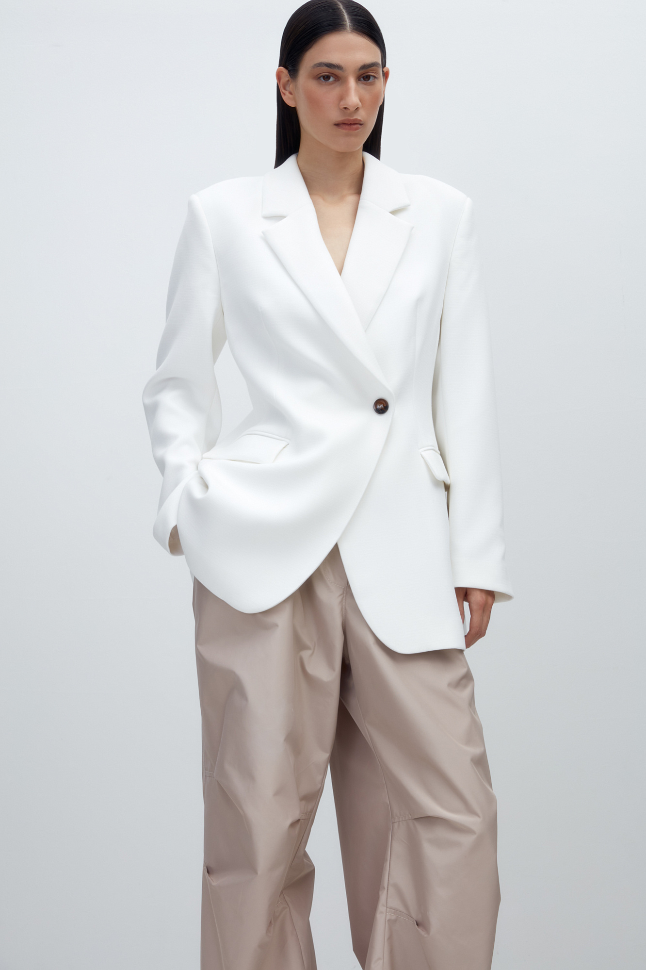 Однобортный жакет из поливискозы, приталенного силуэта, с карманами и застежкой на пуговице.
