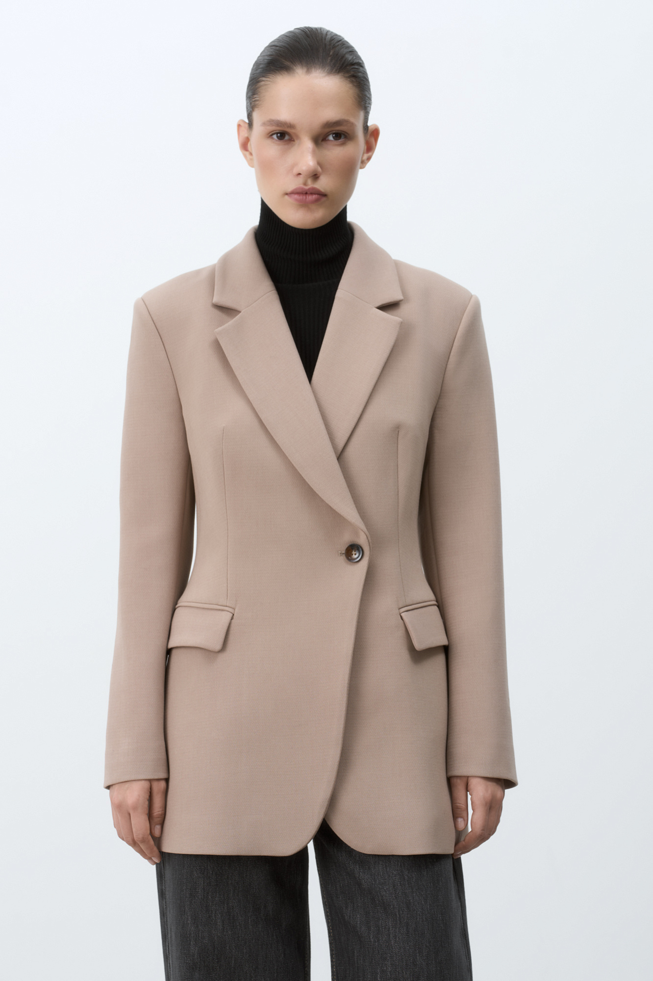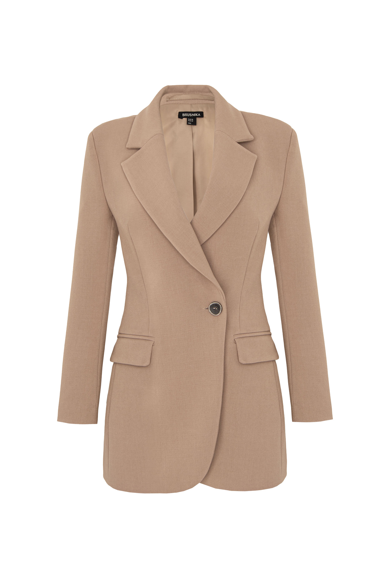 Однобортный жакет из поливискозы, приталенного силуэта, с карманами и застежкой на пуговице.