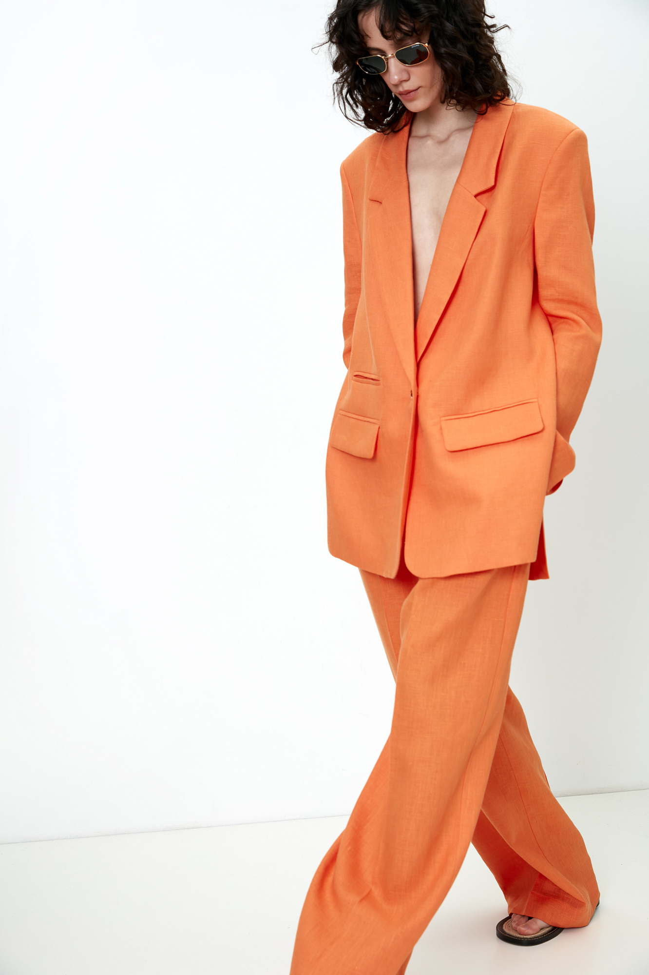 Жакет с разрезами по бокам из 100% льна