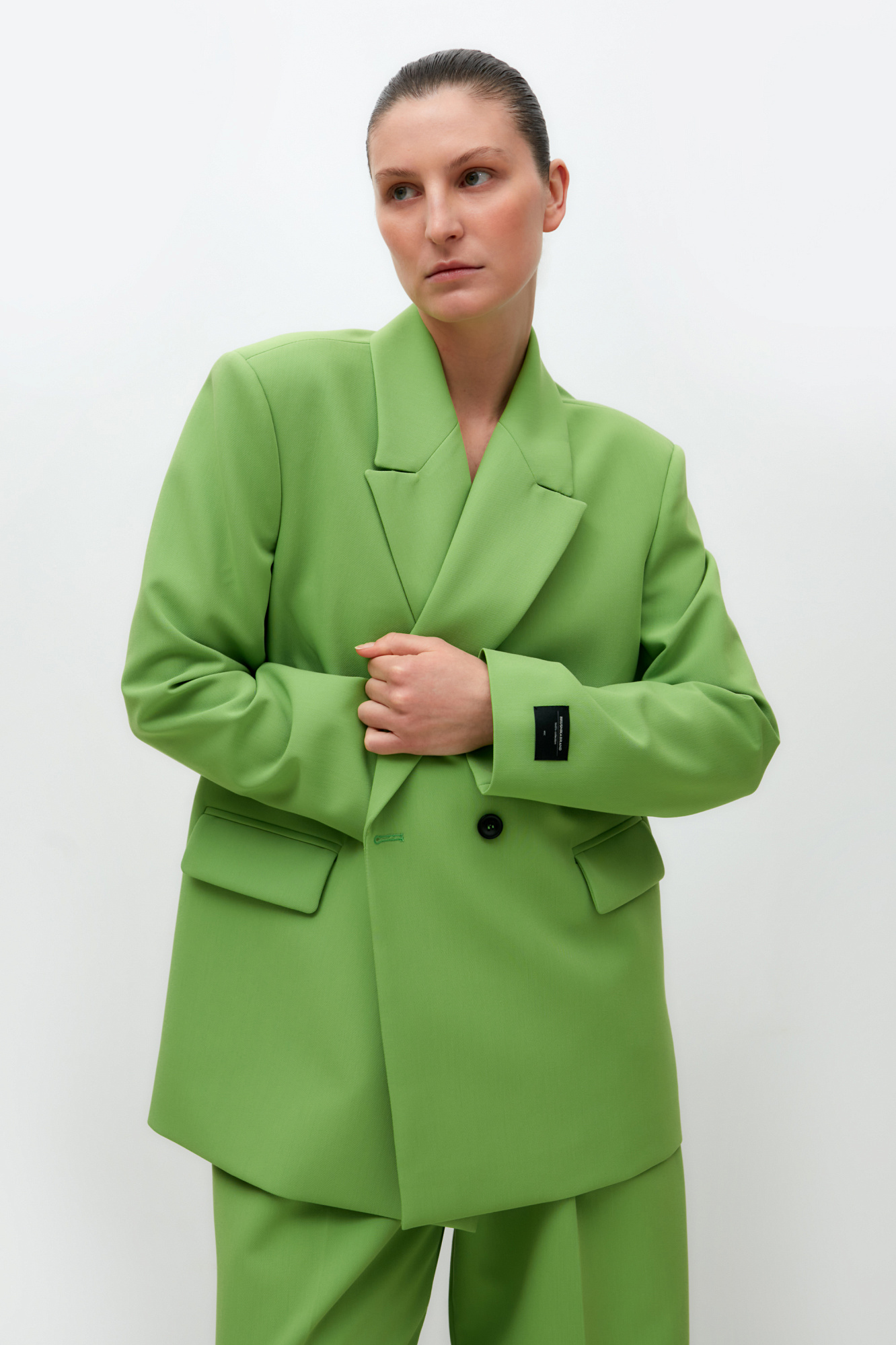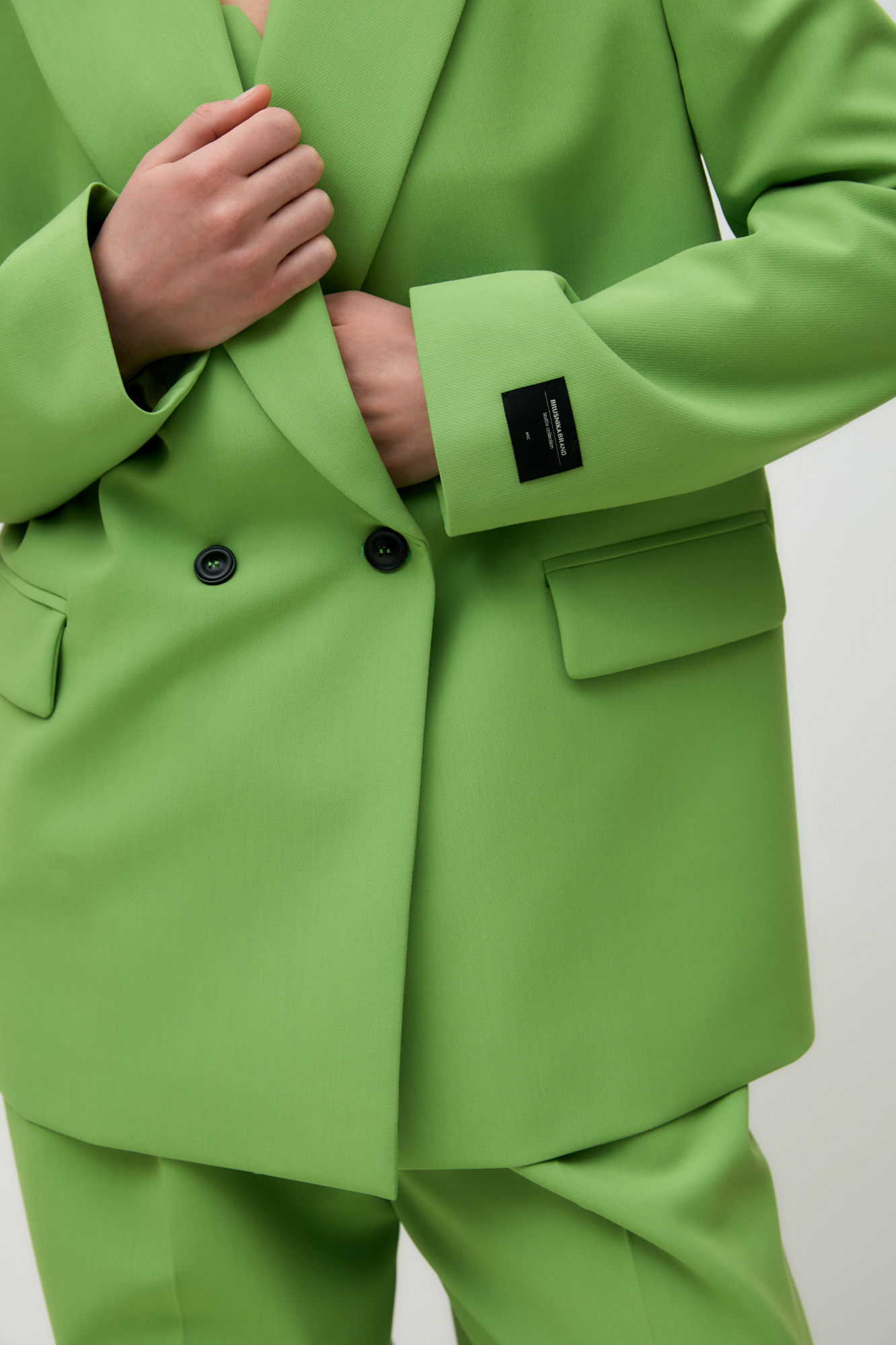 Классический жакет из поливискозы. Накладные карманы, брендированный ярлык на рукаве. Застежка на пуговицы.