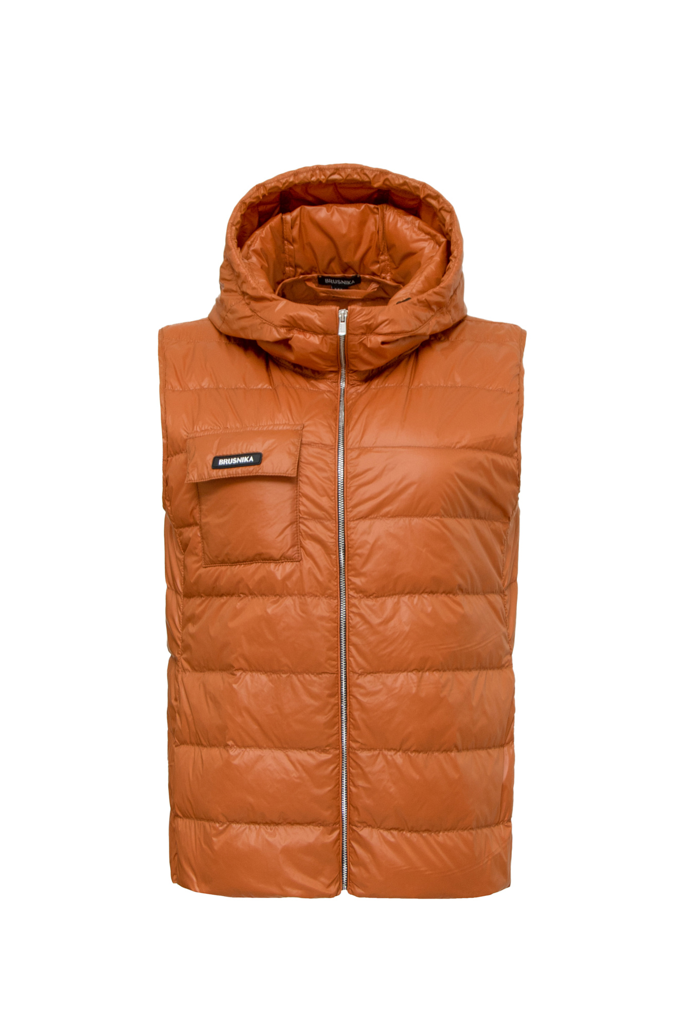 Супертонкий и ультралёгкий жилет, который складывается в чехол. Модель с карманом на груди и капюшоном. Натуральный наполнитель. Чехол для хранения в комплекте.