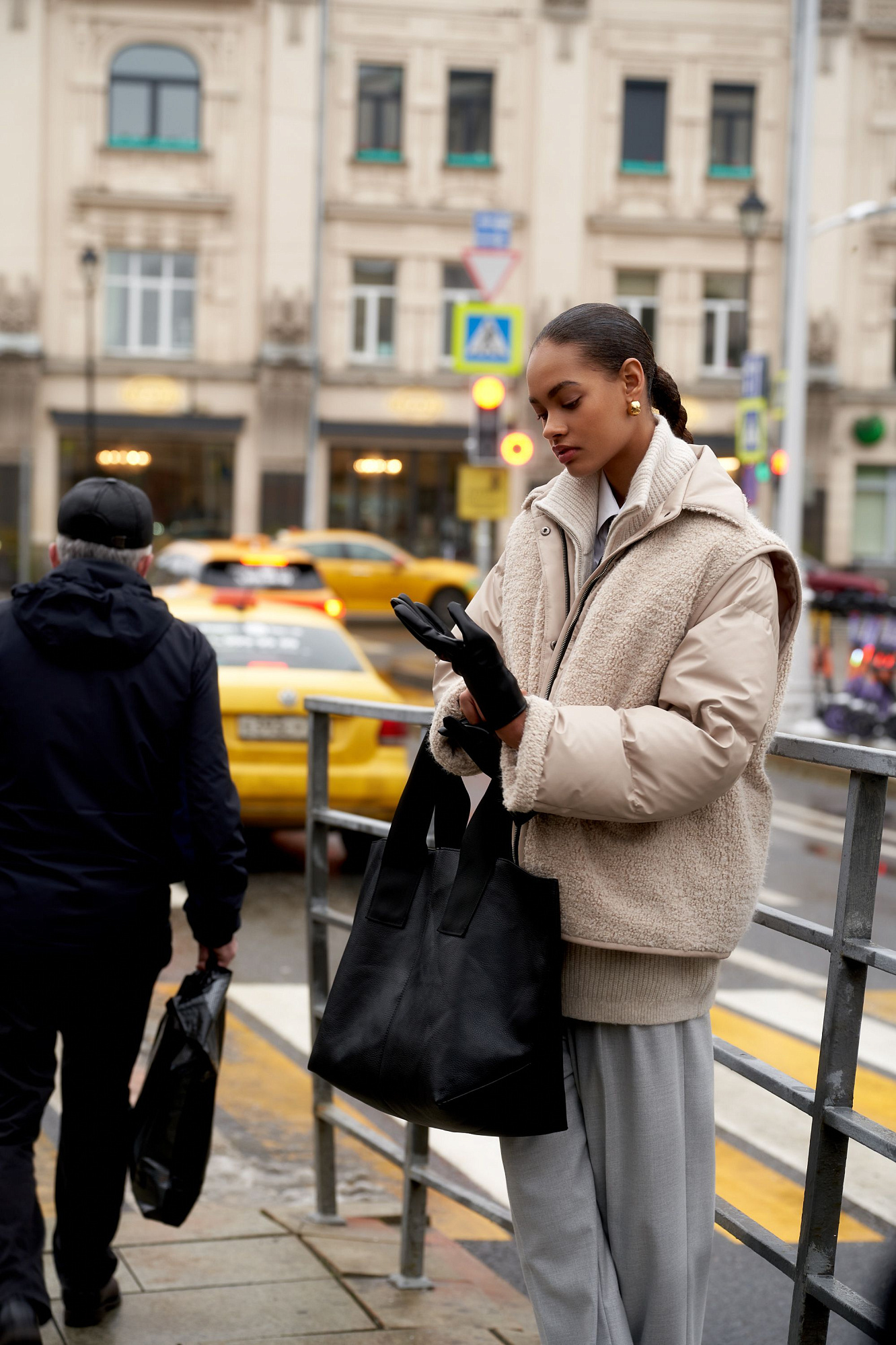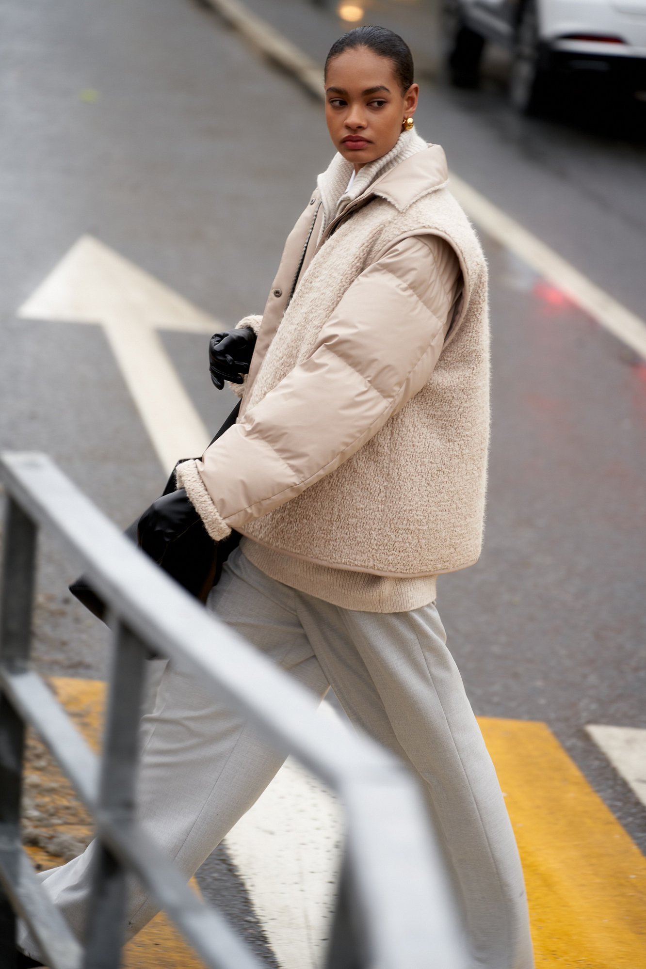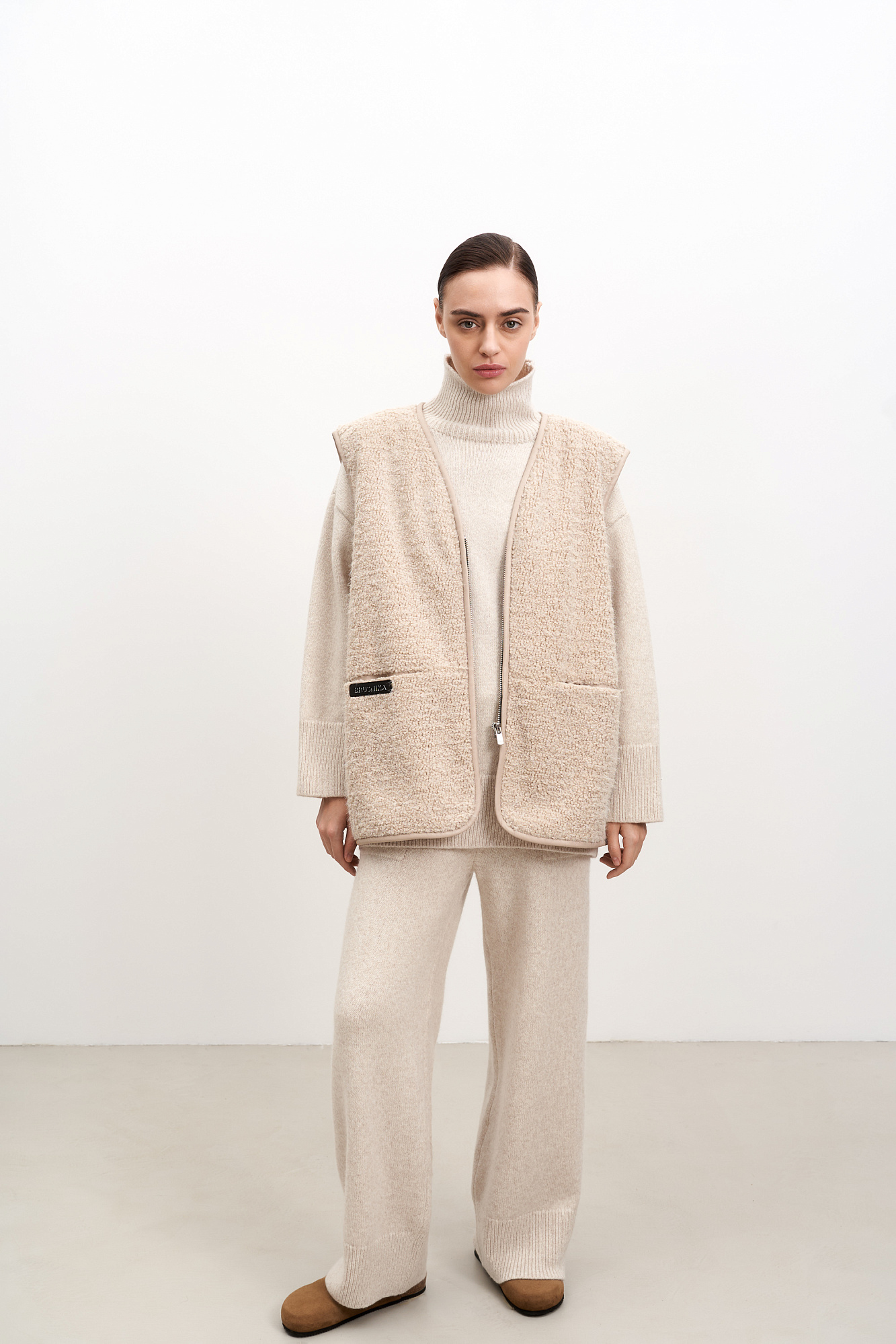 Oversize жилет из экомеха. Модель свободного силуэта с карманами спереди и брендированным ярлыком. На подкладке.
