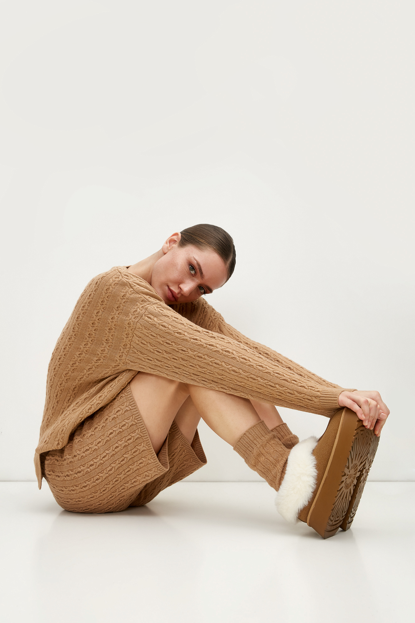 Свободные трикотажные шорты из кашемира и шерсти. Модель с широким эластичным поясом на кулискке и боковыми карманами.