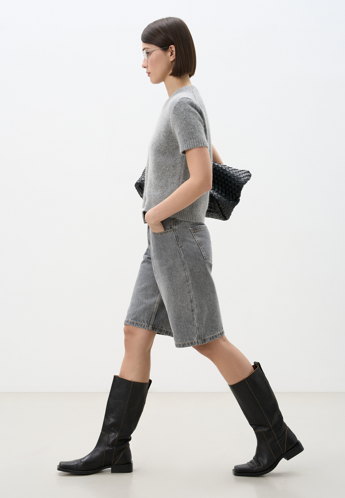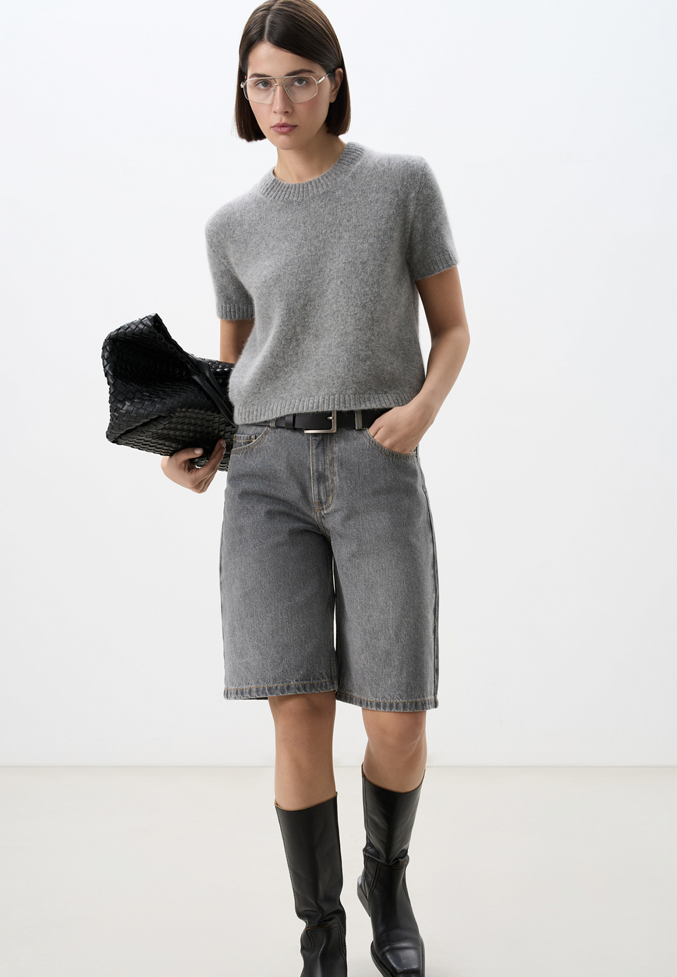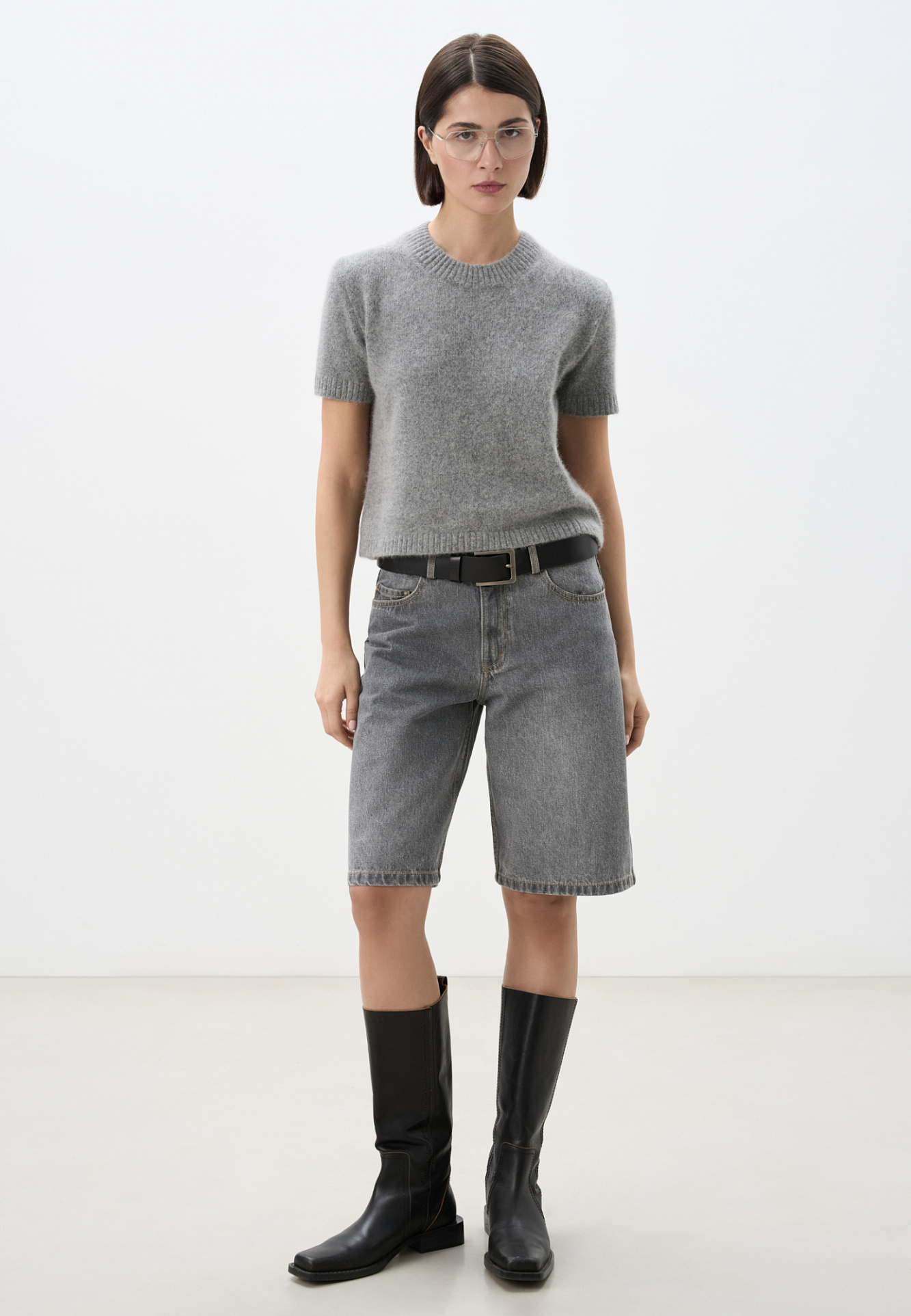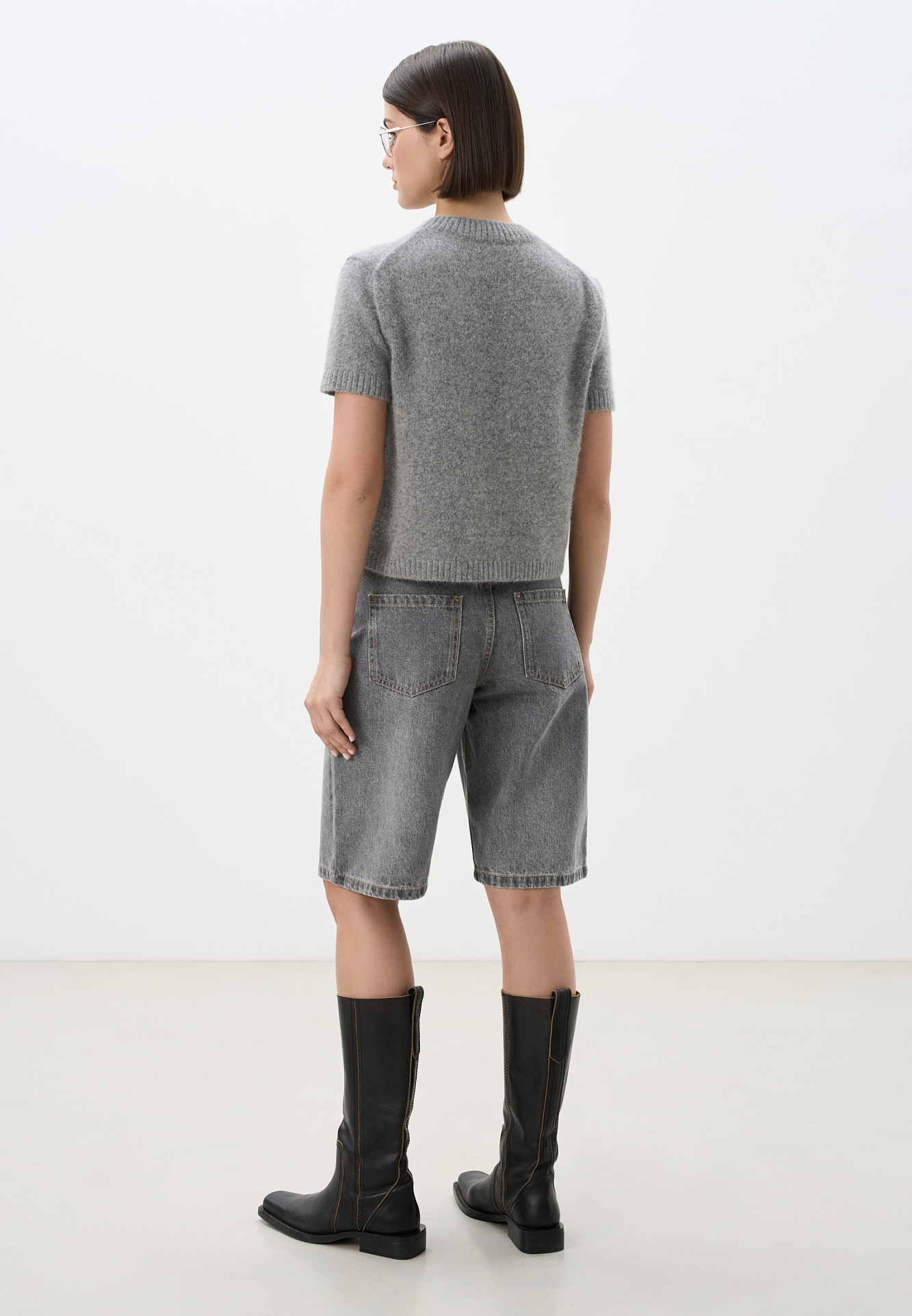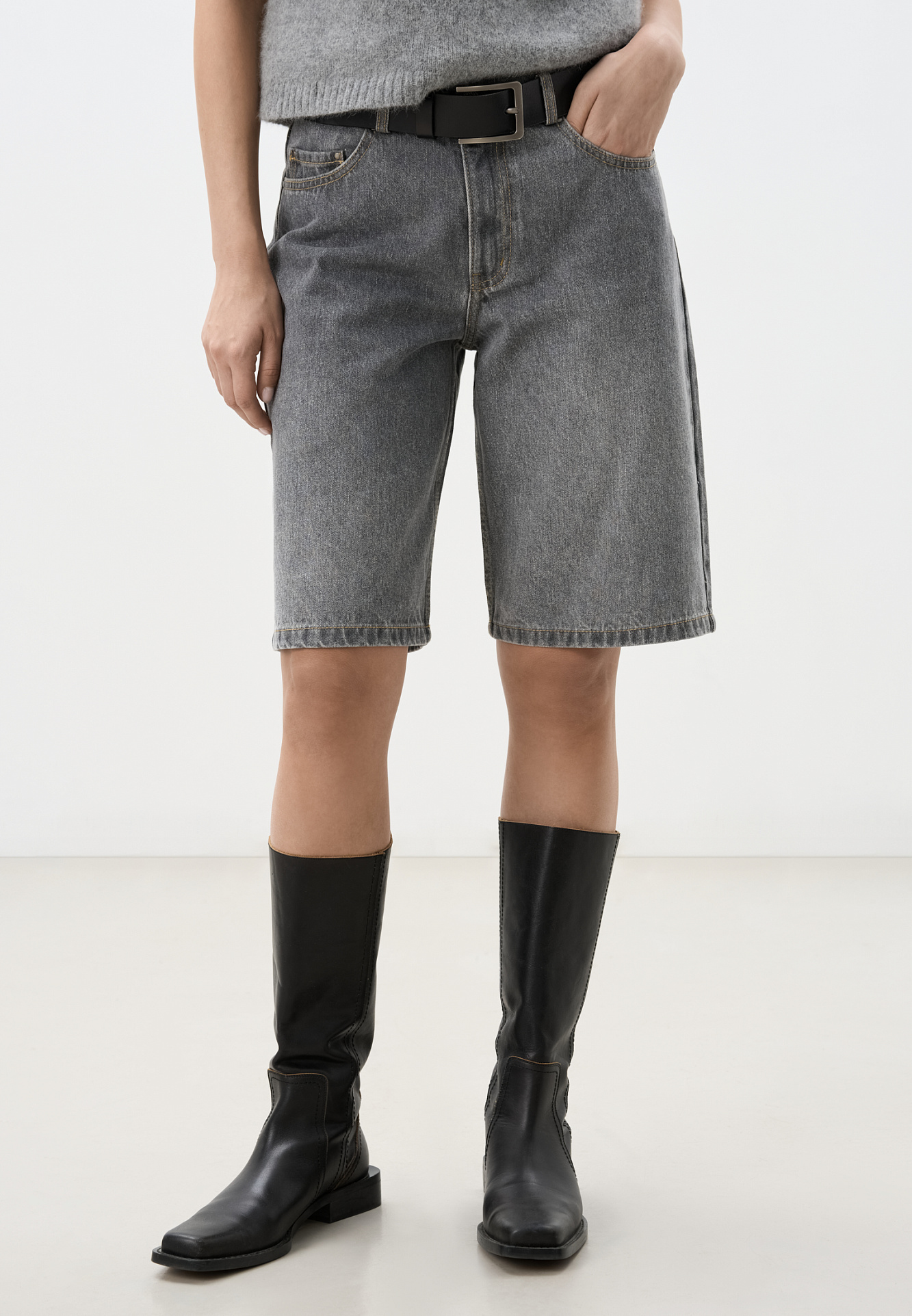 Джинсовые шорты-бермуды из 100% хлопка. Модель прямого кроя, со средней посадкой. Шлевки на поясе для ремня. Пять карманов. Застежка на молнию и металлическую пуговицу.