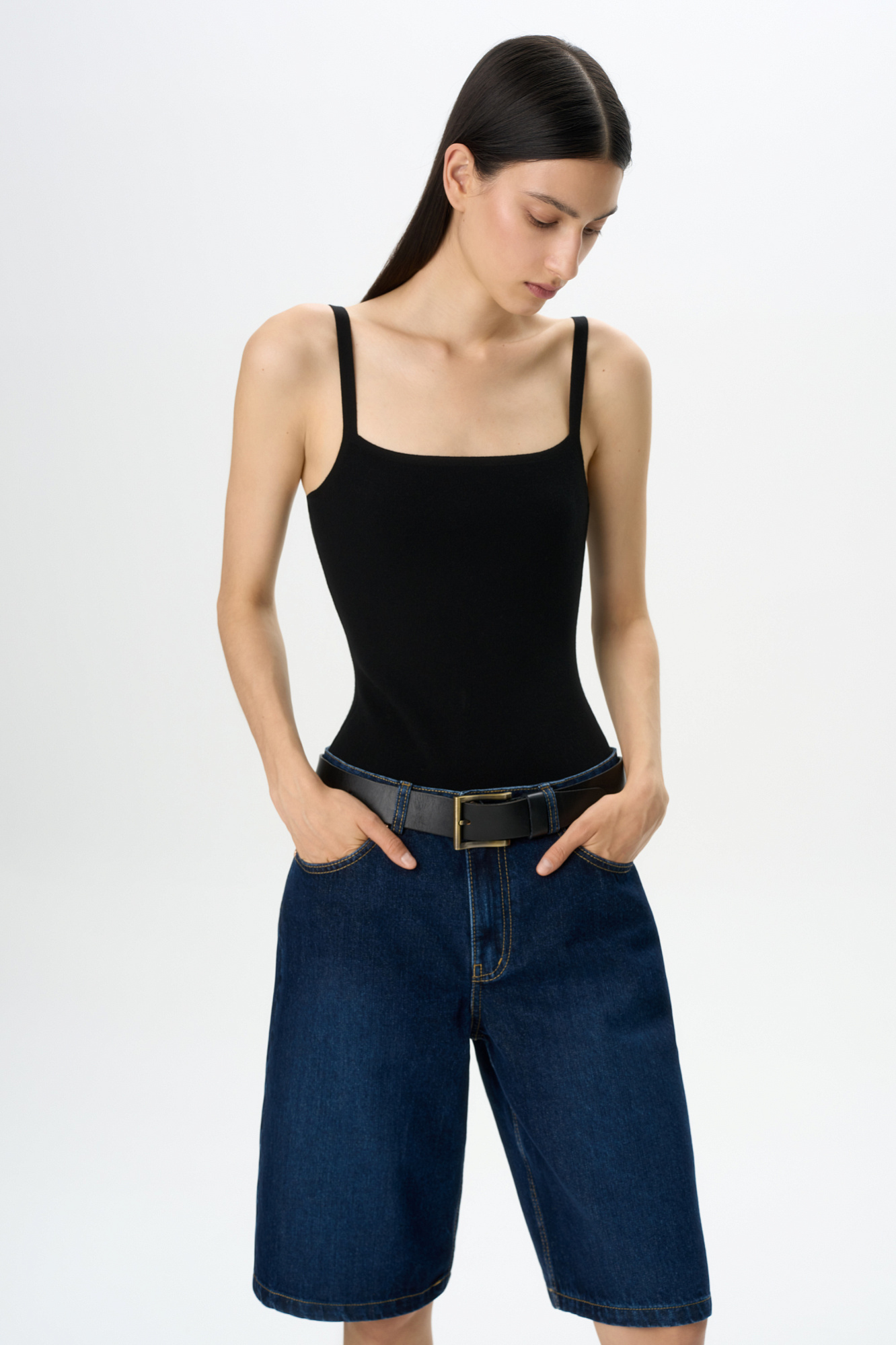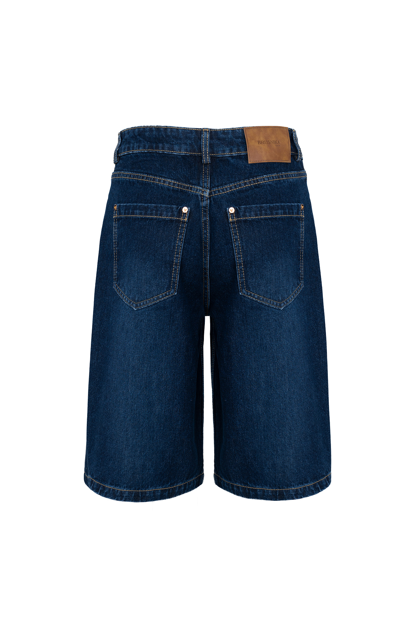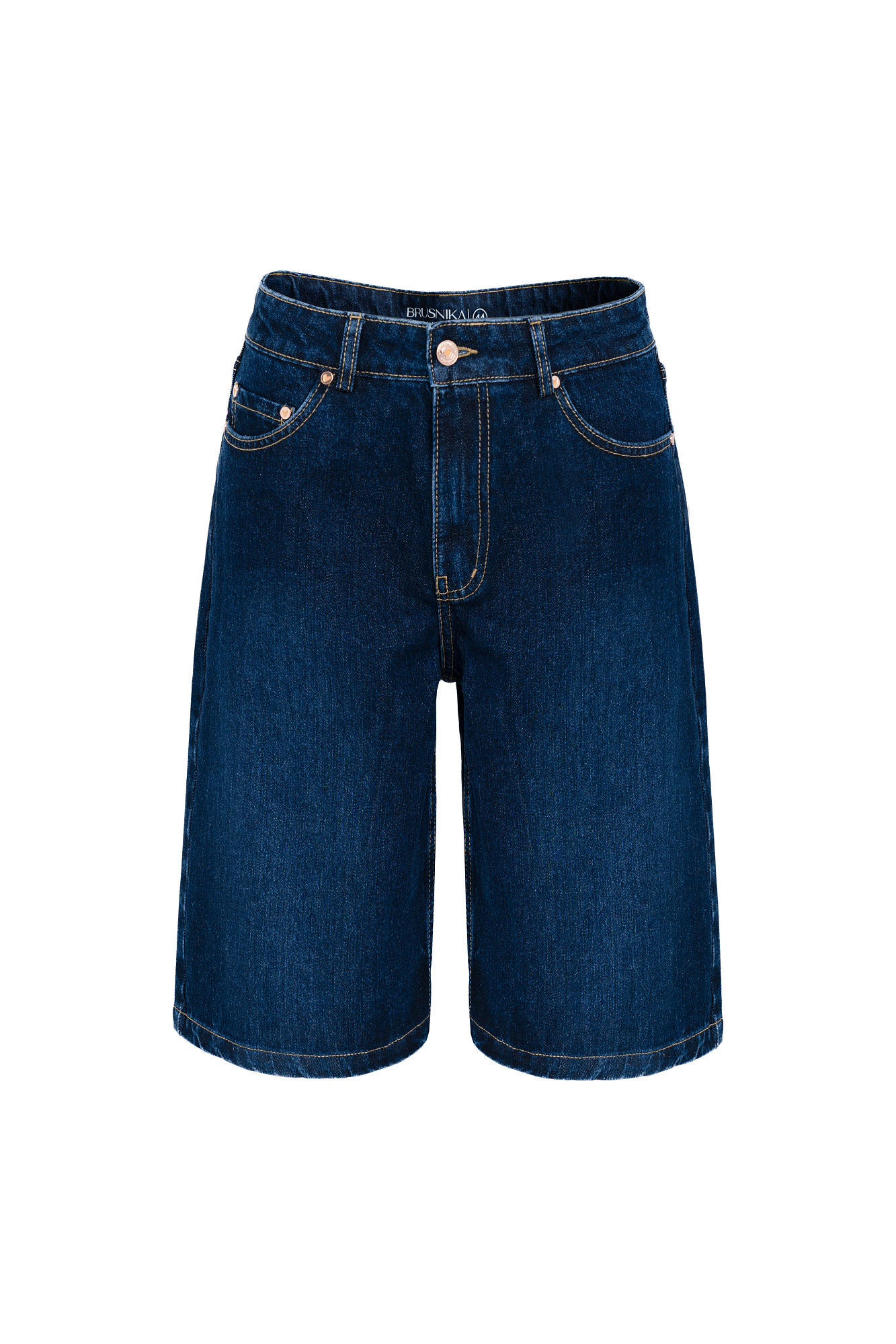 Джинсовые шорты-бермуды из 100% хлопка. Модель прямого кроя, со средней посадкой. Шлевки на поясе для ремня. Пять карманов. Застежка на молнию и металлическую пуговицу.