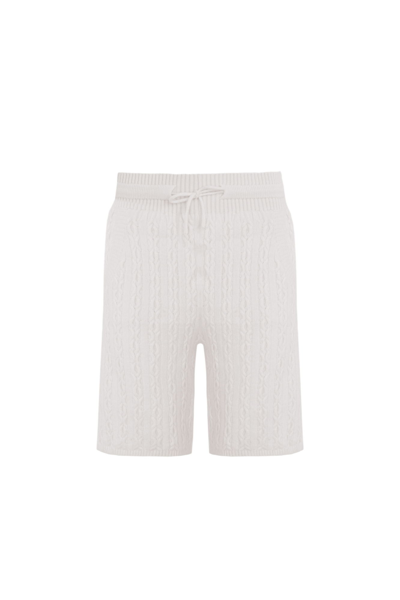 Свободные трикотажные шорты из кашемира и шерсти. Модель с широким эластичным поясом на кулискке и боковыми карманами.