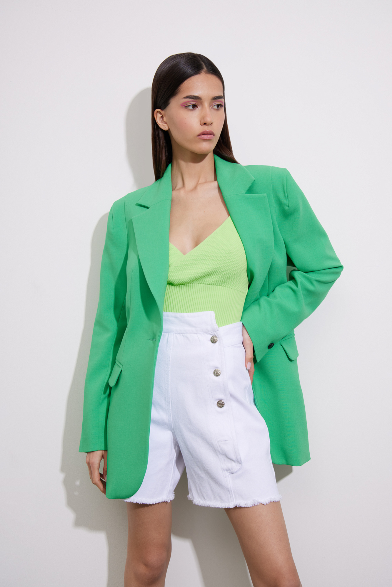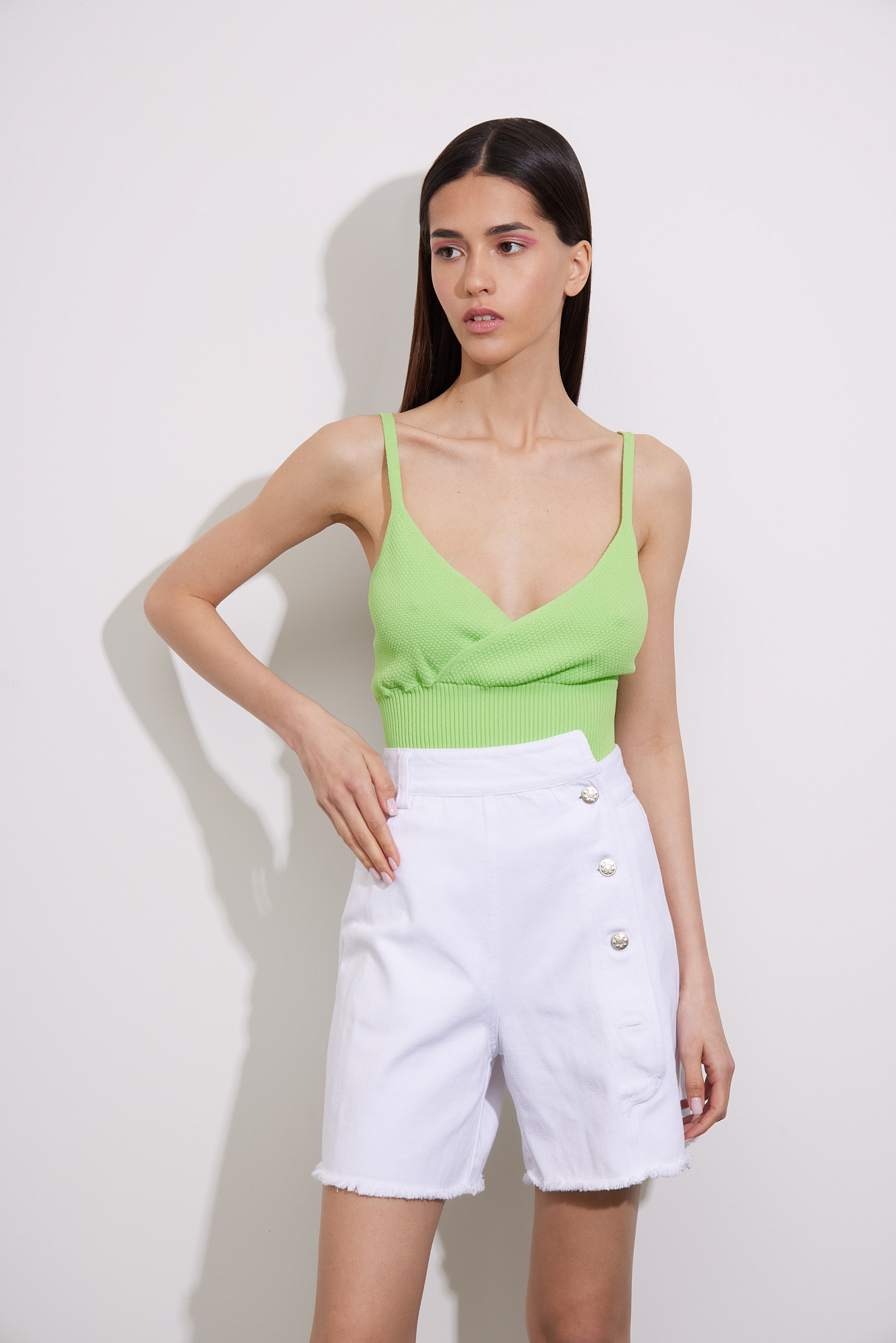 Шорты из 100% хлопка. Модель прямого кроя с застежкой на левой половине.