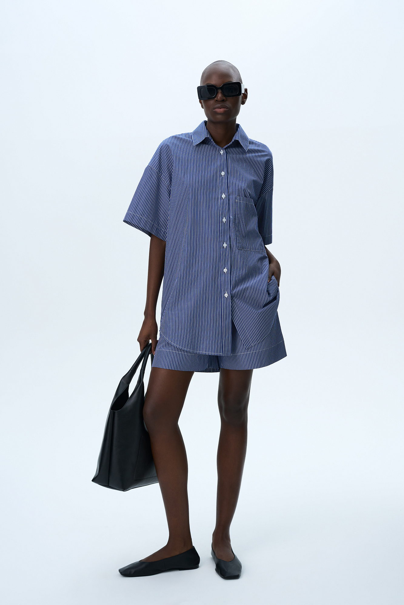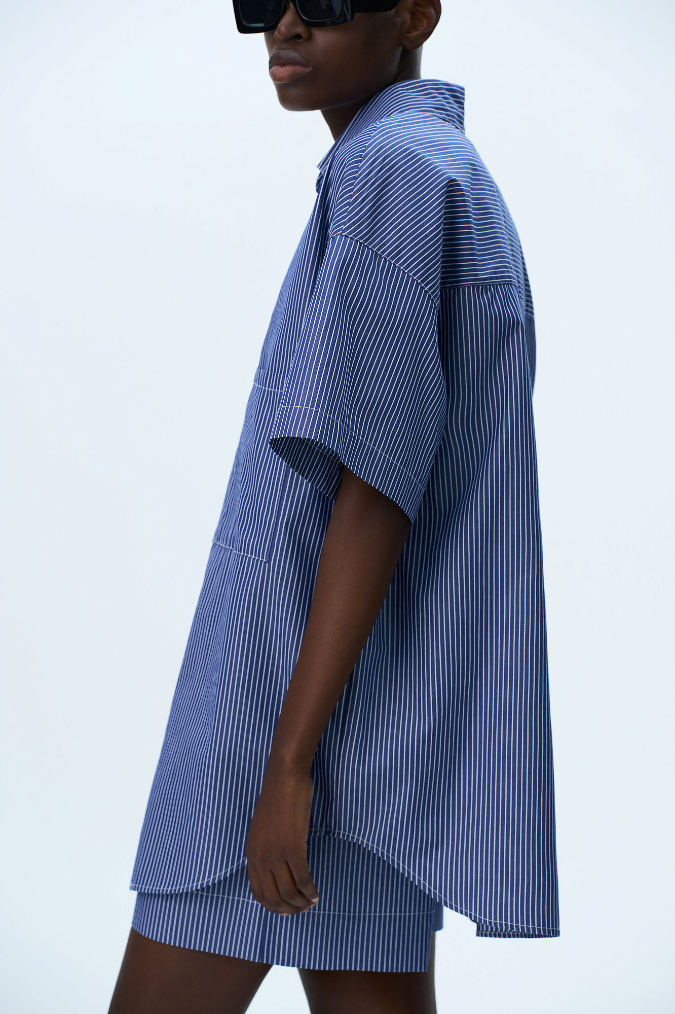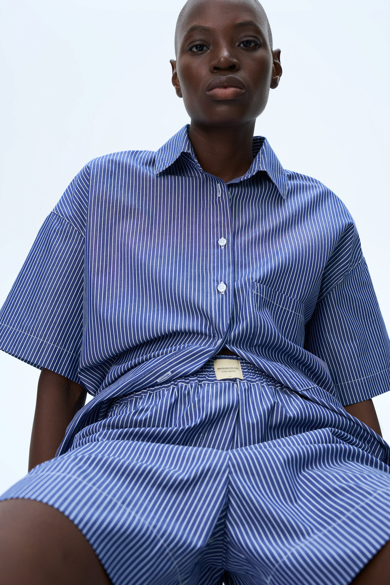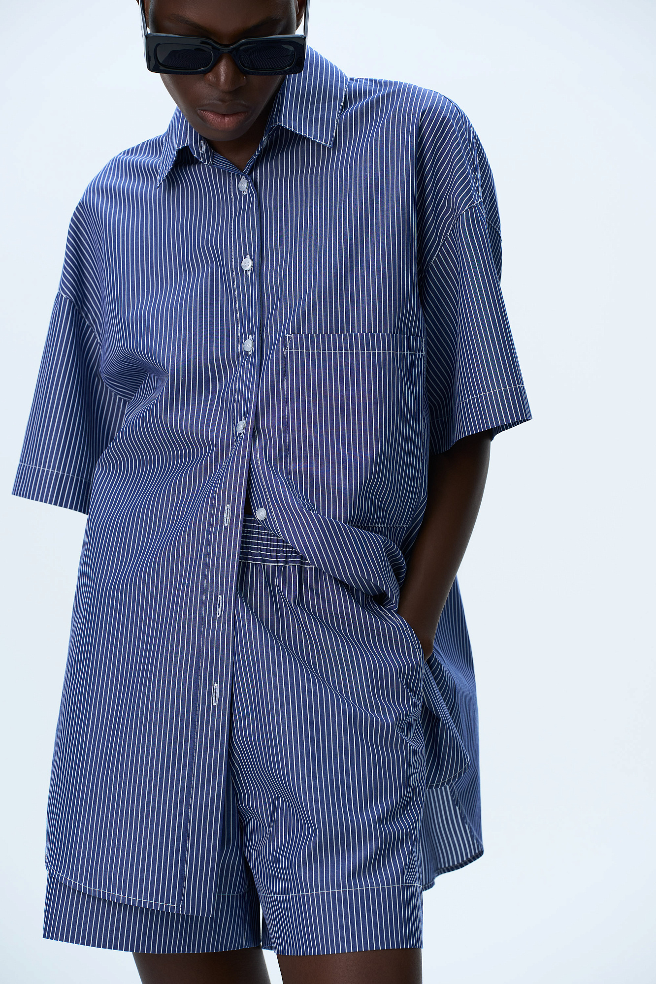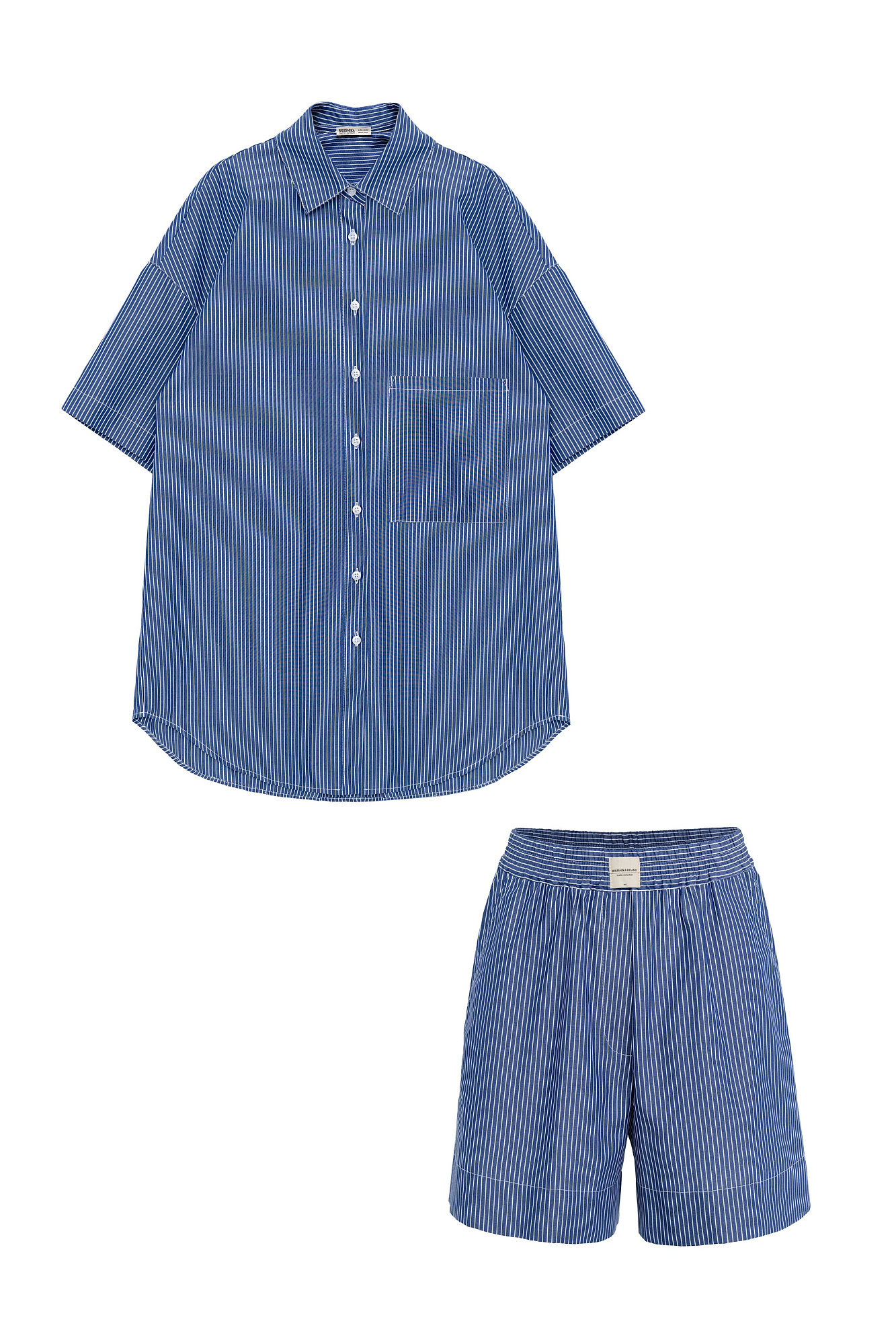 Комплект из 100% хлопка состоящий из рубашки с накладным карманом и шорт с карманами по бокам и брендированным ярлыком на поясе с эластичной лентой.