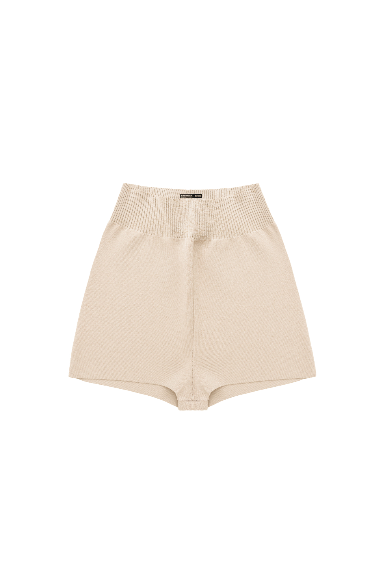 Трикотажные шорты мини из вискозы с эластичным поясом в рубчик.