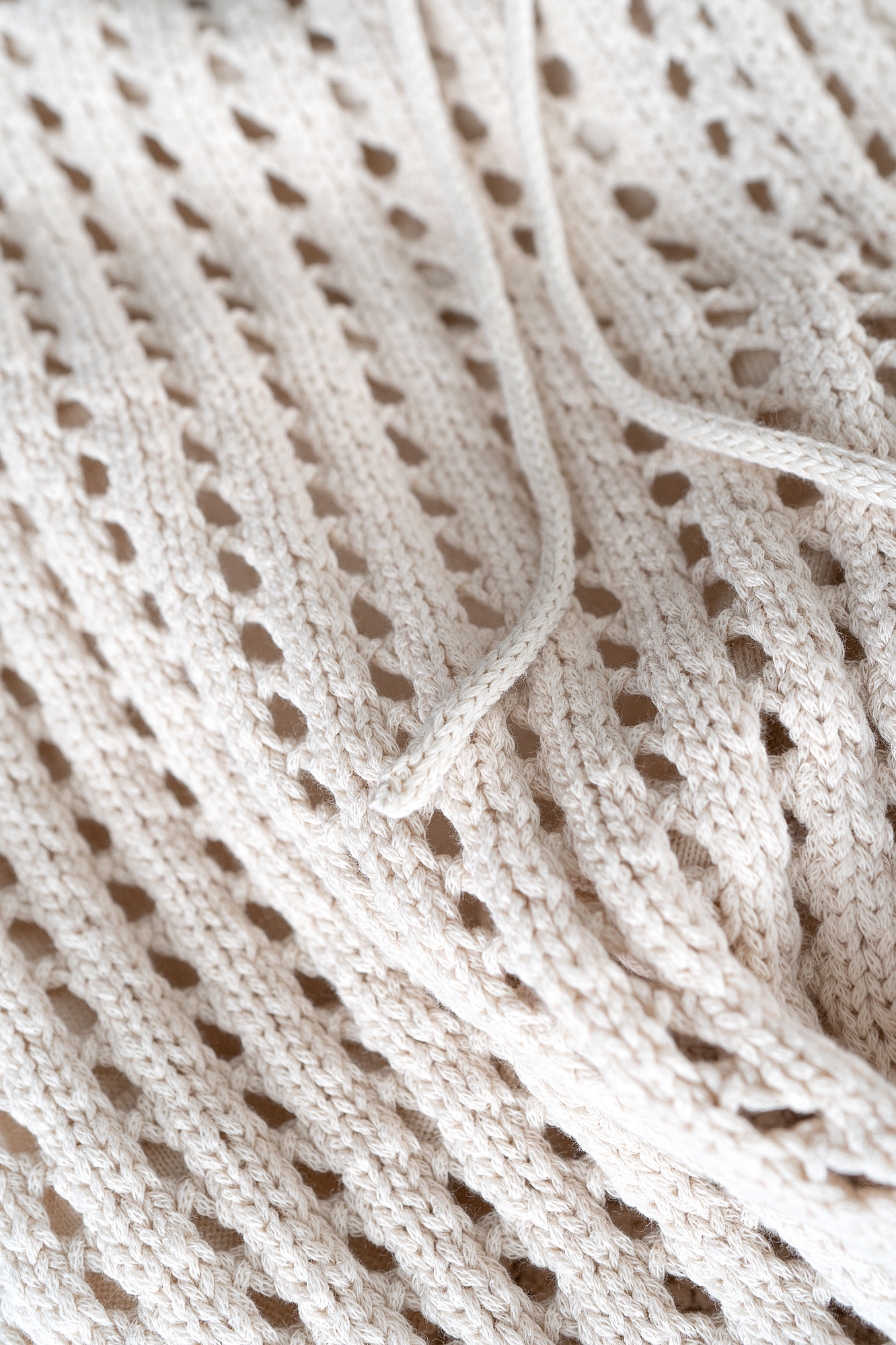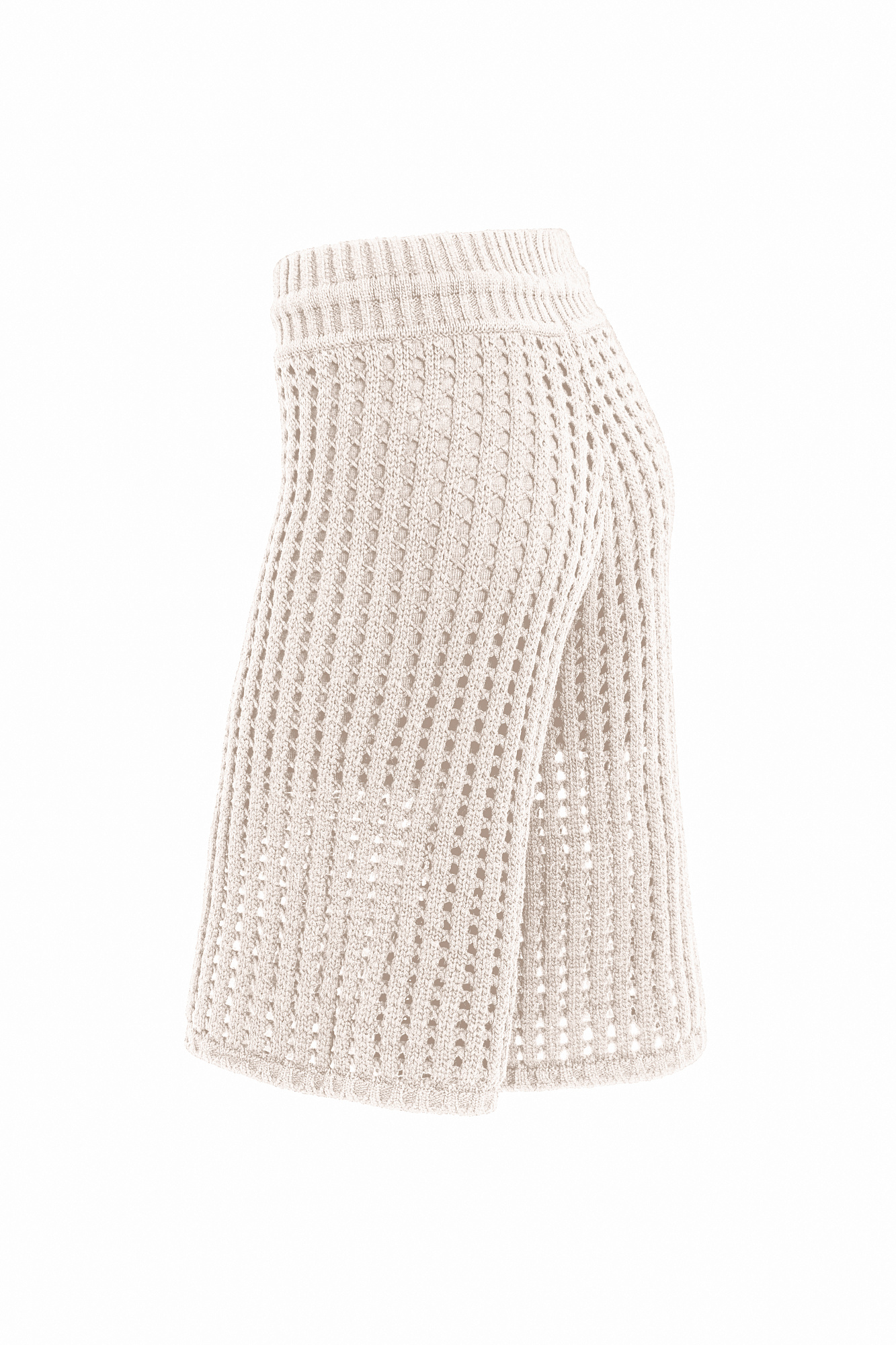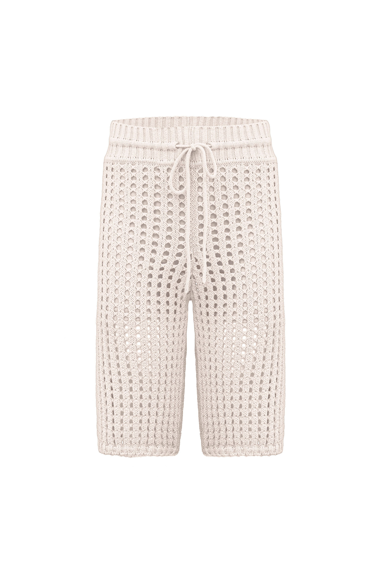 Шорты из 100% хлопка в сетку с поясом из эластичной ленты в рубчик на кулиске. Дополнить ображ можно рубашкой в таком же стиле.