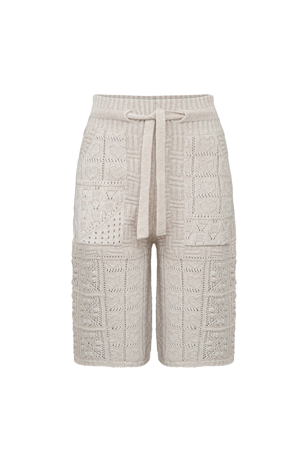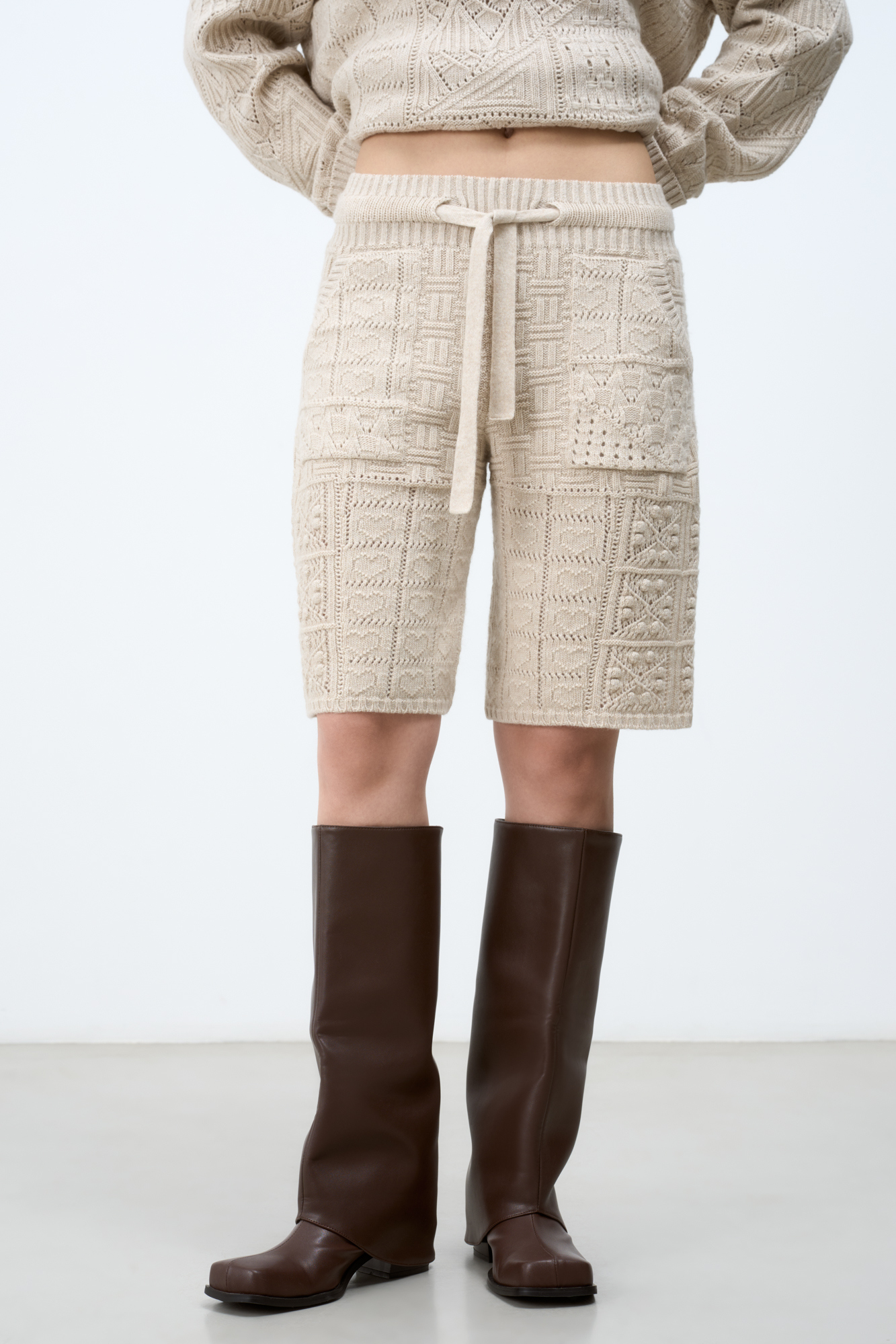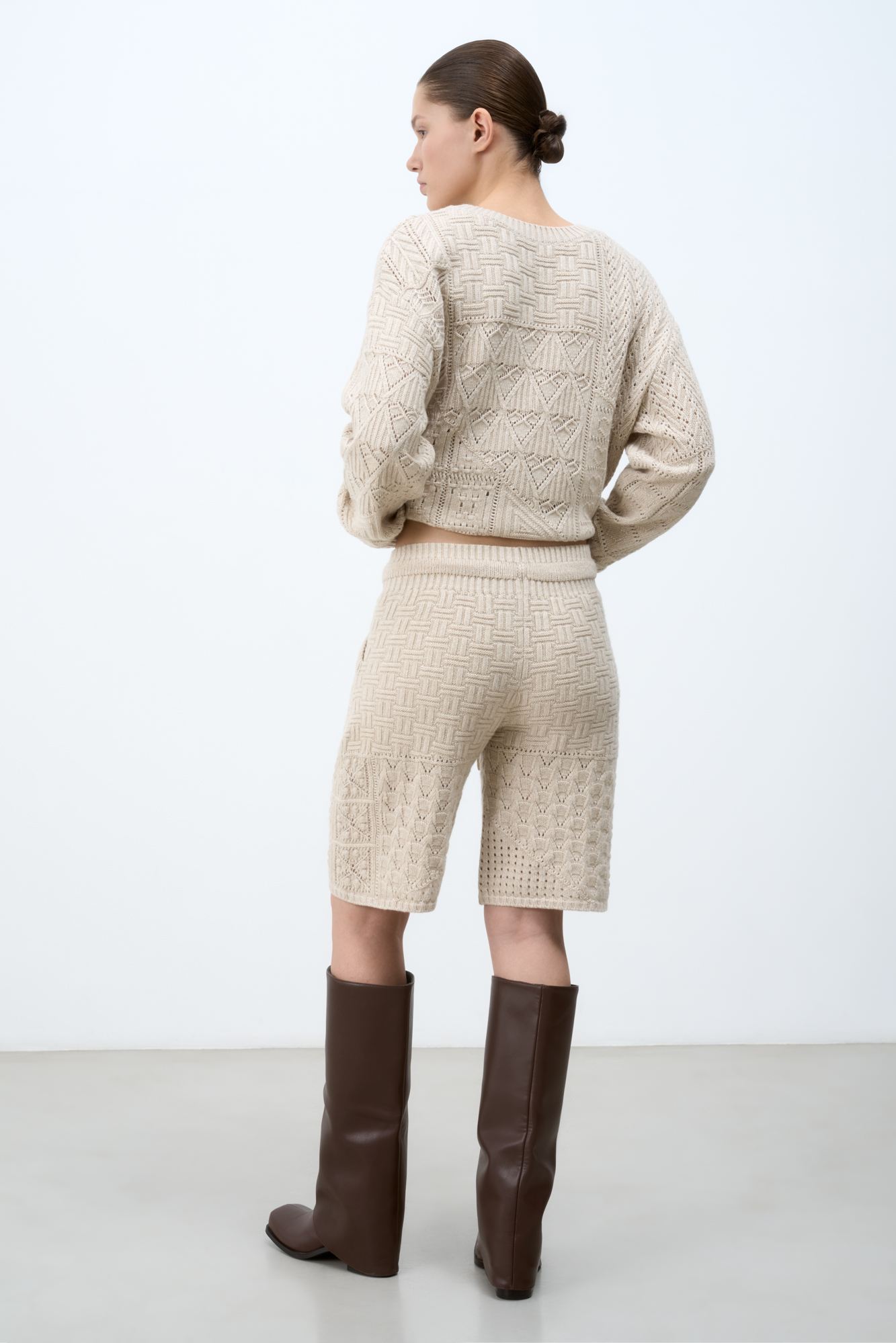 Ажурные шорты из кашемира и шерсти с кулиской и накладными карманами