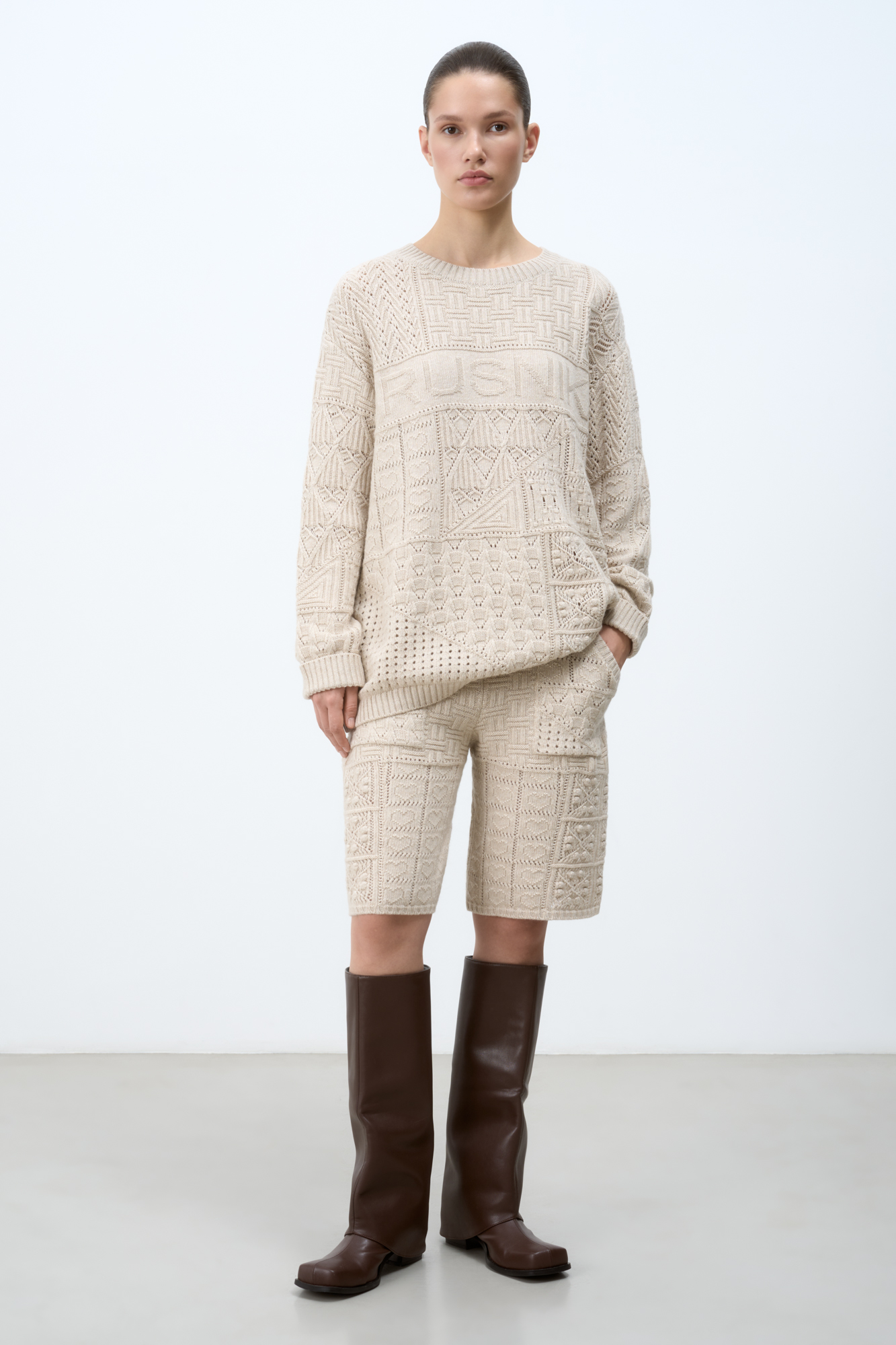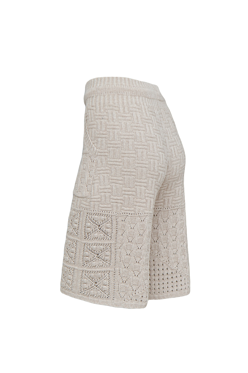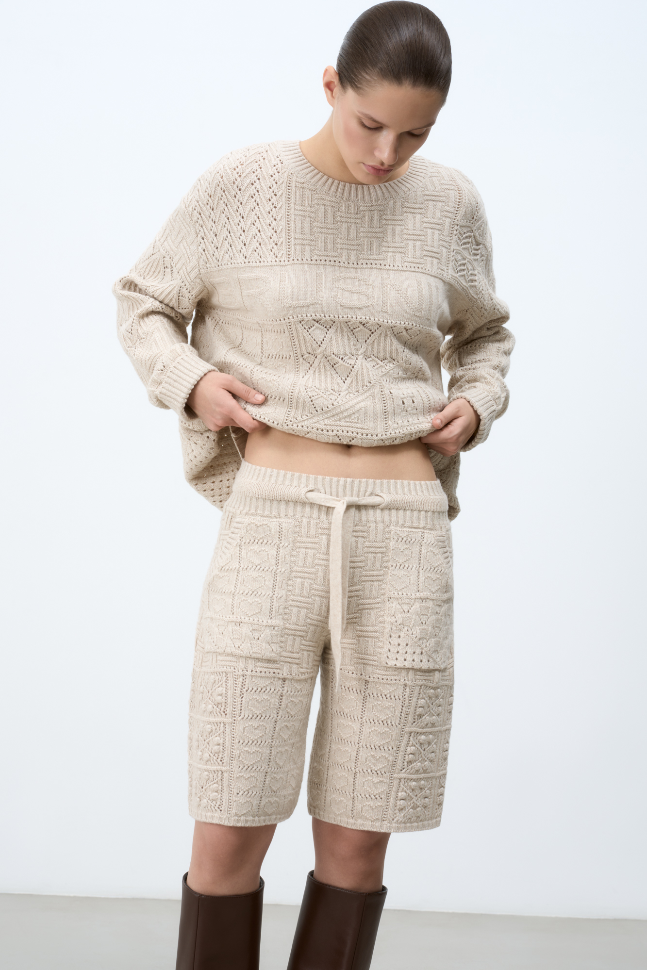 Ажурные шорты из кашемира и шерсти с кулиской и накладными карманами