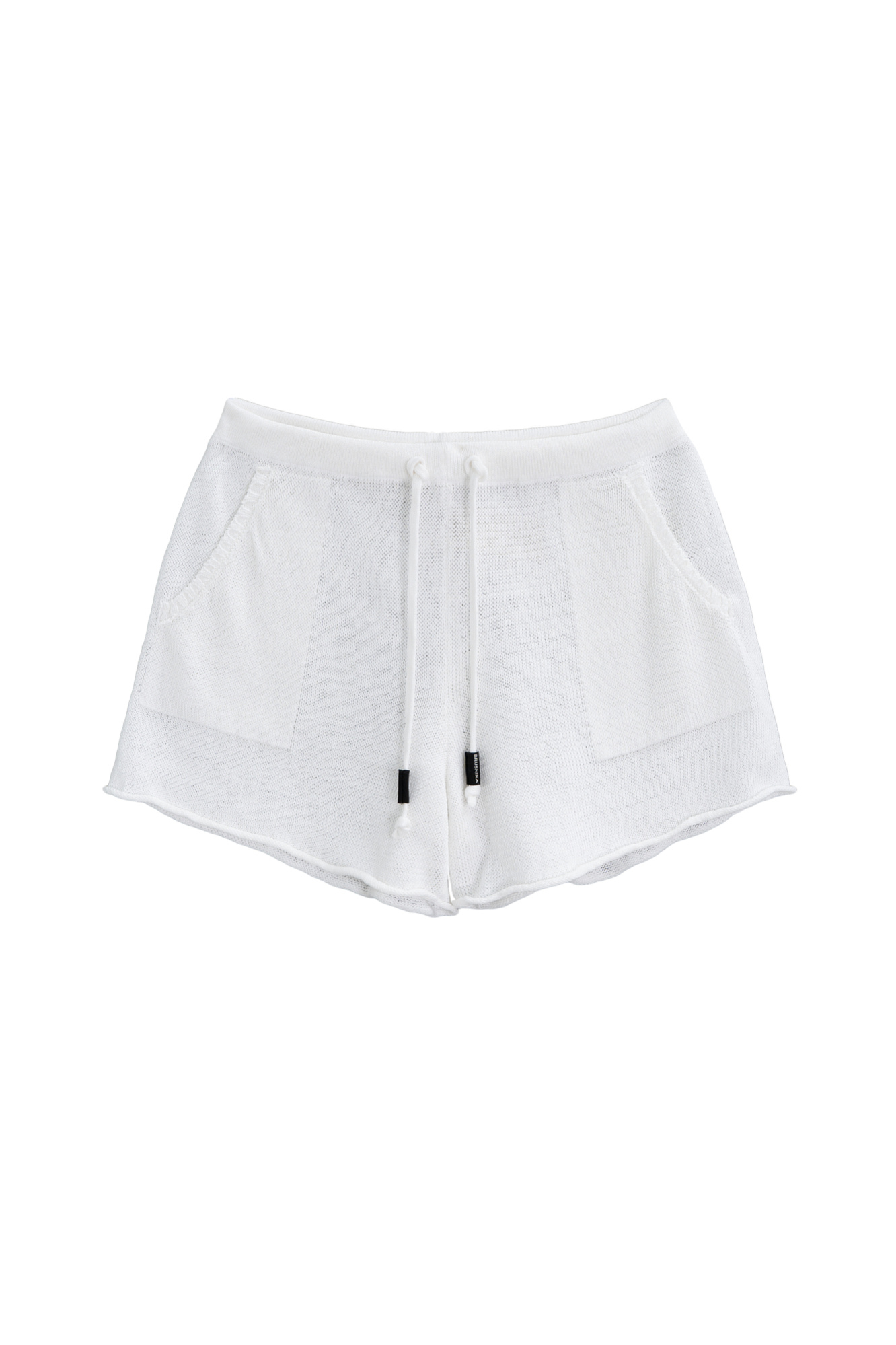 Трикотажные короткие шорты из 100% льна. Модель свободного кроя с двумя боковыми карманами и регулиремым поясом на кулиске.