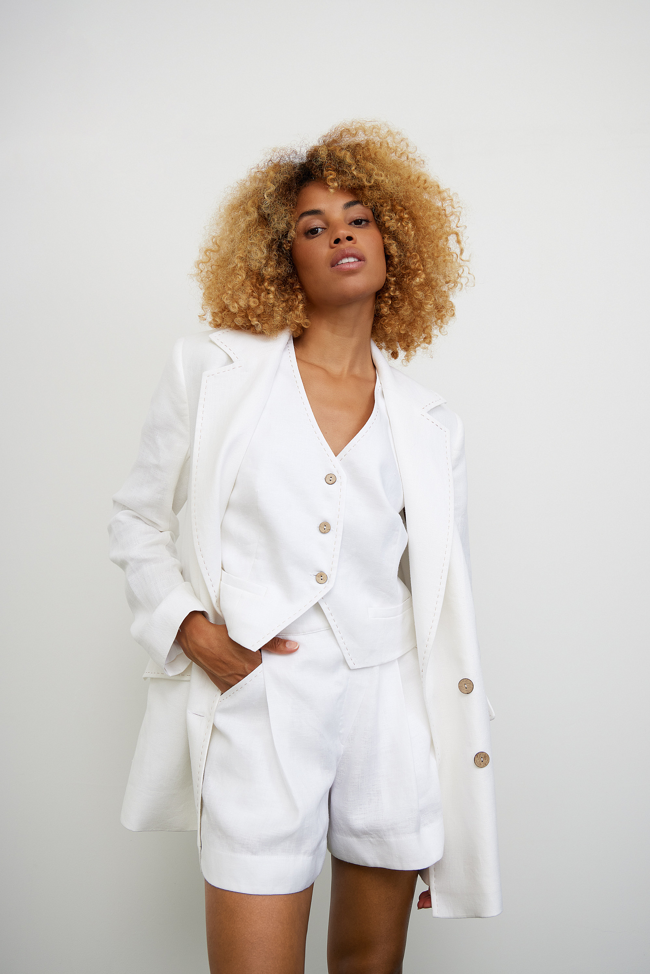 Шорты из 100% льна. Модель свободного силуэта с карманами по бокам и застежкой с потайной молнией и пуговицей.
