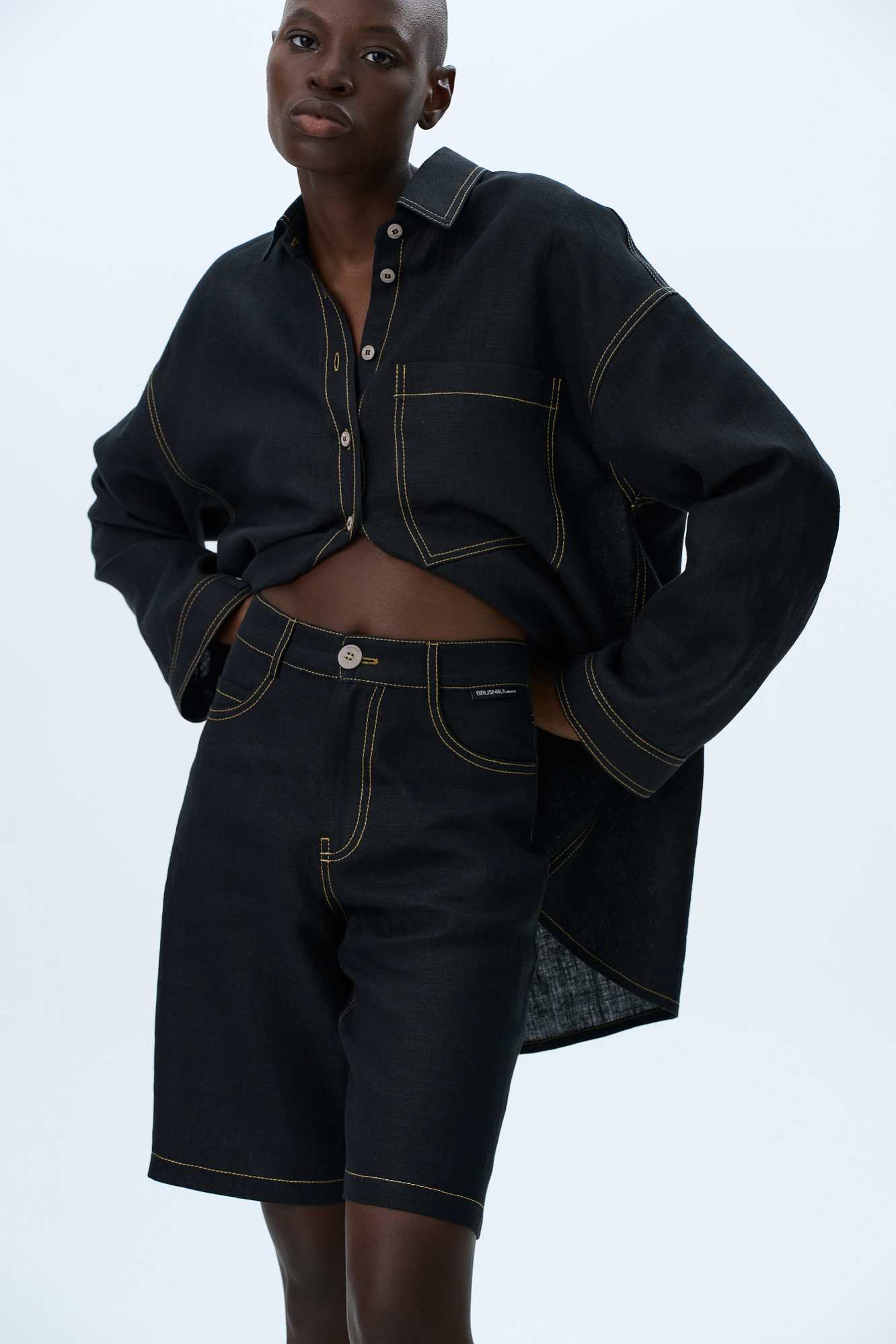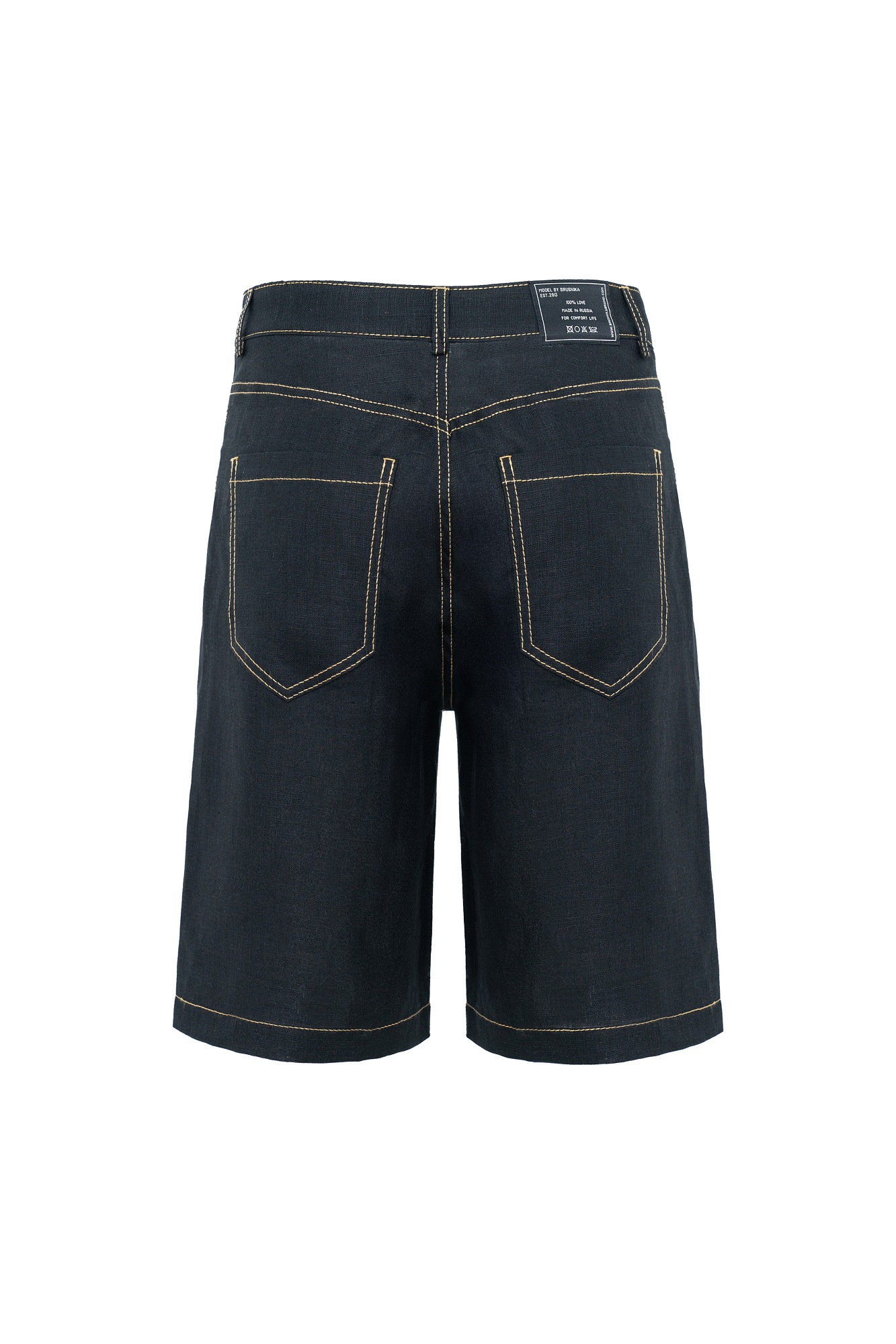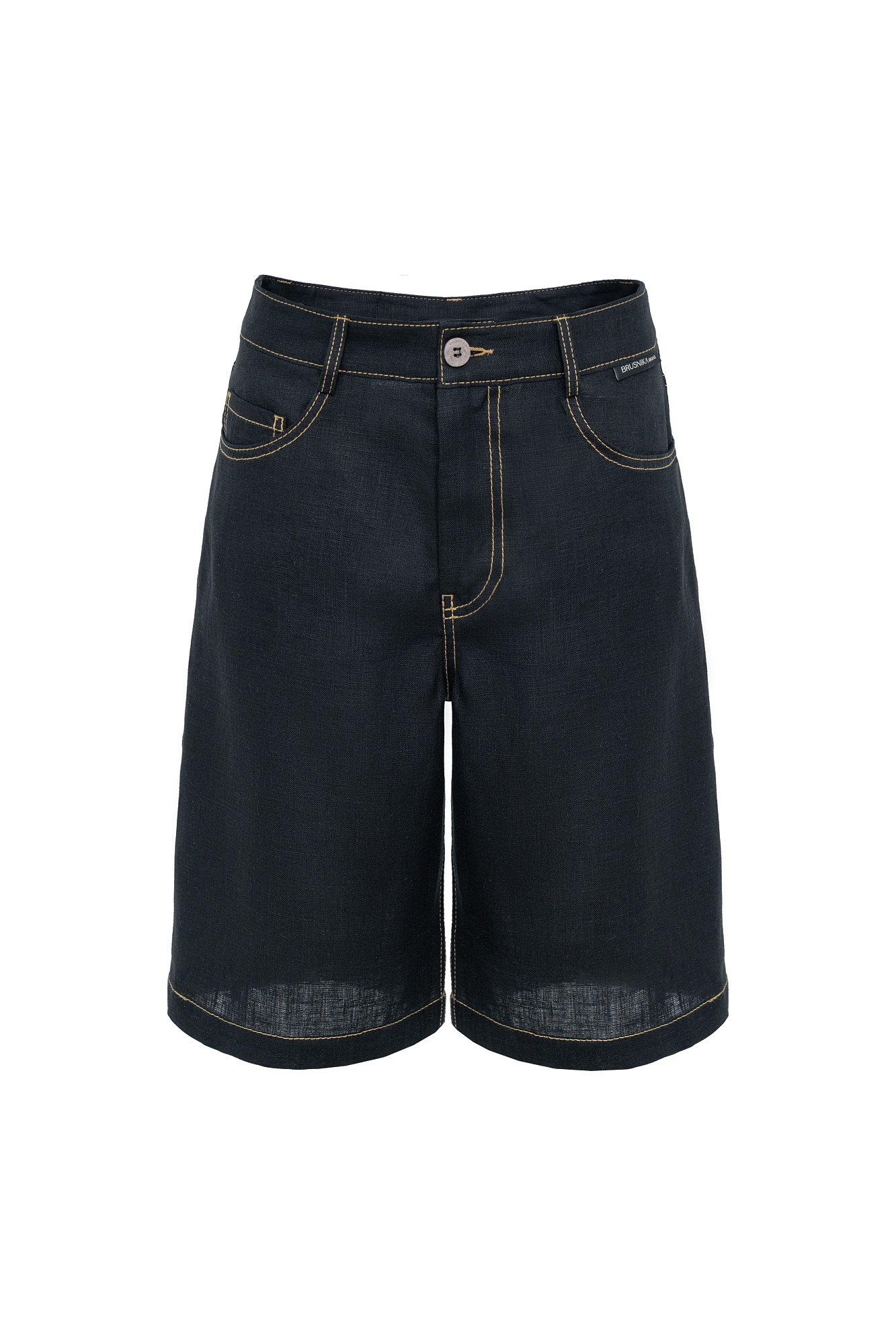 Шорты из 100% льна с брендированным ярлыком на поясе. Пять карманов, застежка на молнию и пуговицу.