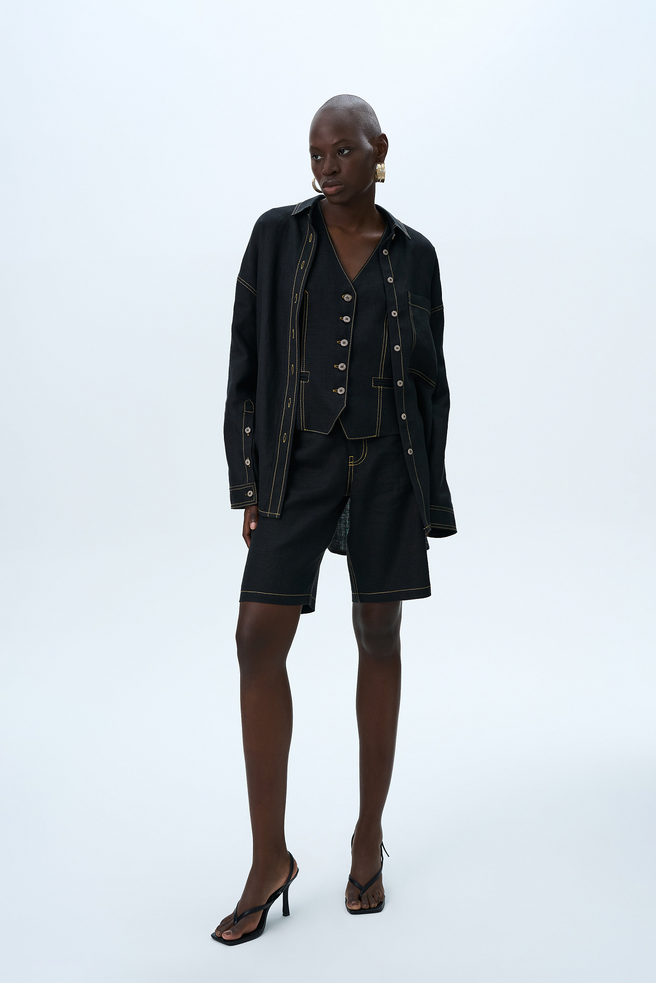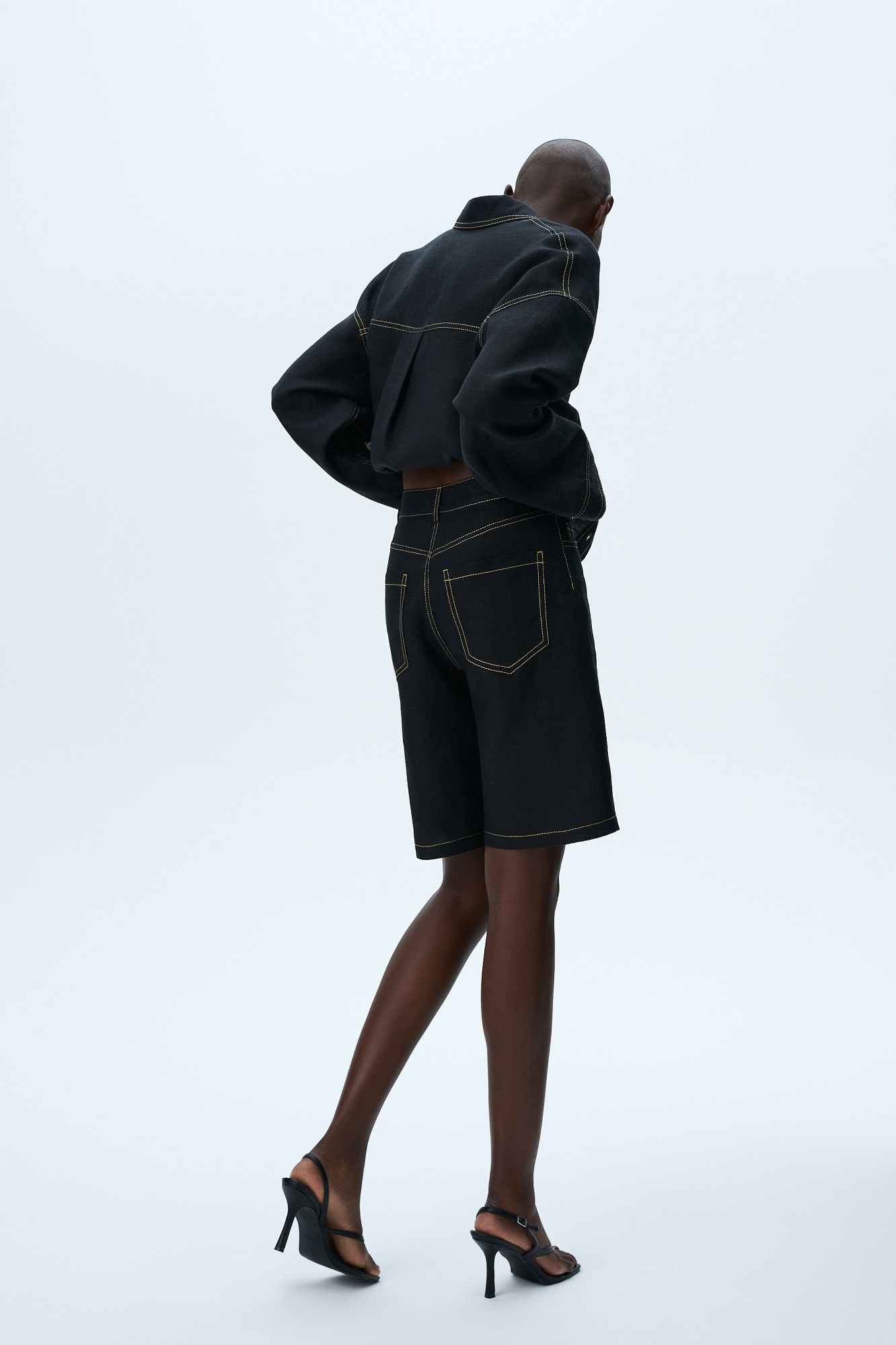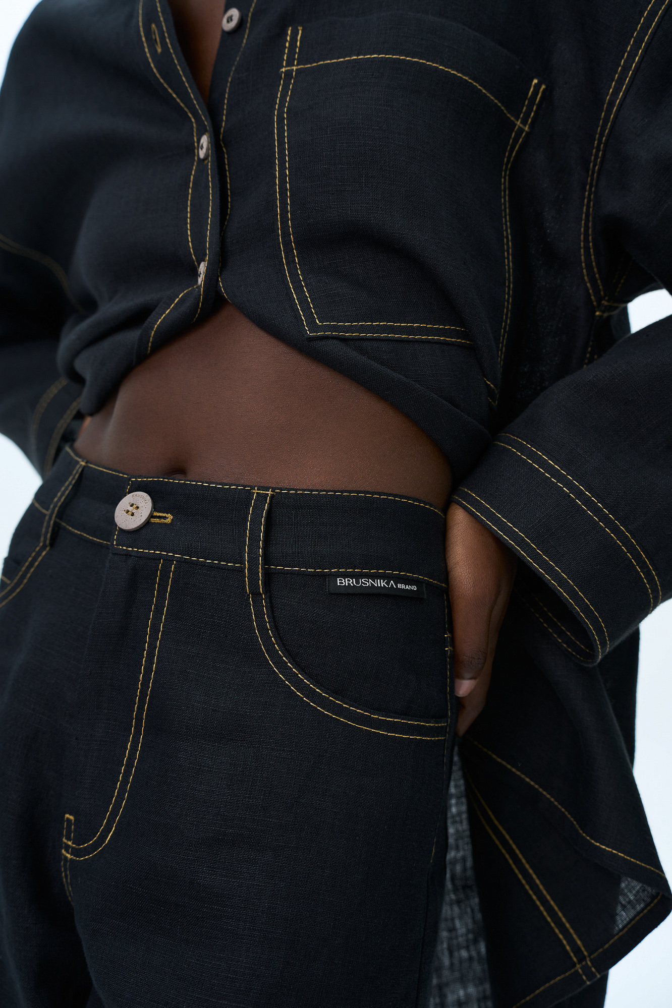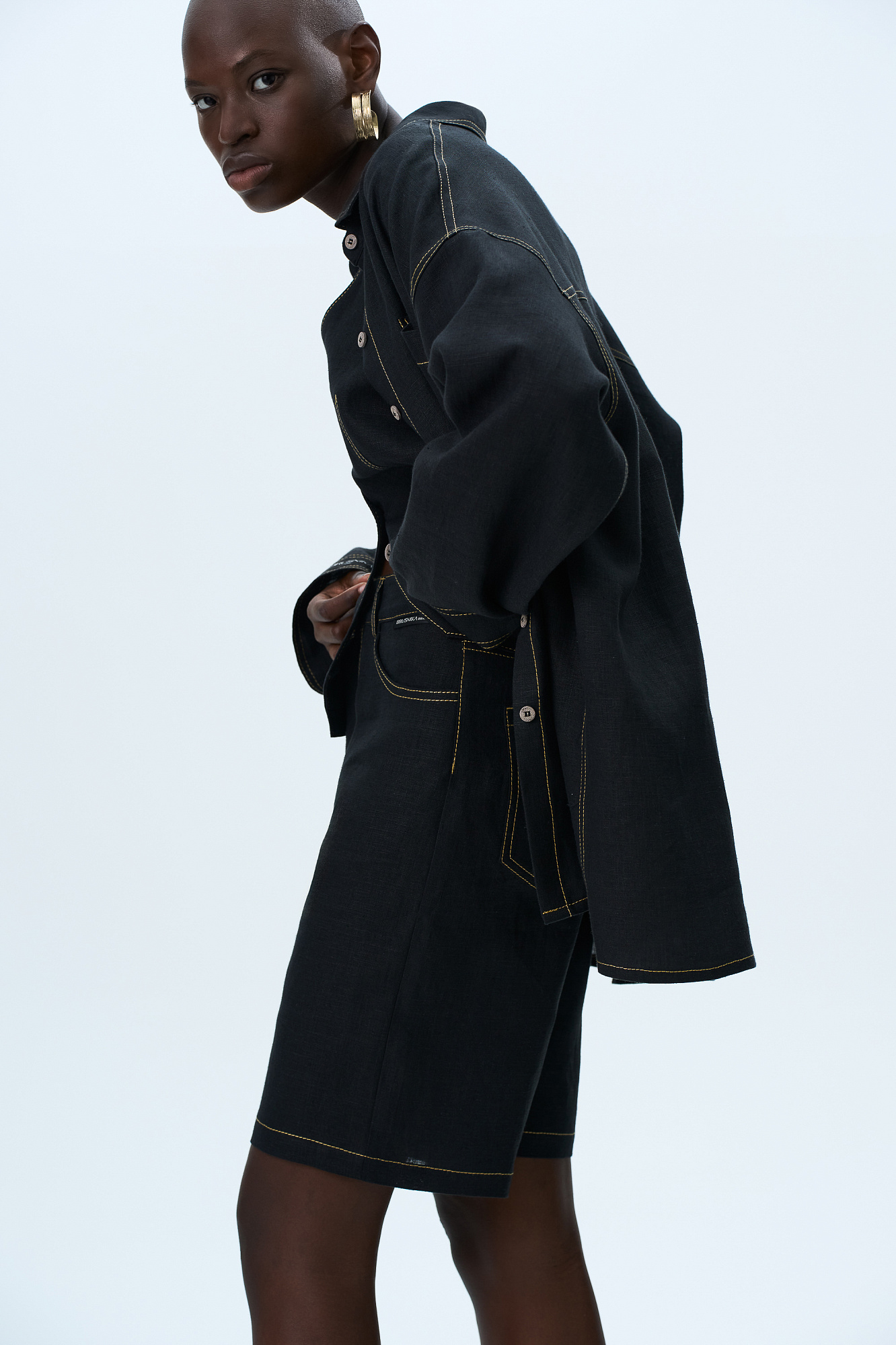 Шорты из 100% льна с брендированным ярлыком на поясе. Пять карманов, застежка на молнию и пуговицу.