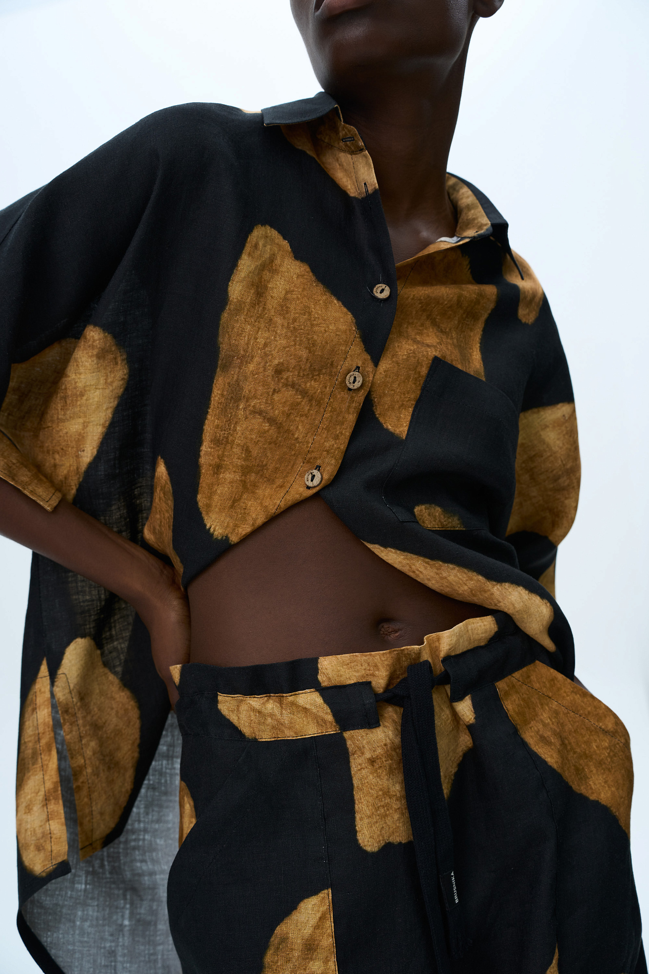 Принтованные шорты 100% льна. Модель на кулиске, с боковыми карманами.