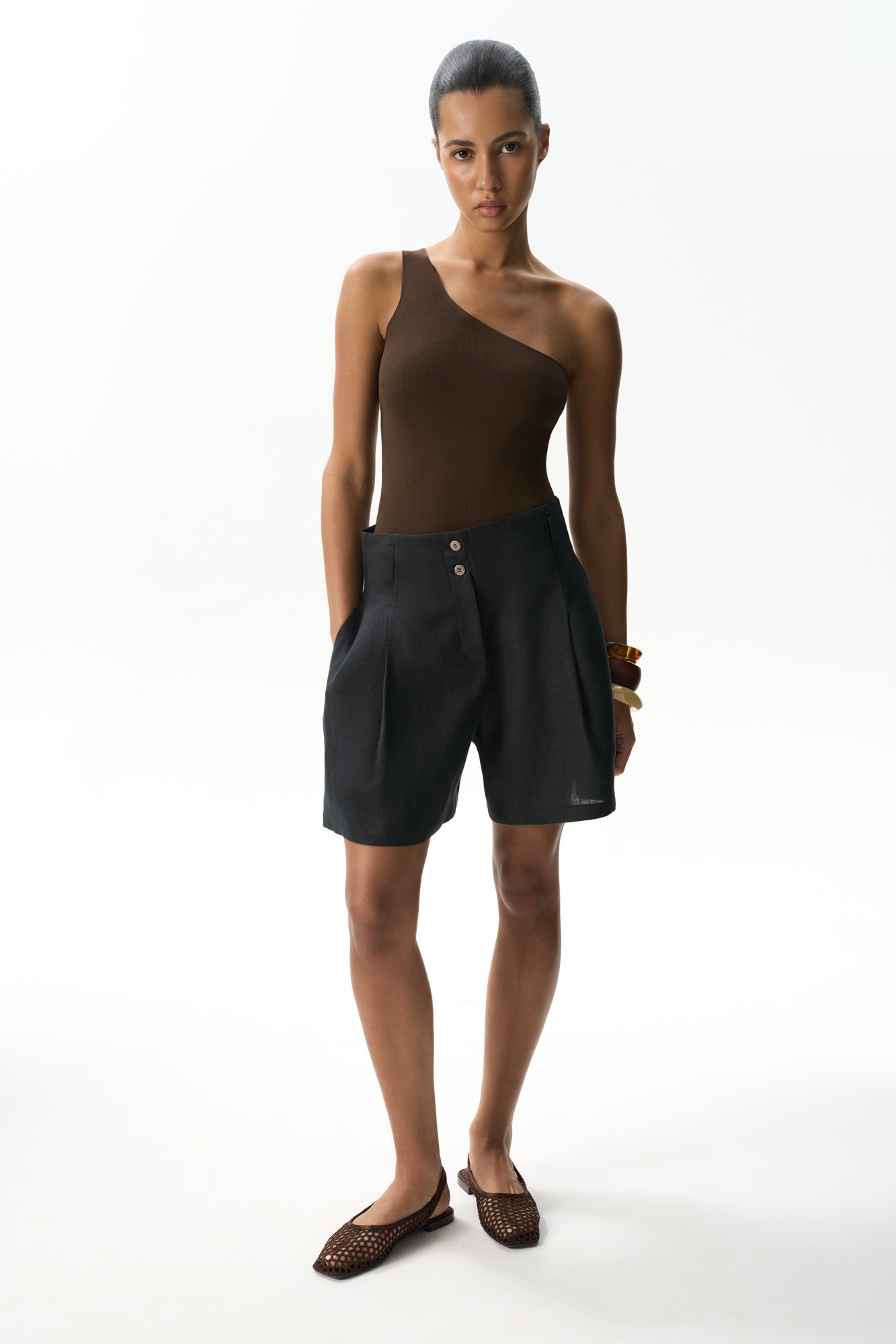 Шорты из 100% льна с высокой посадкой