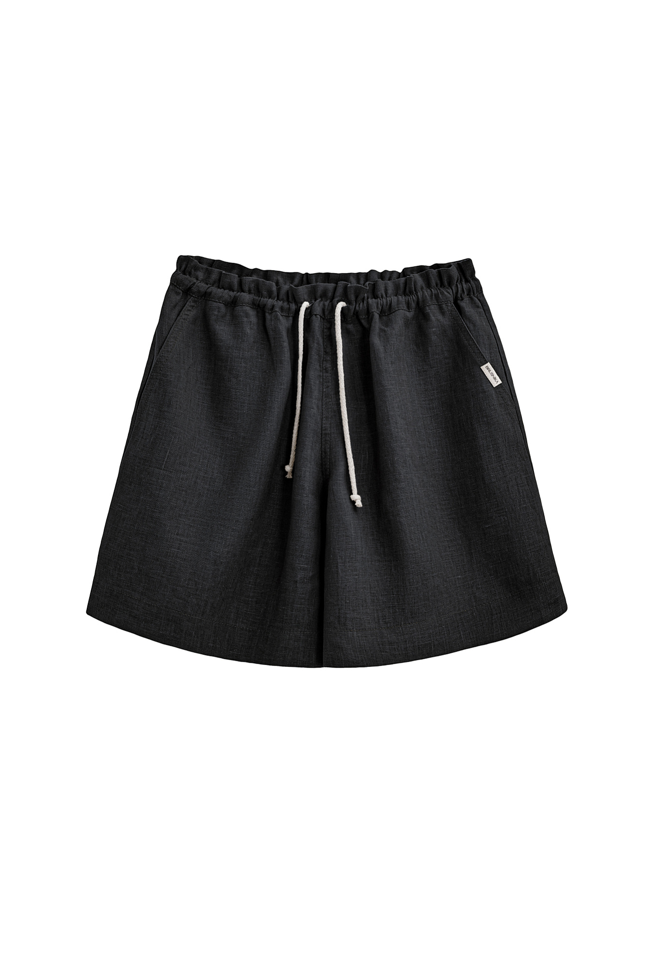Короткие шорты из 100% льна. Модель свободного кроя, с поясом на кулиске и боковыми карманами.