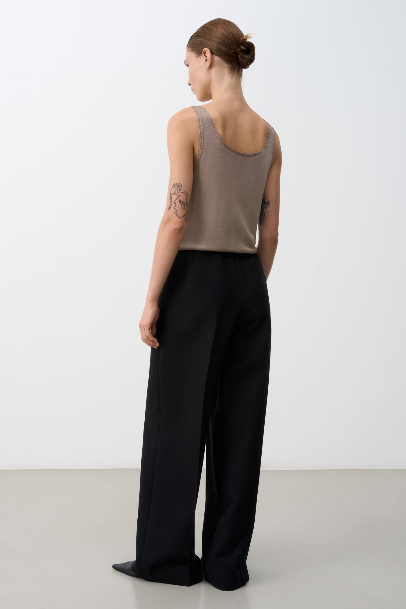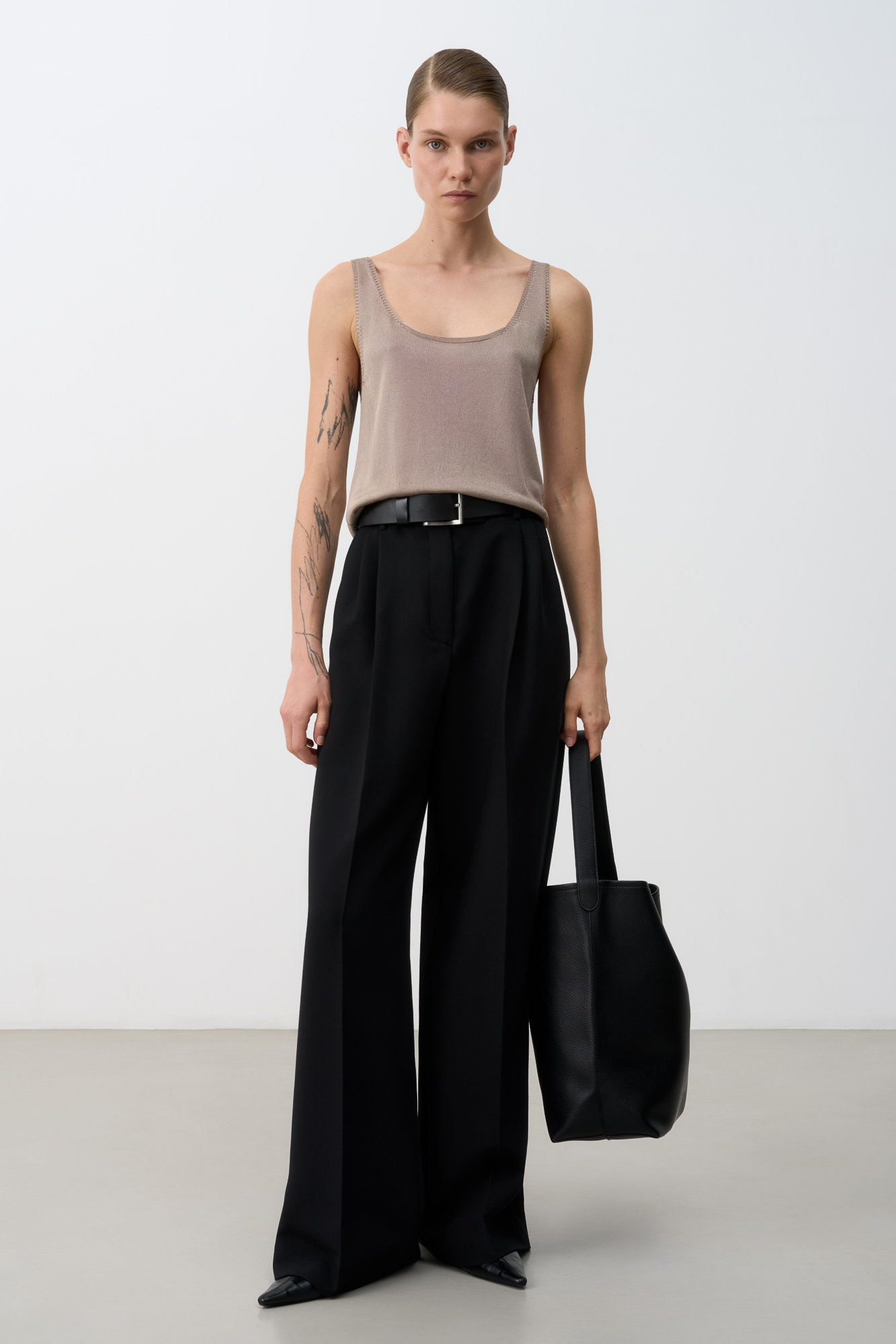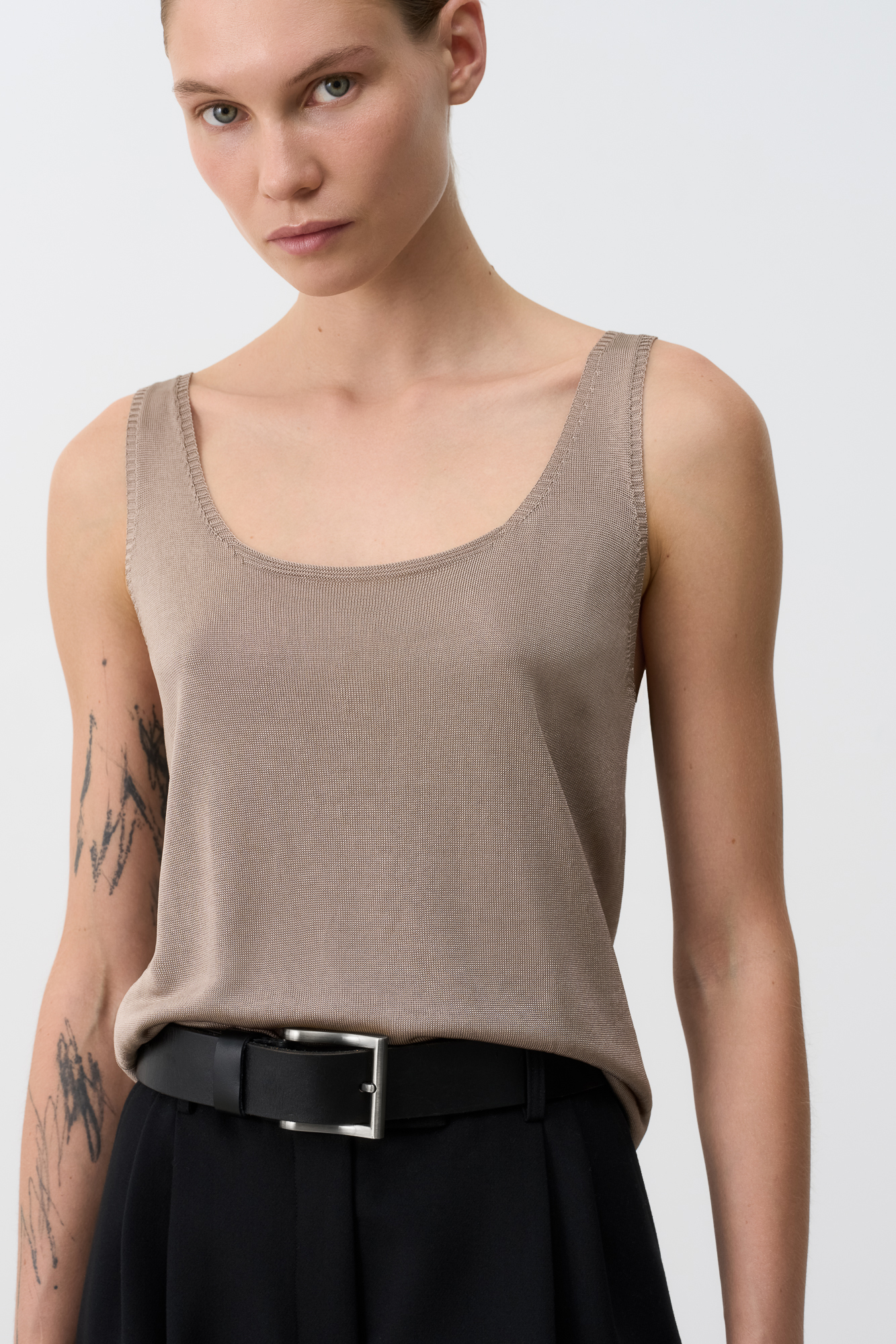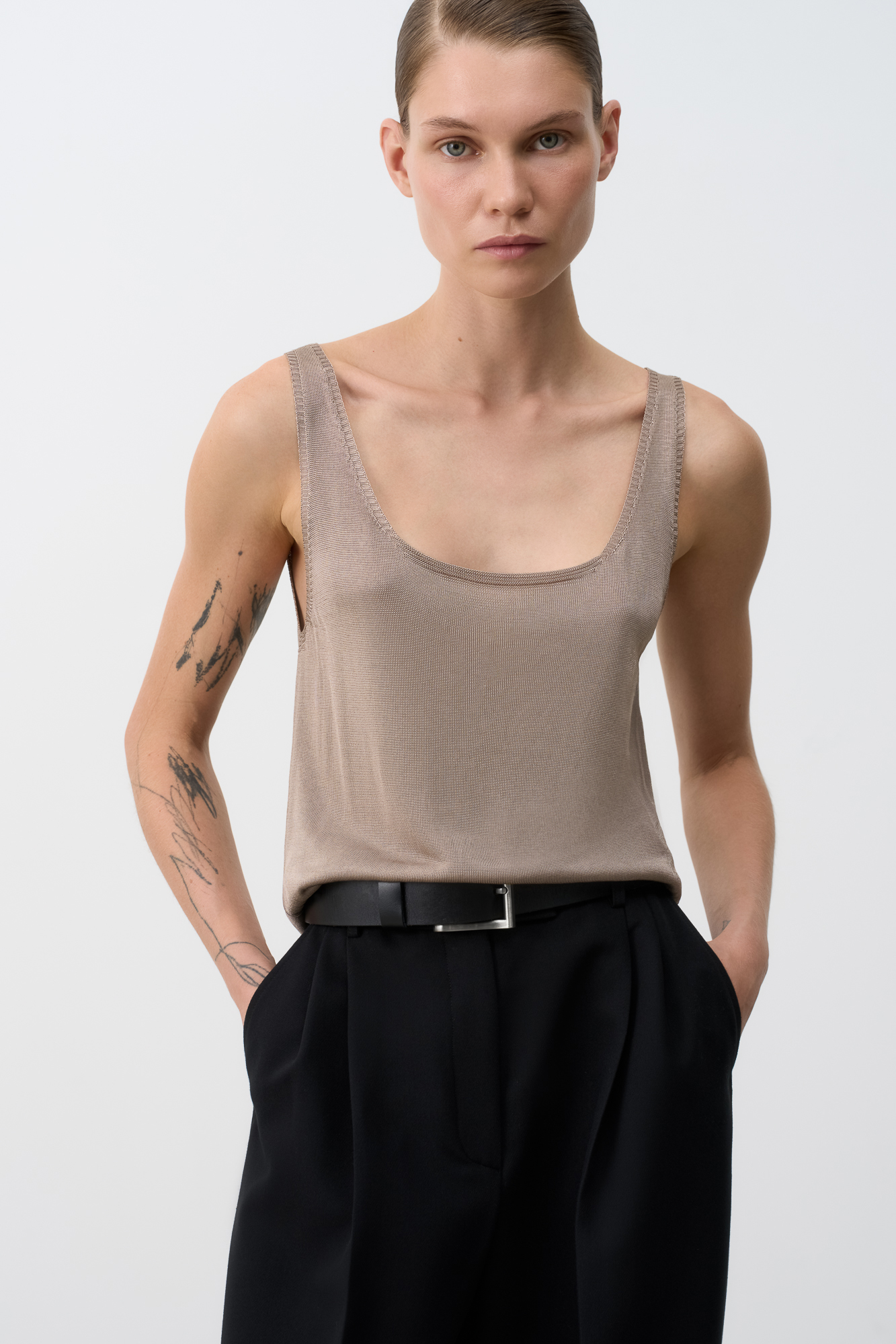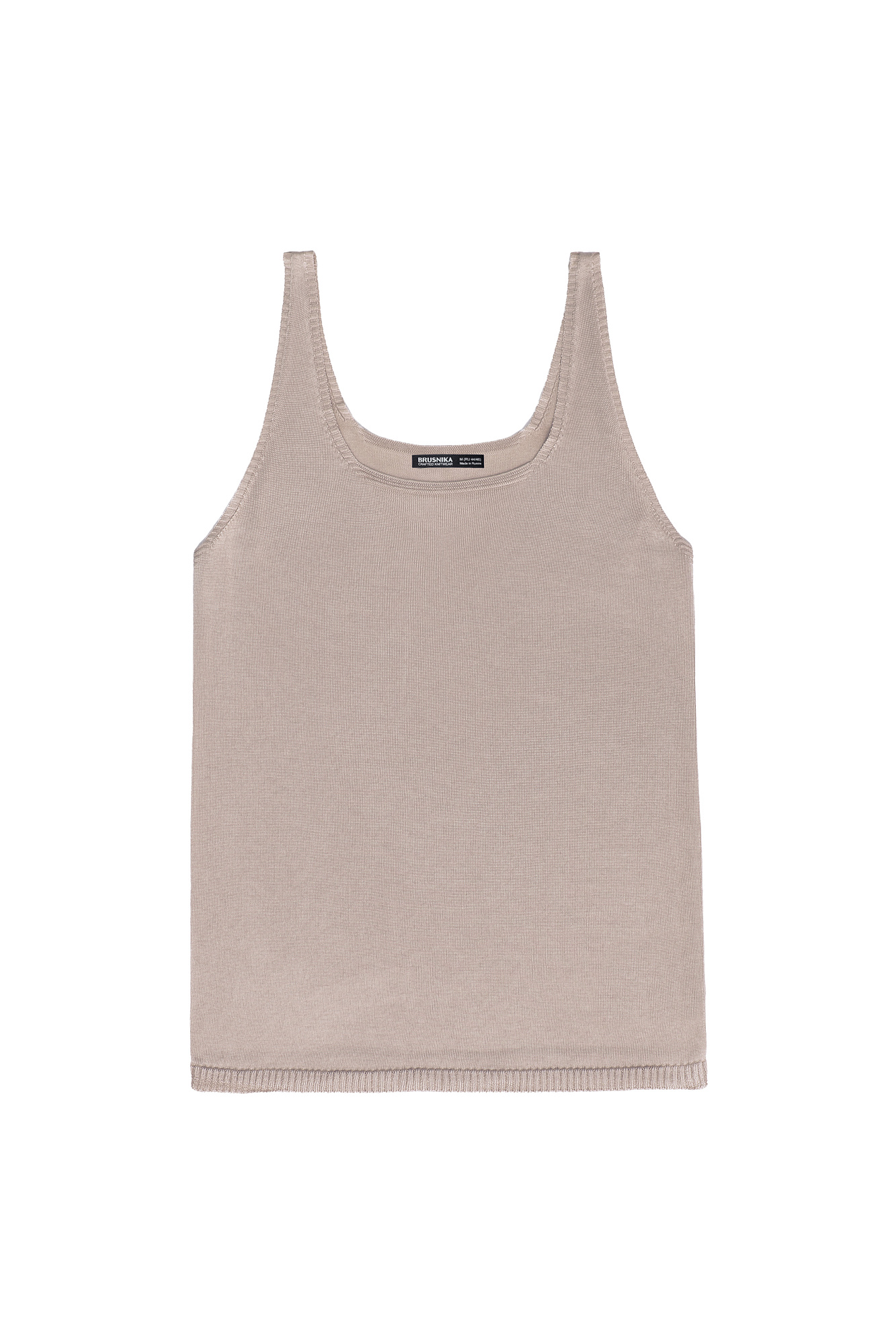 Цельновязаная майка из 100% вискозы на тонких бретелях.