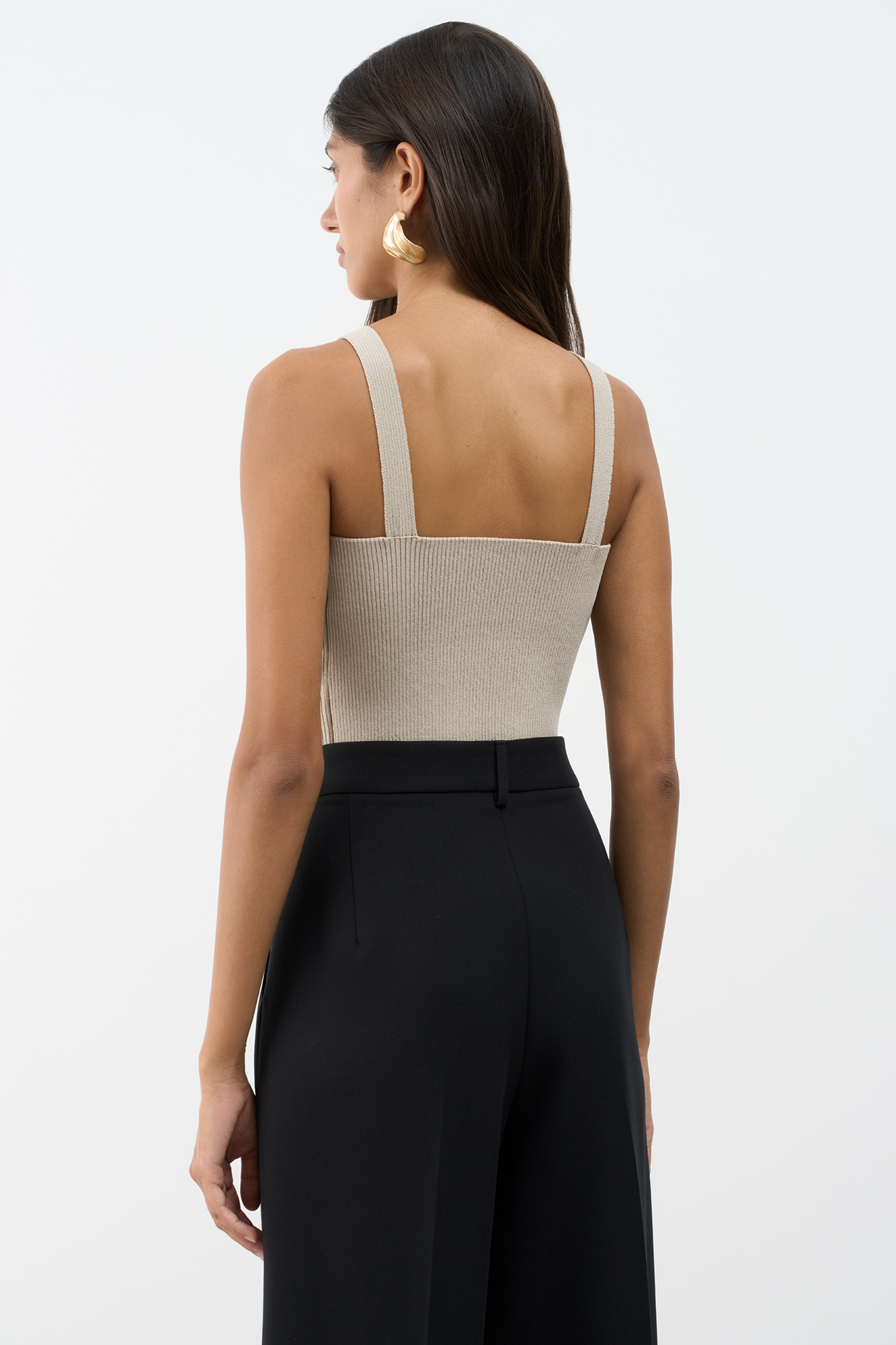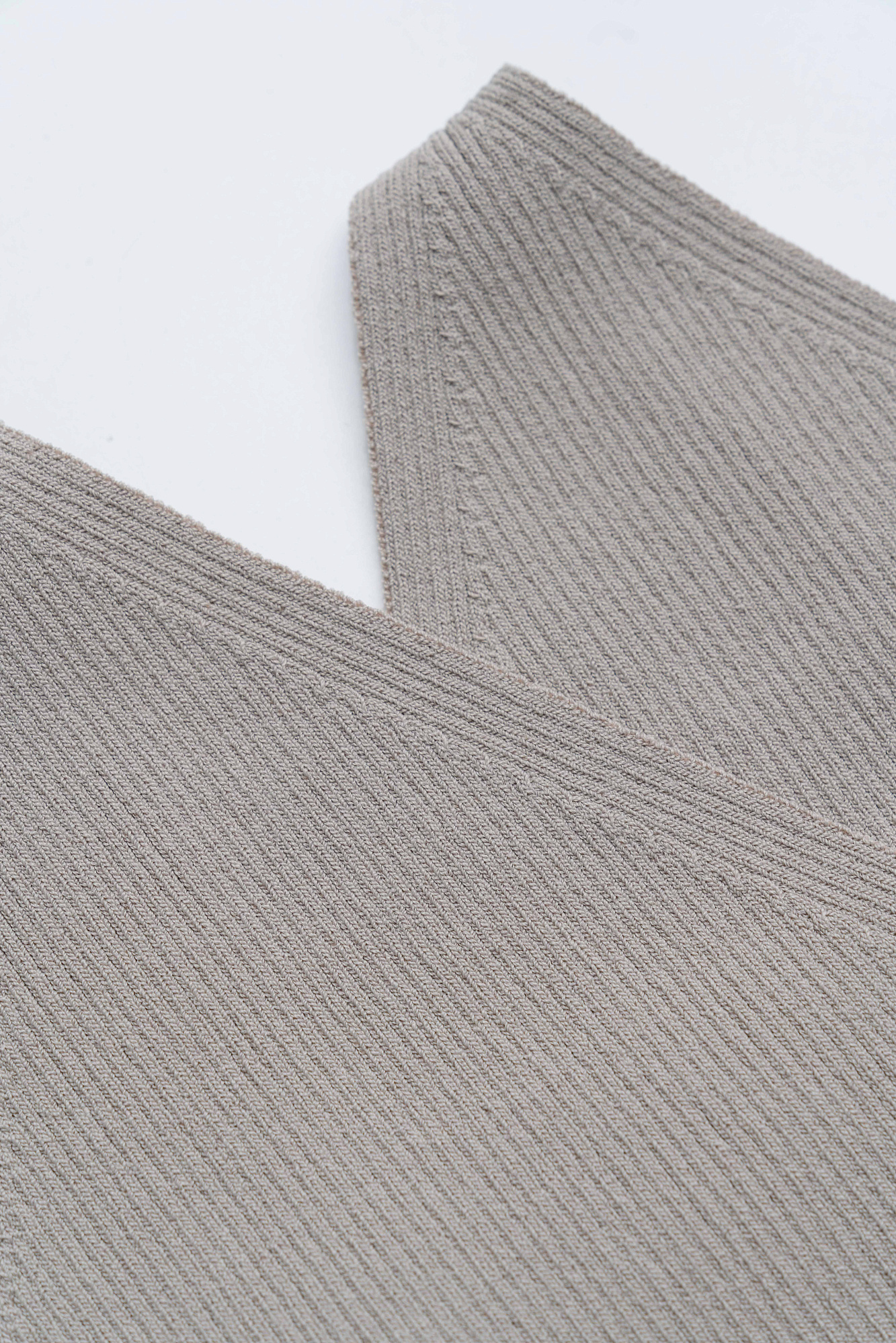 Трикотажный топ из вискозы. Модель приталенного силуэта с имитацией запаха. Изделие выполнено в рубчик.