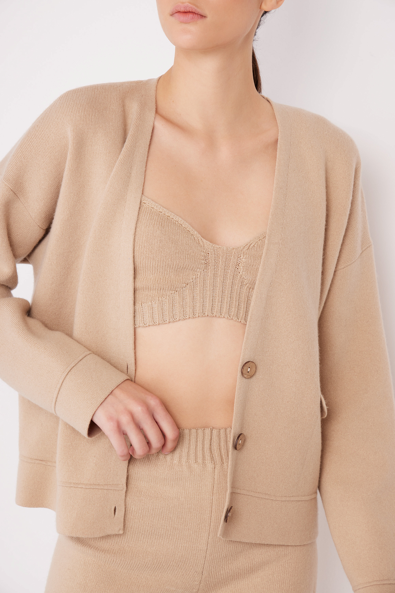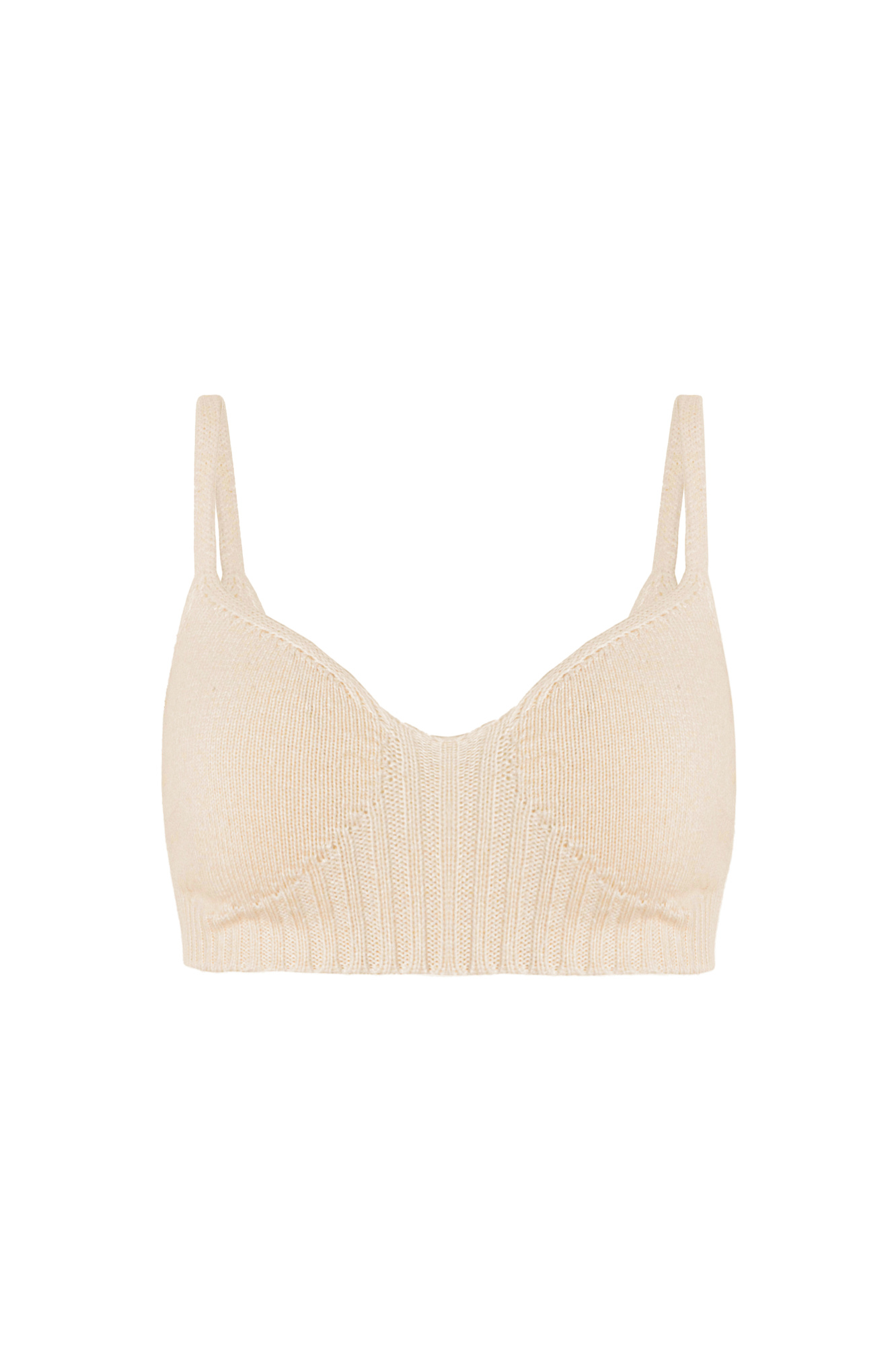 Трикотажный топ из шерсти, с добавлением вискозы и кашемира. Модель на тонких бретелях, с вырезанным лифом.