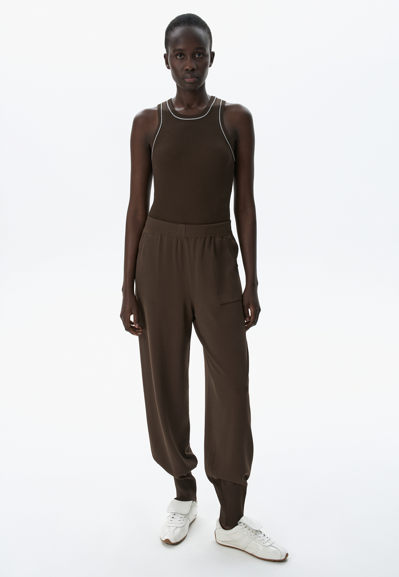 Трикотажный топ с контрастной строчкой