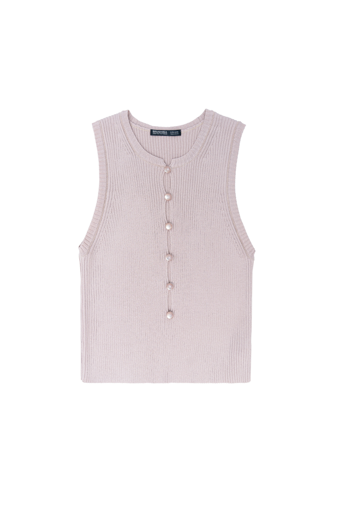 Трикотажный топ без рукавов. Модель с глубоким вырезом на пуговицах.