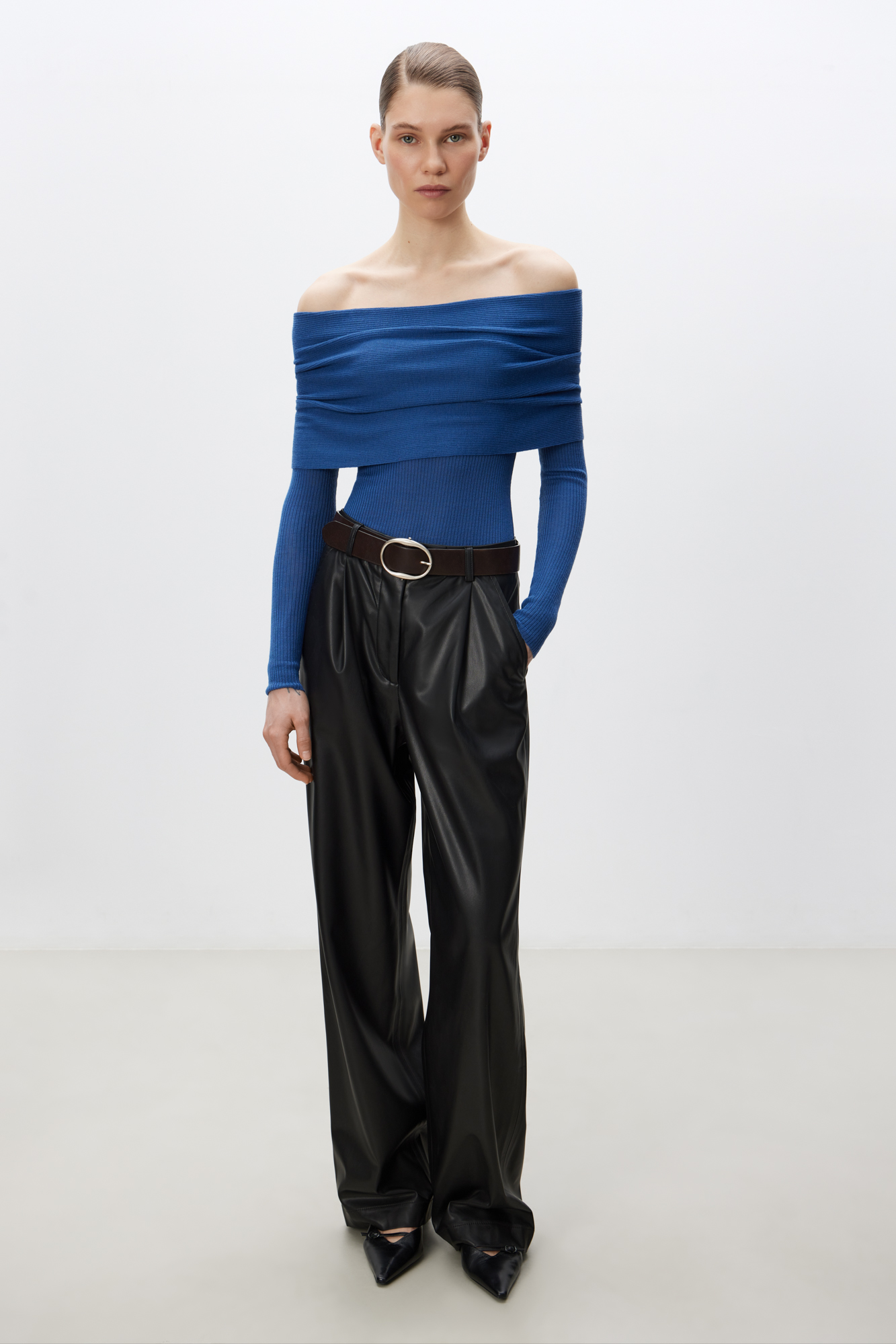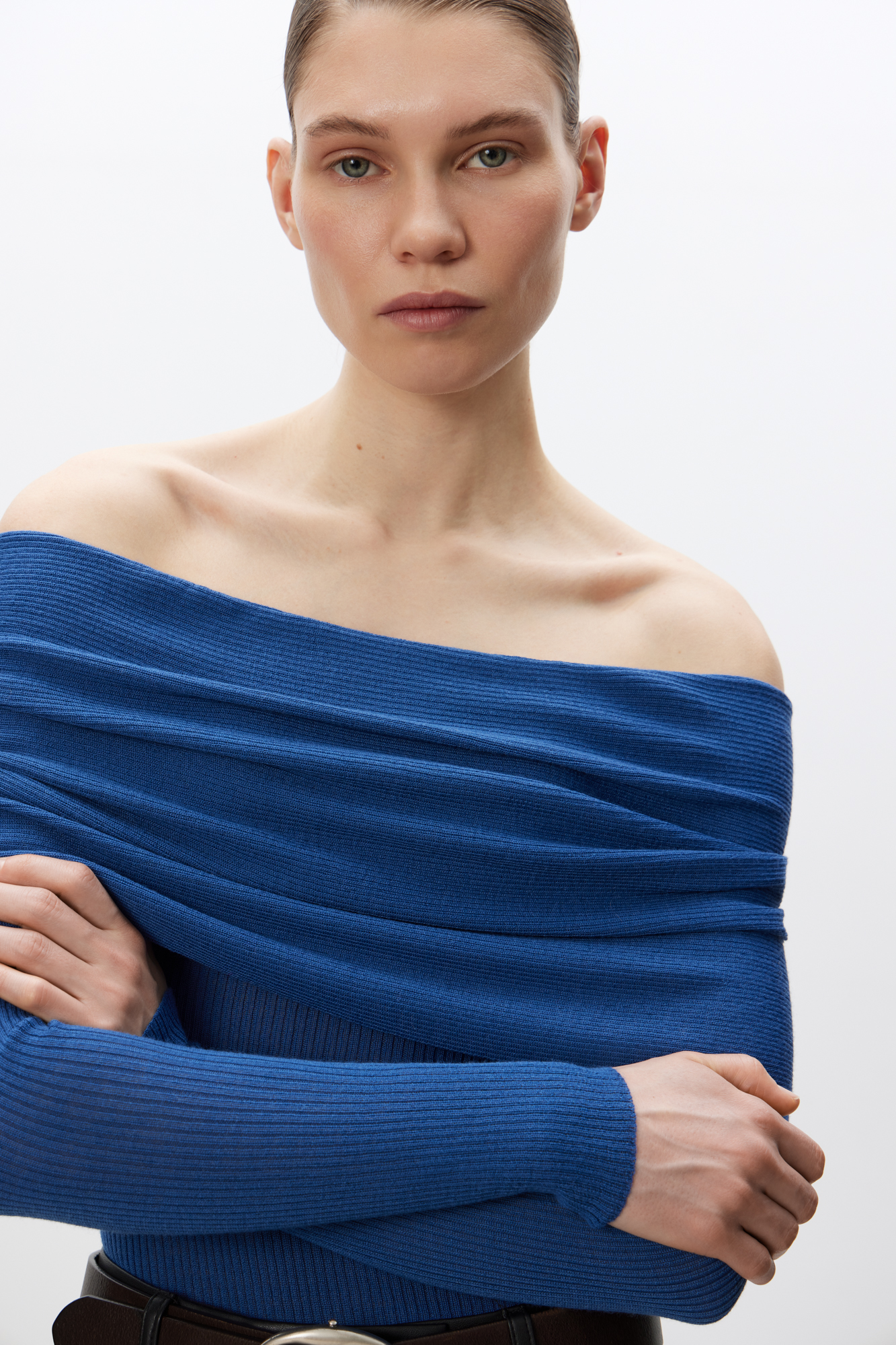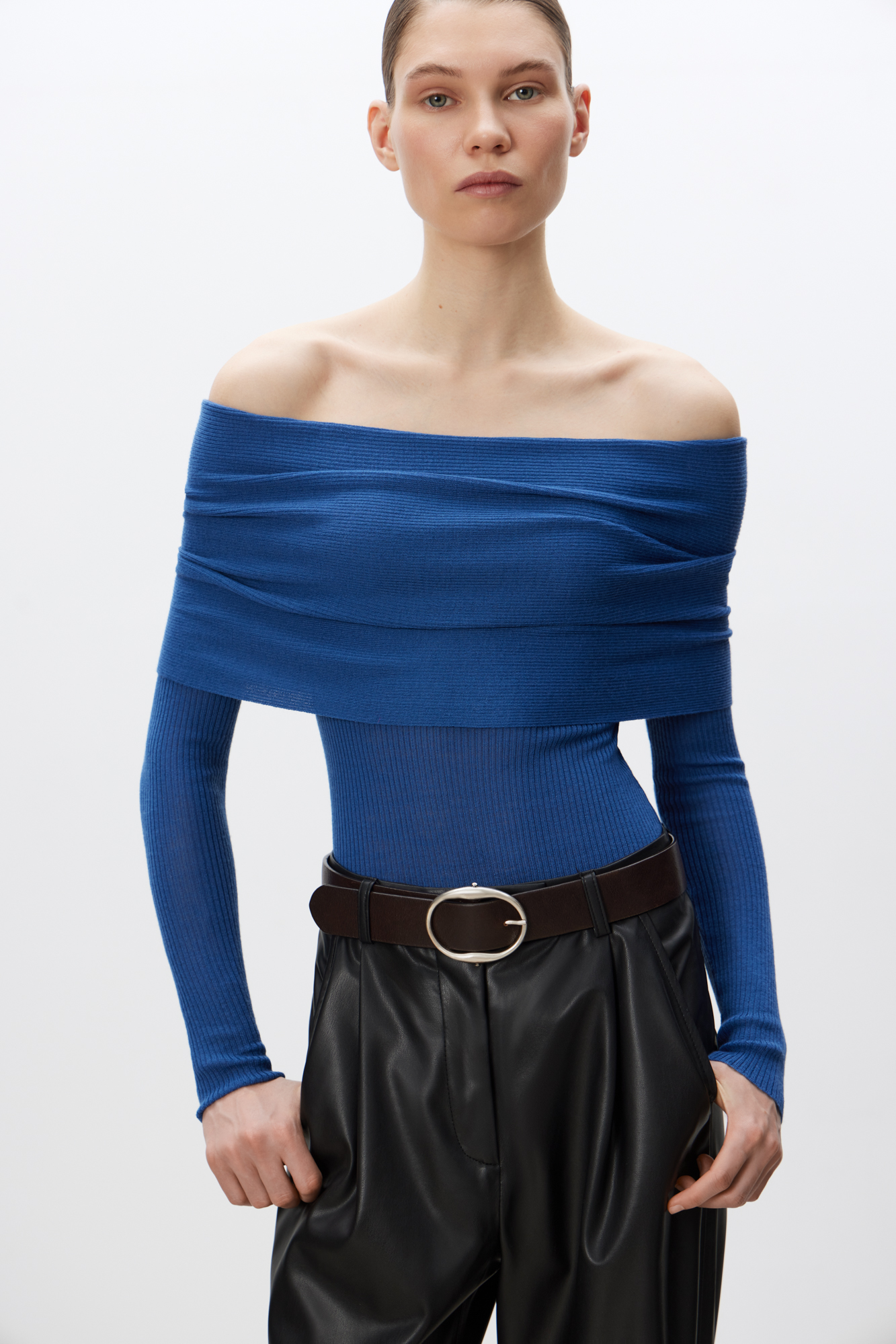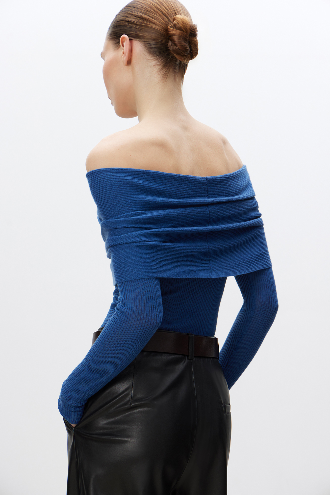 Трикотажный шерстяной топ с длинным рукавом и открытой линией плеч.