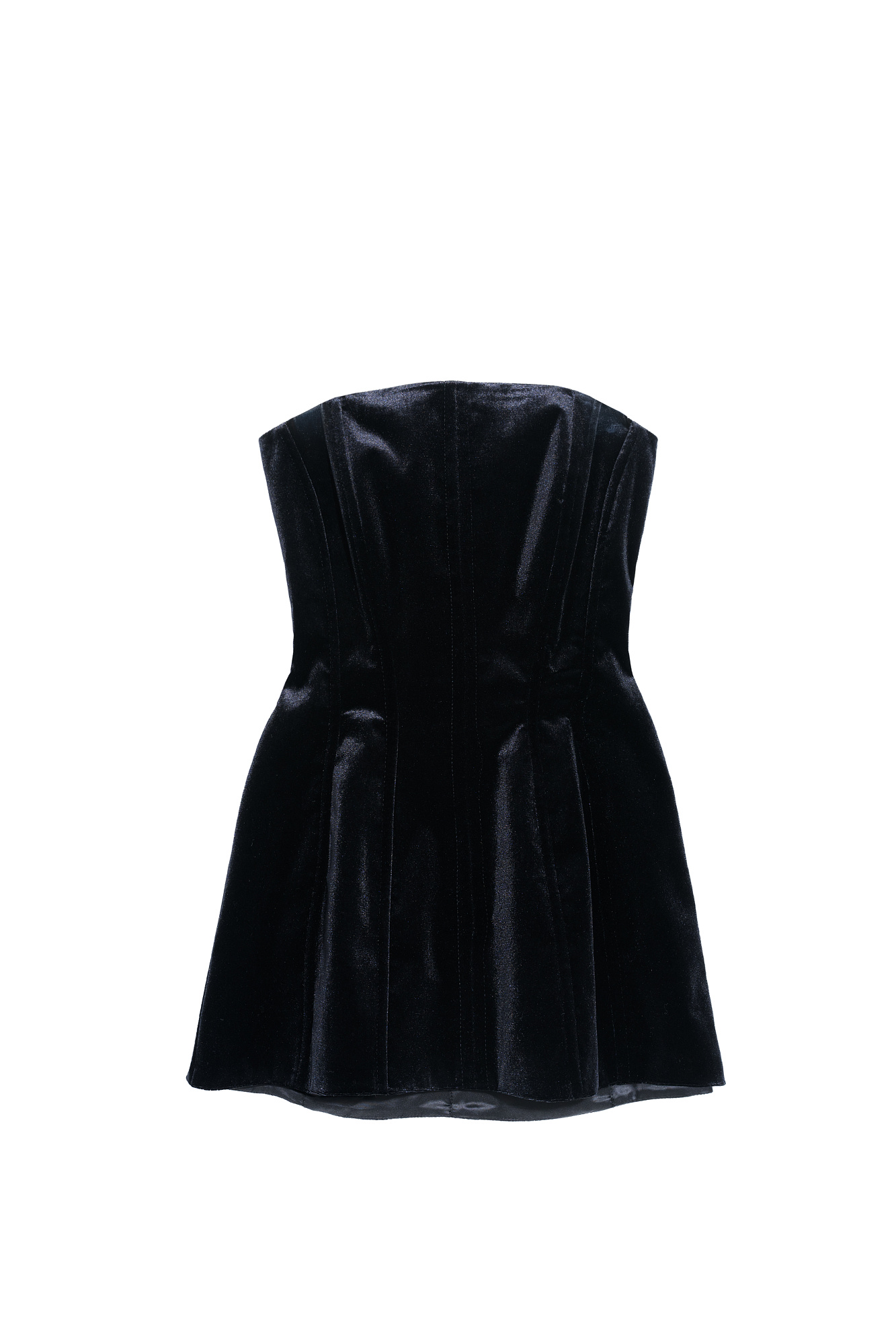 Удлиненный бархатный корсет. Модель приталенного силуэта, с потайной застежкой на молнию сзади. Изделие на подкладке.