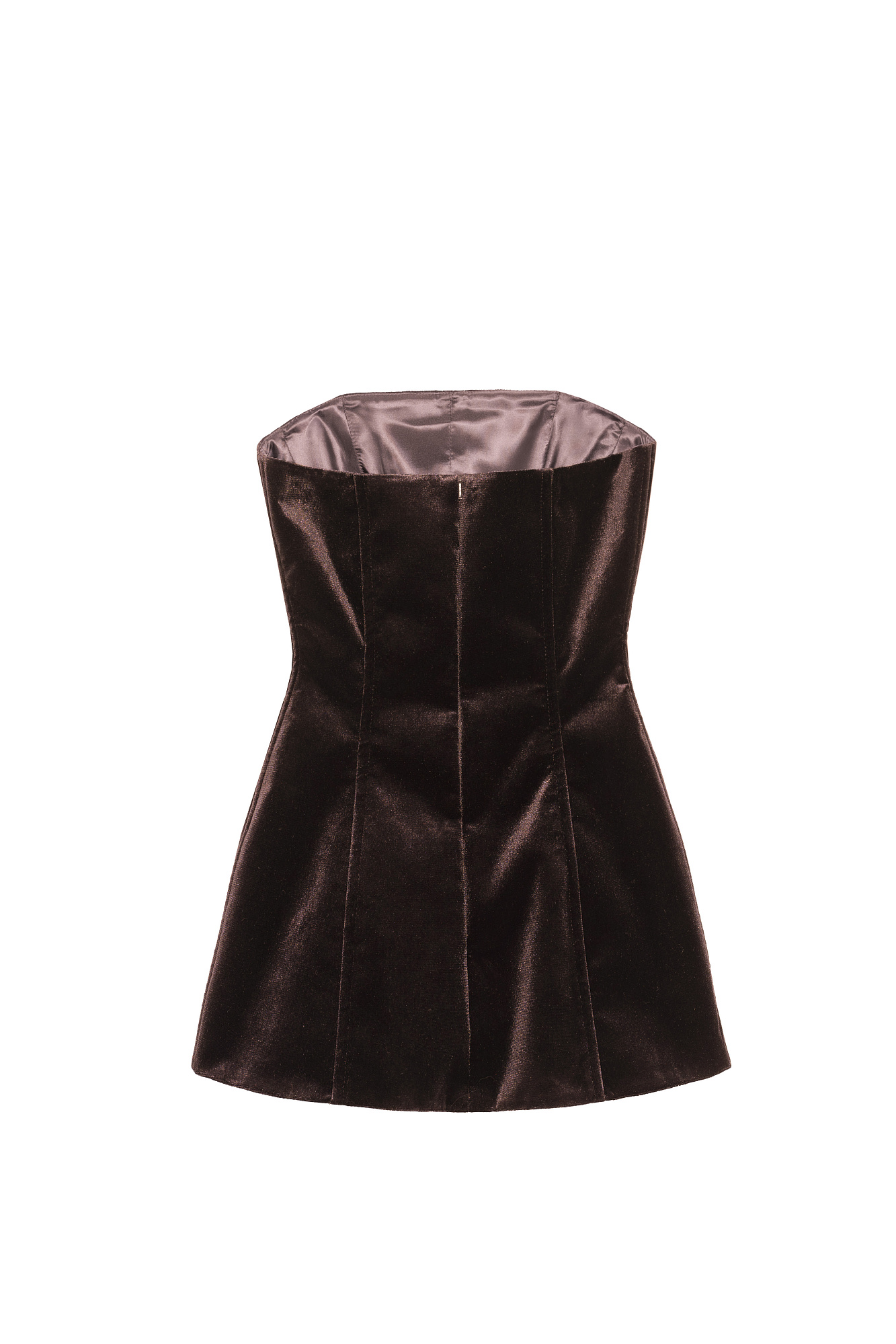 Удлиненный бархатный корсет. Модель приталенного силуэта, с потайной застежкой на молнию сзади. Изделие на подкладке.