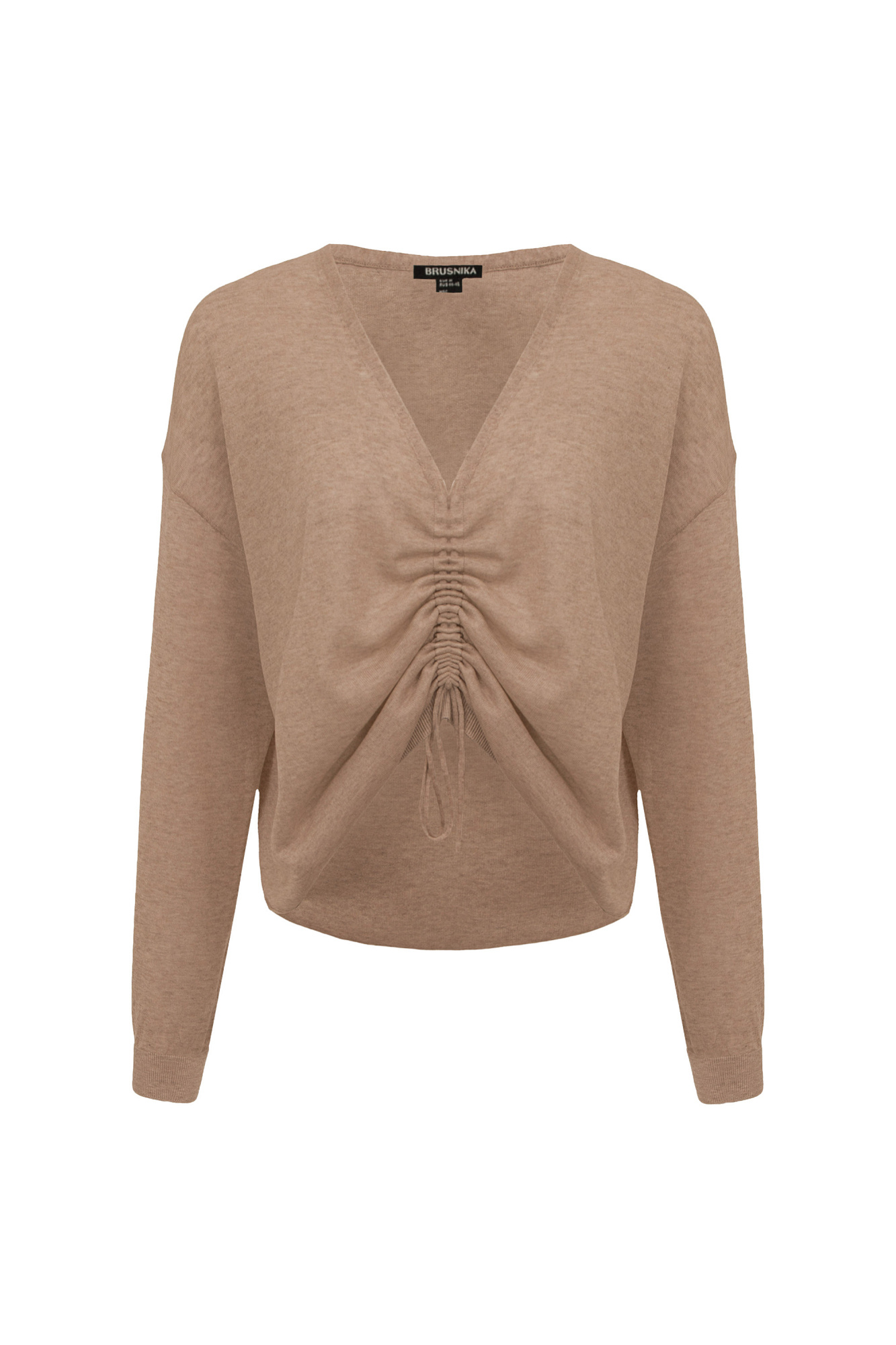 Полупрозрачный топ из тонкой вискозы. Модель свободного силуэта, с длинными рукавами и V-вырезом на кулиске.