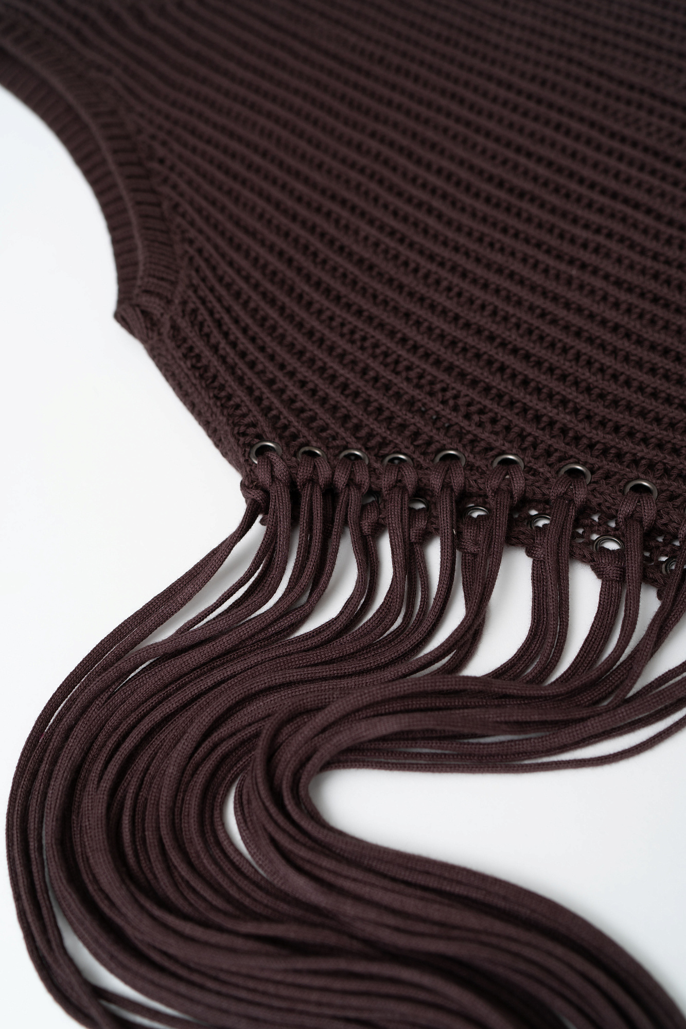 Трикотажный топ с бахромой и люверсами