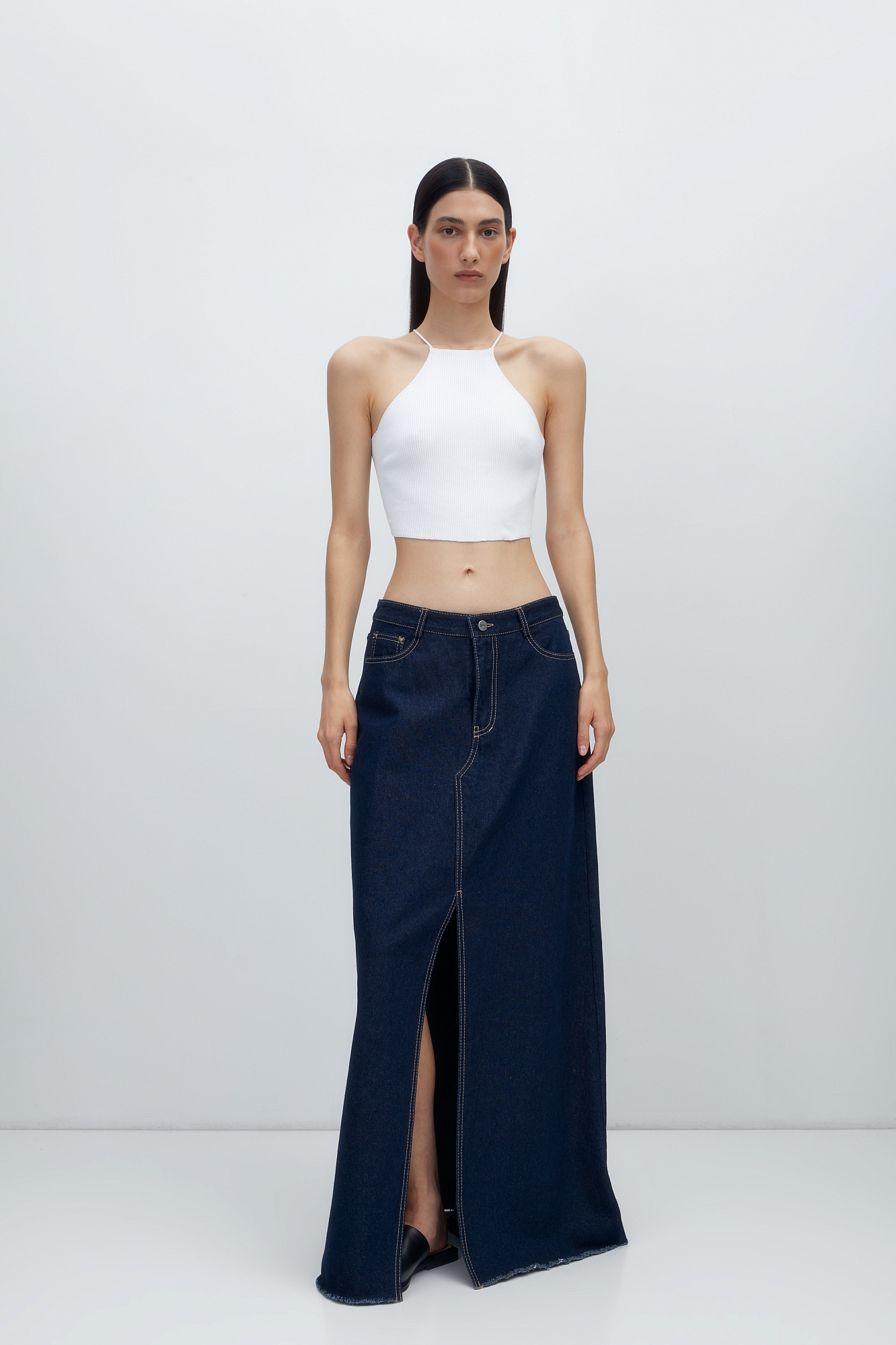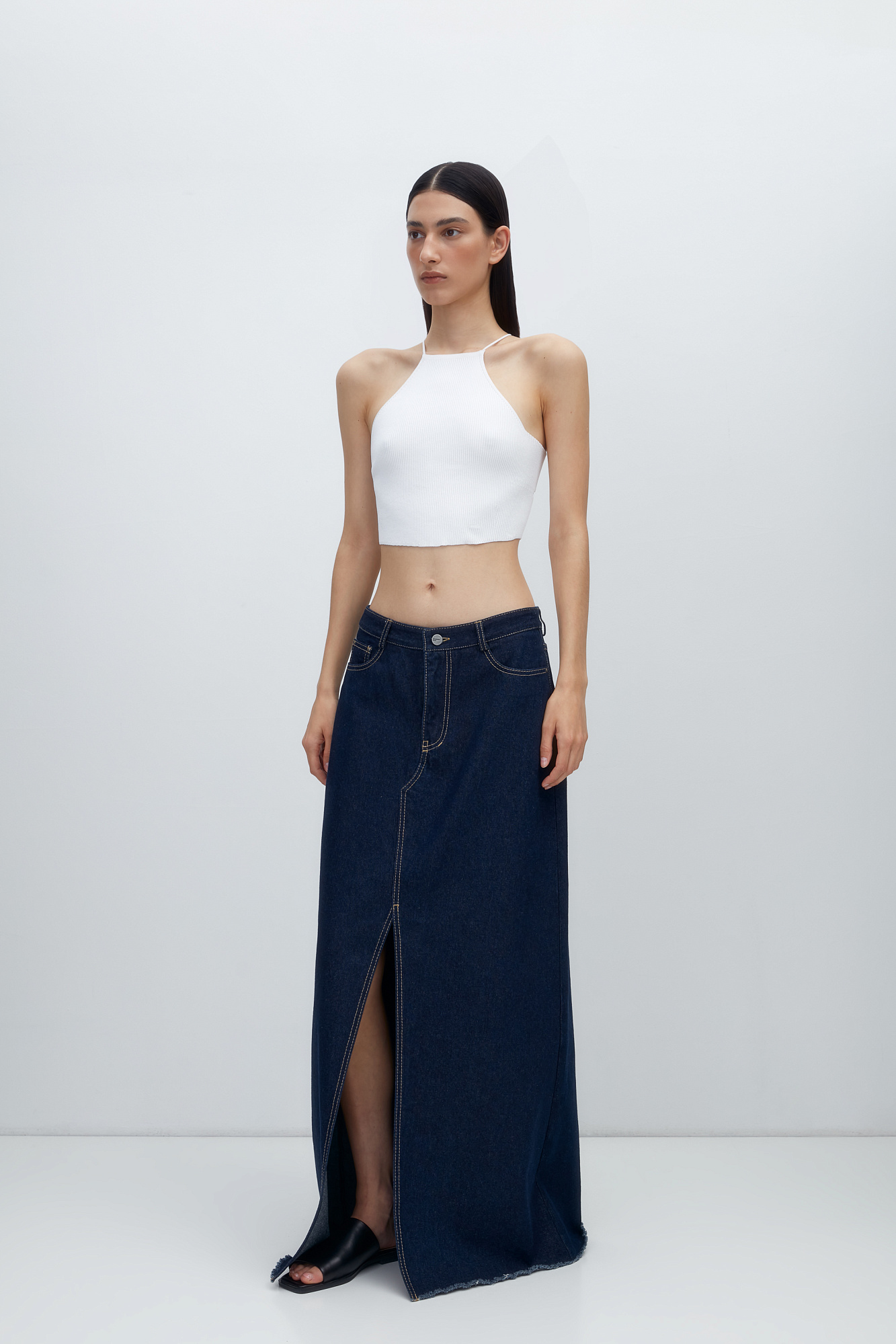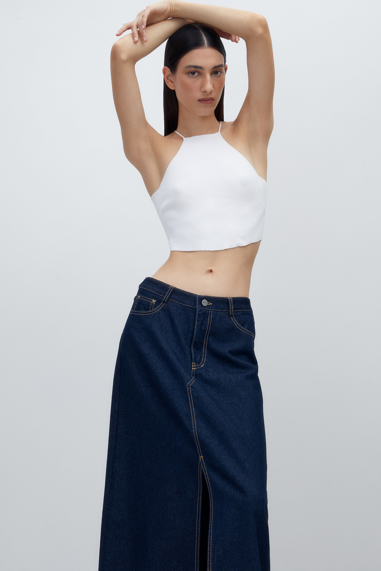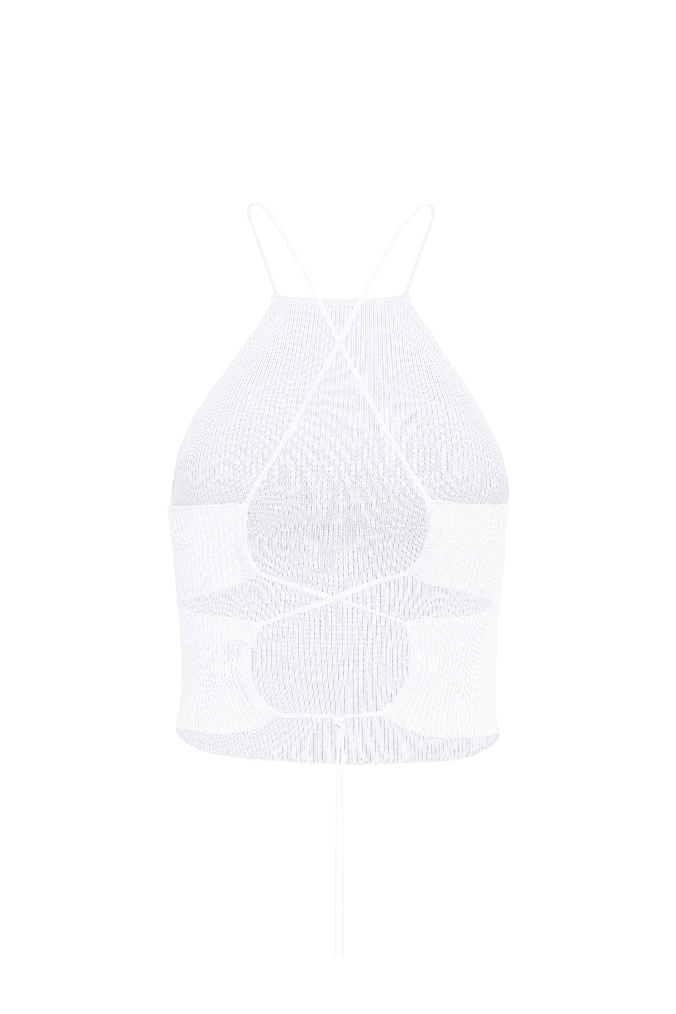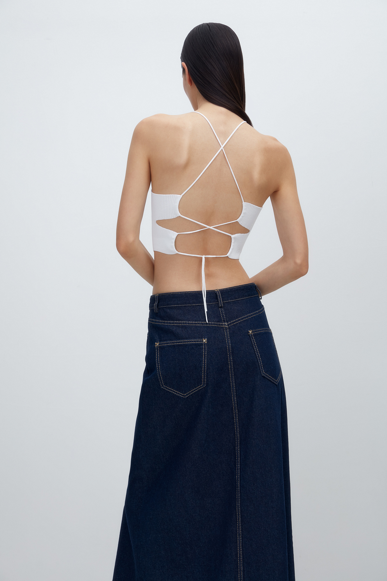 Трикотажный топ в рубчик из вискозы. Открытая спина на кулиске и тонких бретелях.