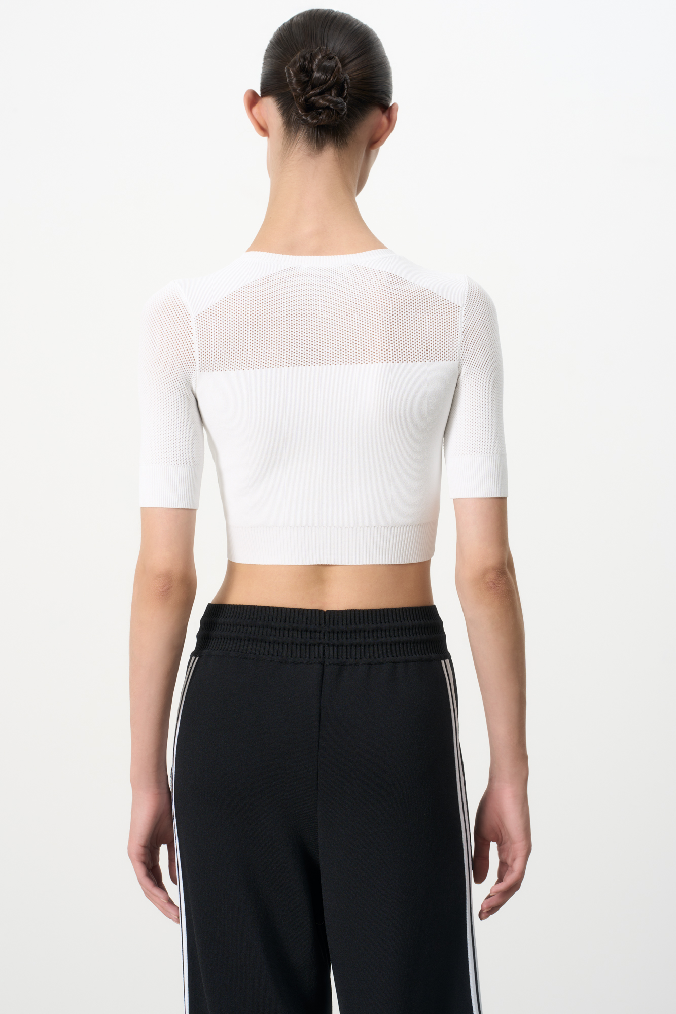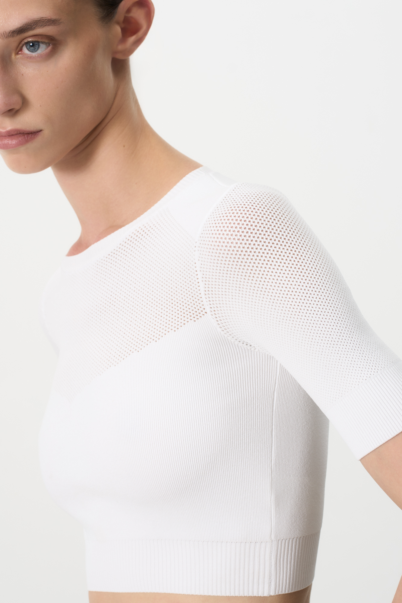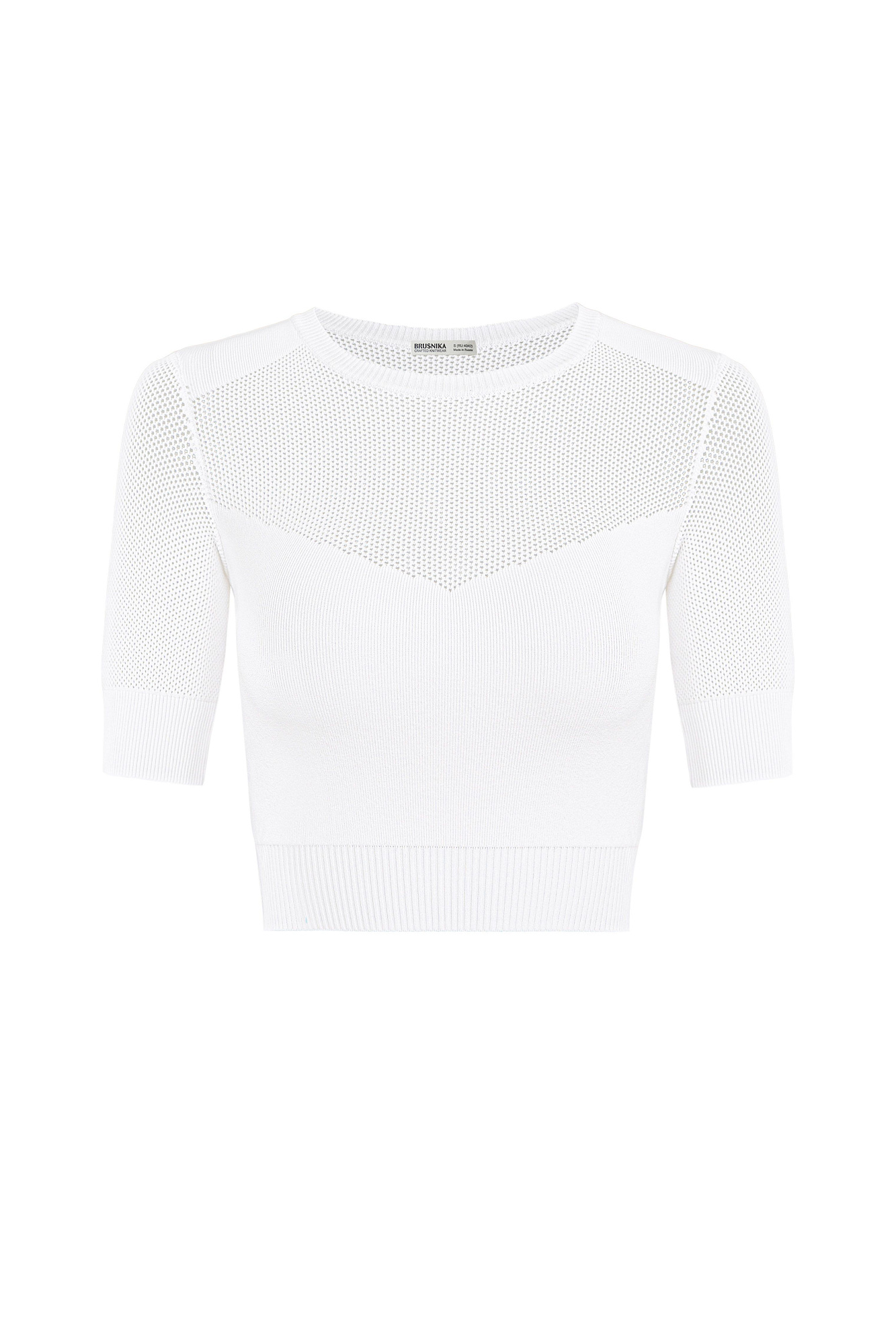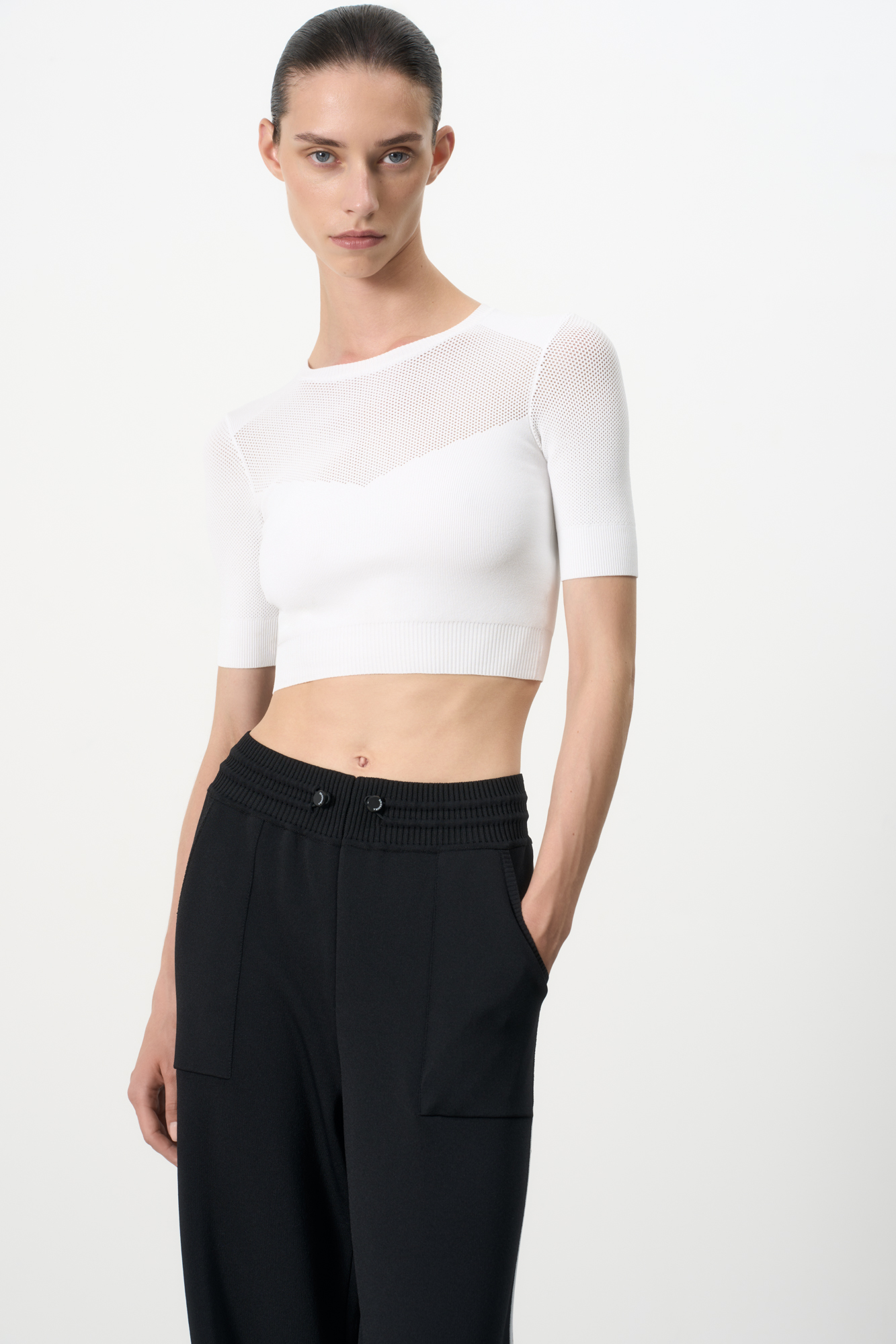 Трикотажный топ из вискозы с короткими рукавами и элементами из сетки.