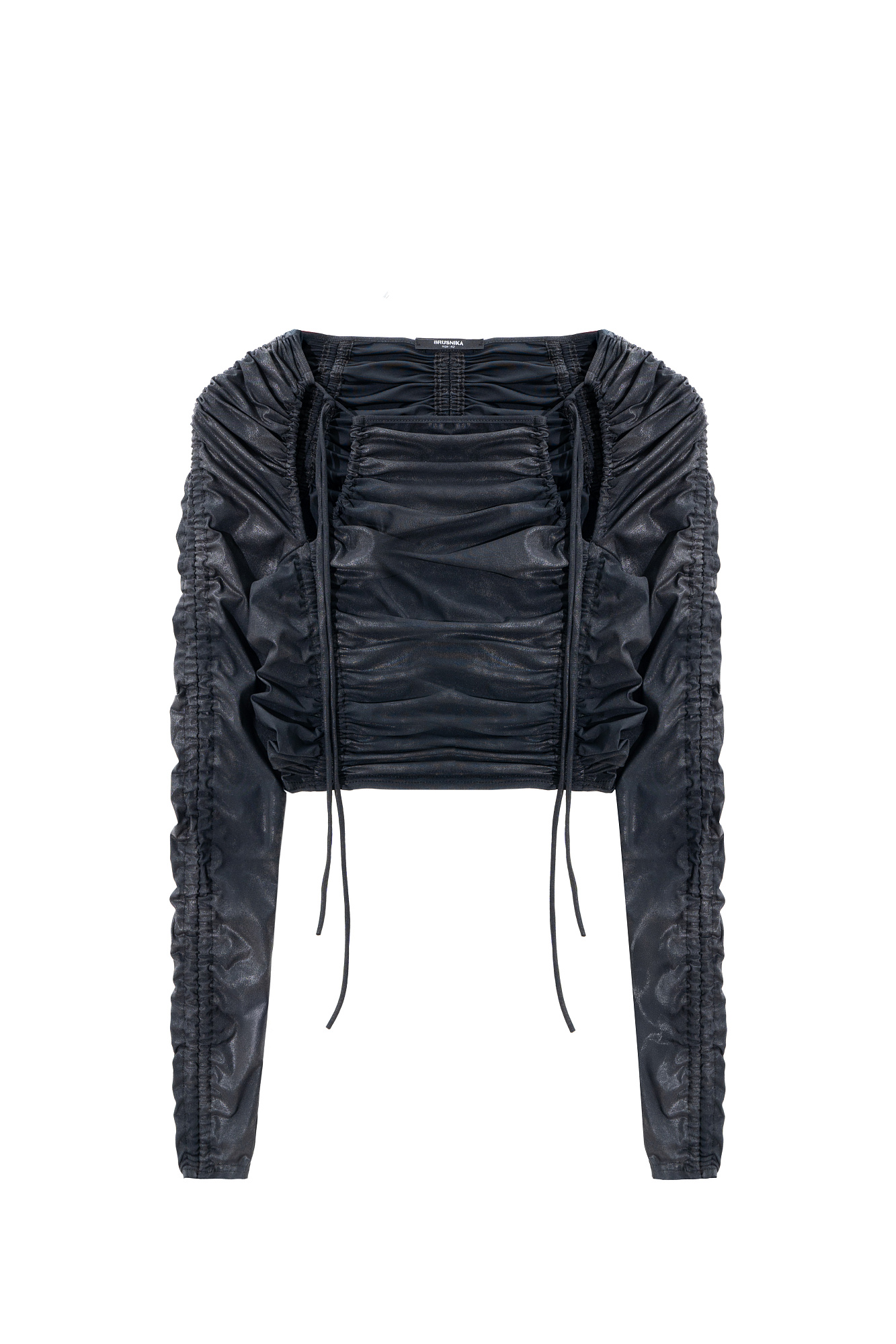 Укороченный топ на кулисках с драпировкой и длинными рукавами. Модель не сковывает движений и идеально подходит как для занятий спортом, так и для повседневной носки. Рекомендуем сочетать топ с легинсами из коллаборации BRUSNIKA х J.RO.