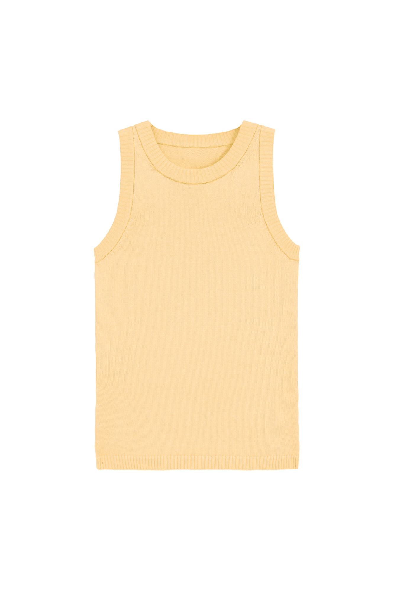 Трикотажный топ из 100% хлопка без рукавов. Модель приталенного силуэта с круглым вырезом горловины. Края изделия выполнены в рубчик.