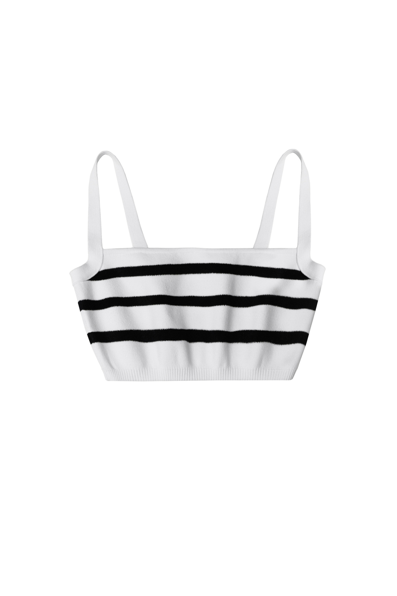 Трикотажный короткий топ из вискозы. Модель на бретелях, с прямым вырезом декольте. Низ изделия выполнен на эластичной резинке.