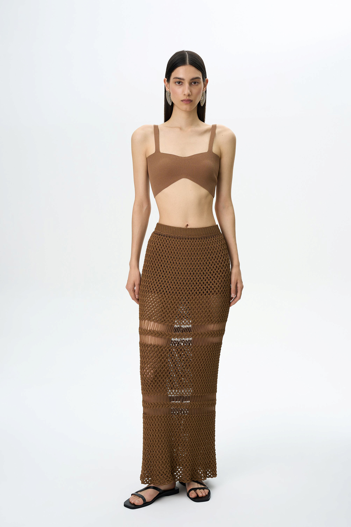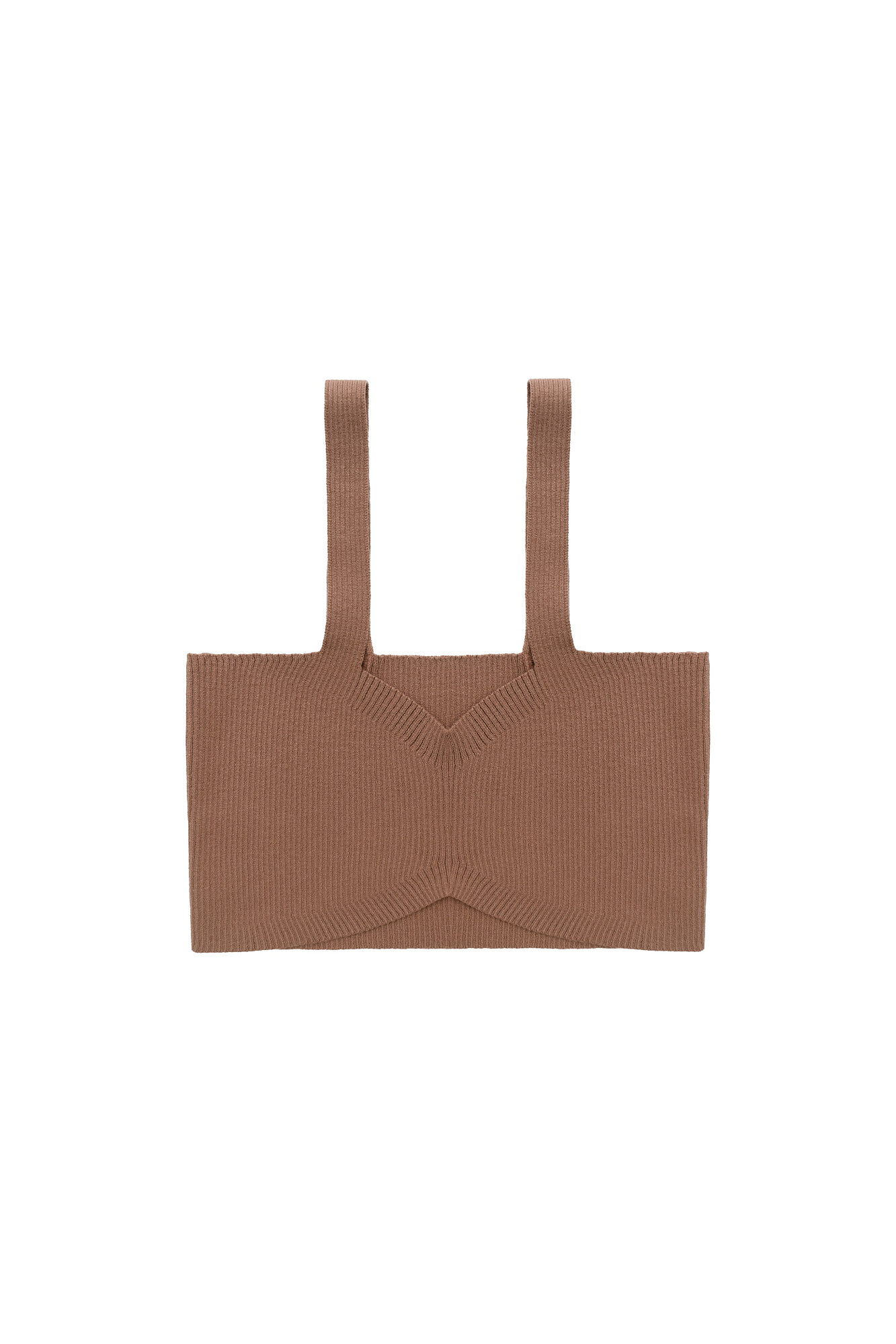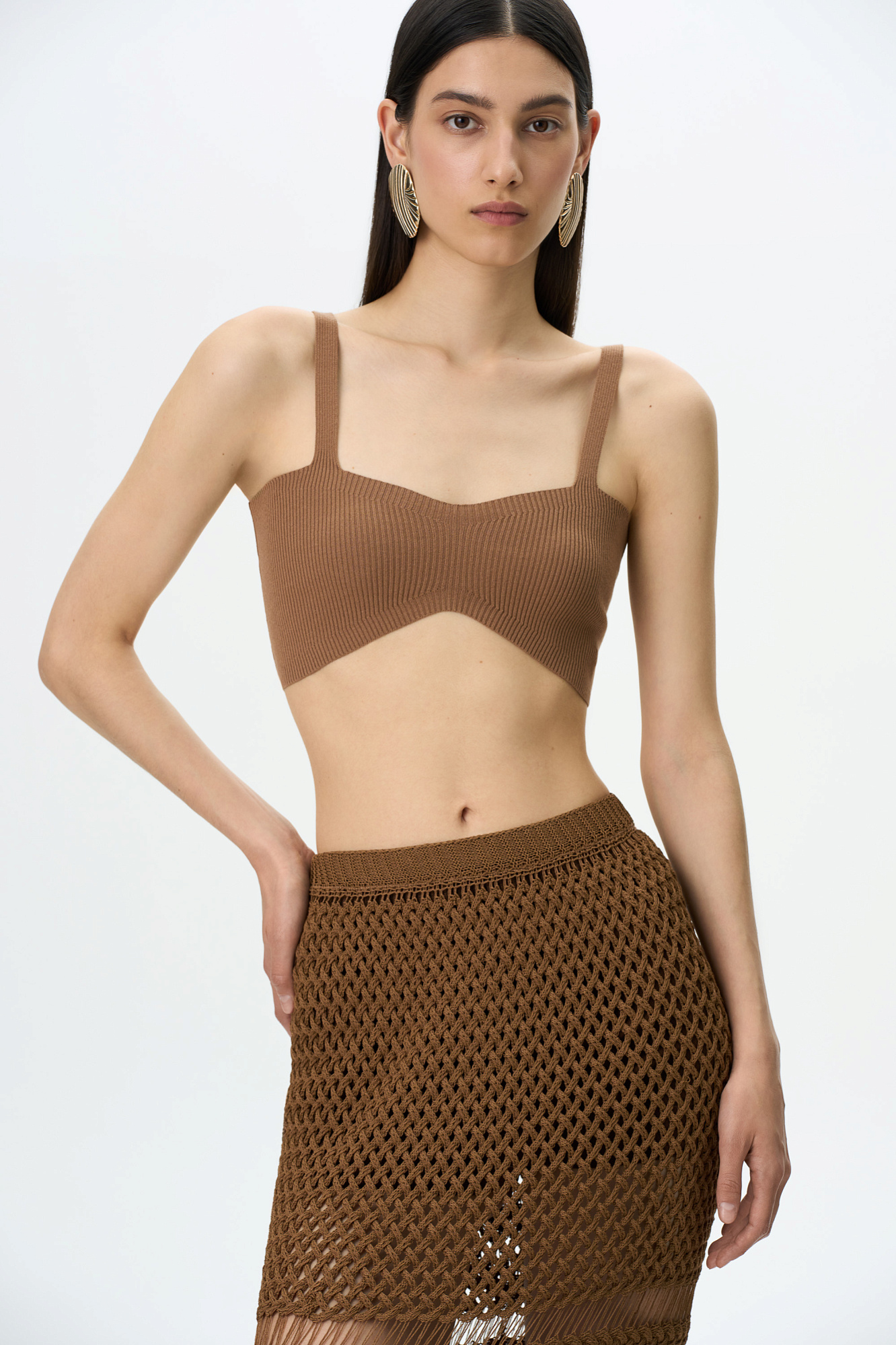 Трикотажный кроп-топ из вискозы. Модель на тонких бретелях. Изделие выполнено в рубчик.