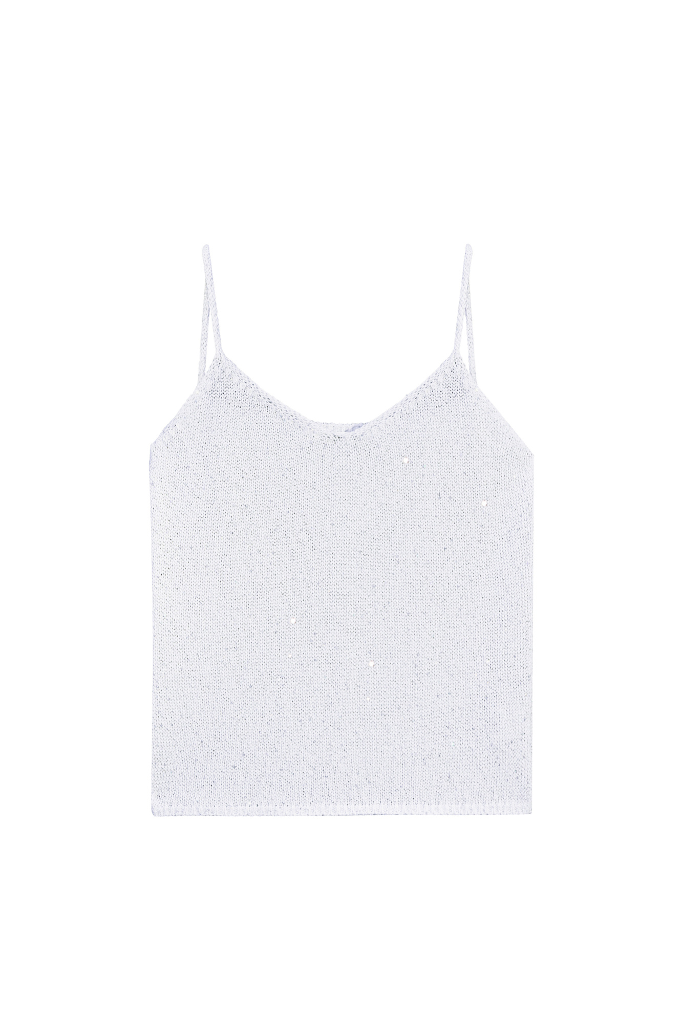 Трикотажный топ из поливискозы на тонких лямках с голографическими пайетками.