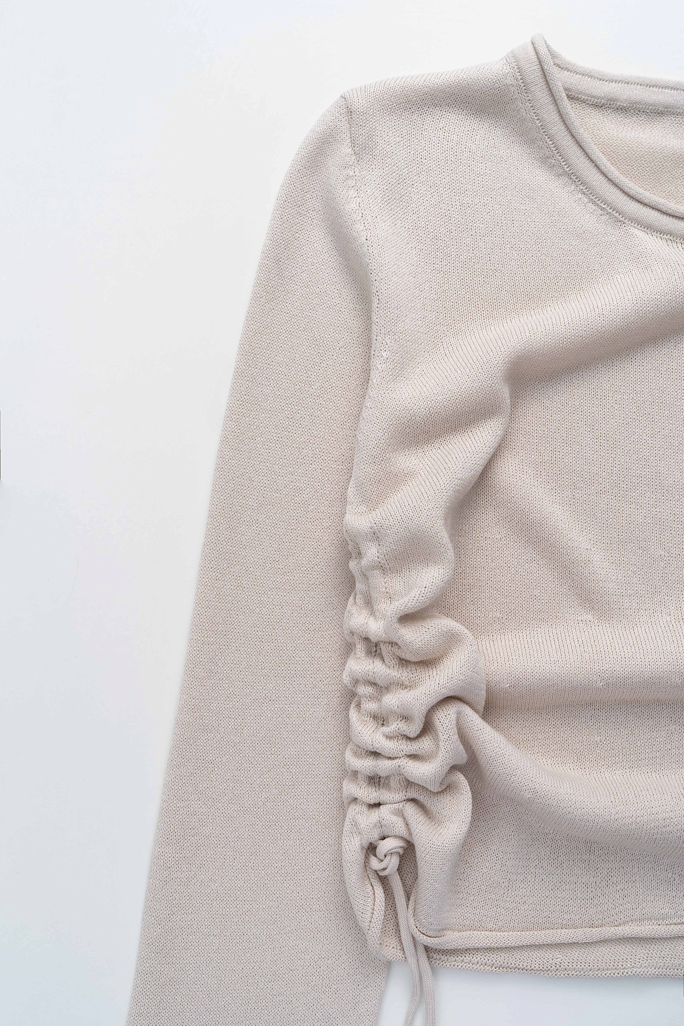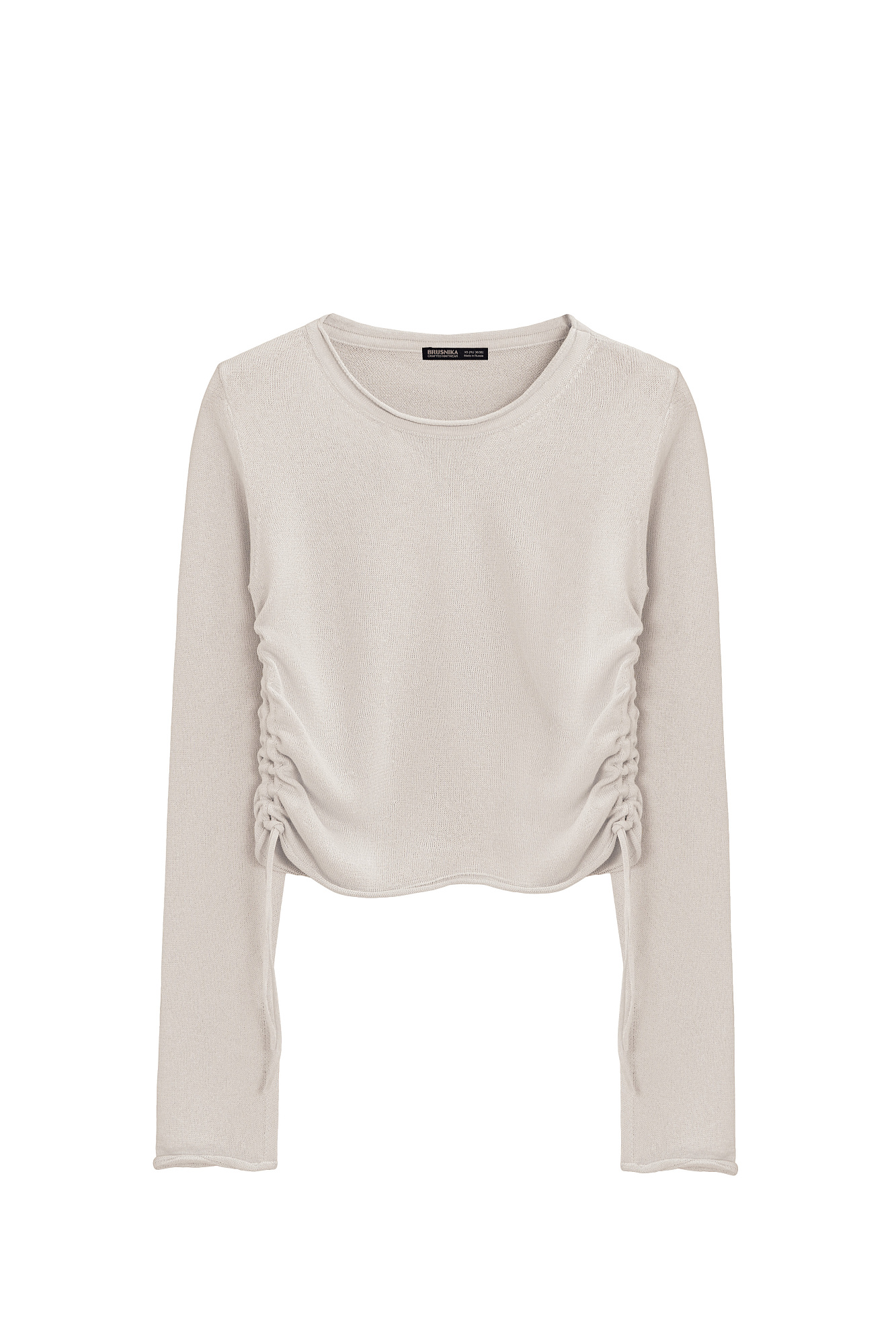 Трикотажный топ из вискозы. Модель прямого кроя, с длинным рукавом, небольшими разрезами на манжетах и круглым вырезом горловины. Кулиски по бокам изделия позволяют регулировать длину и создавать драпировку.
