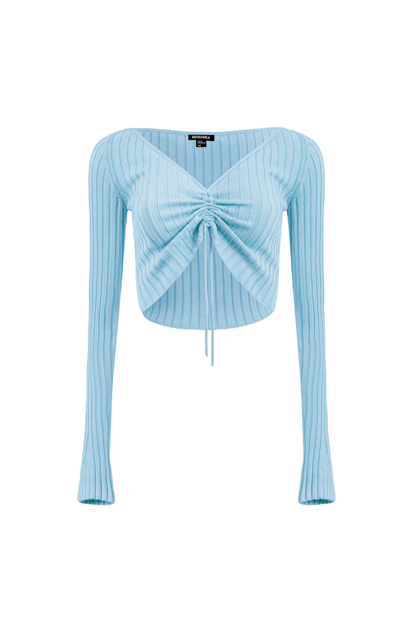 Трикотажный топ из вискозы с длинным рукавом. Модель с V-вырезом и регулируемой кулиской спереди.